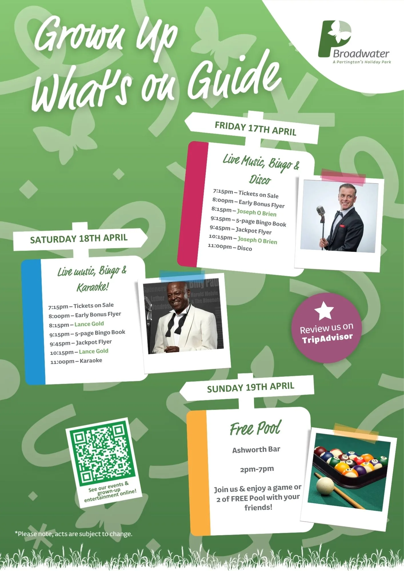 As the season starts, we have a fun filled entertainment schedule, with activities for all of the family.