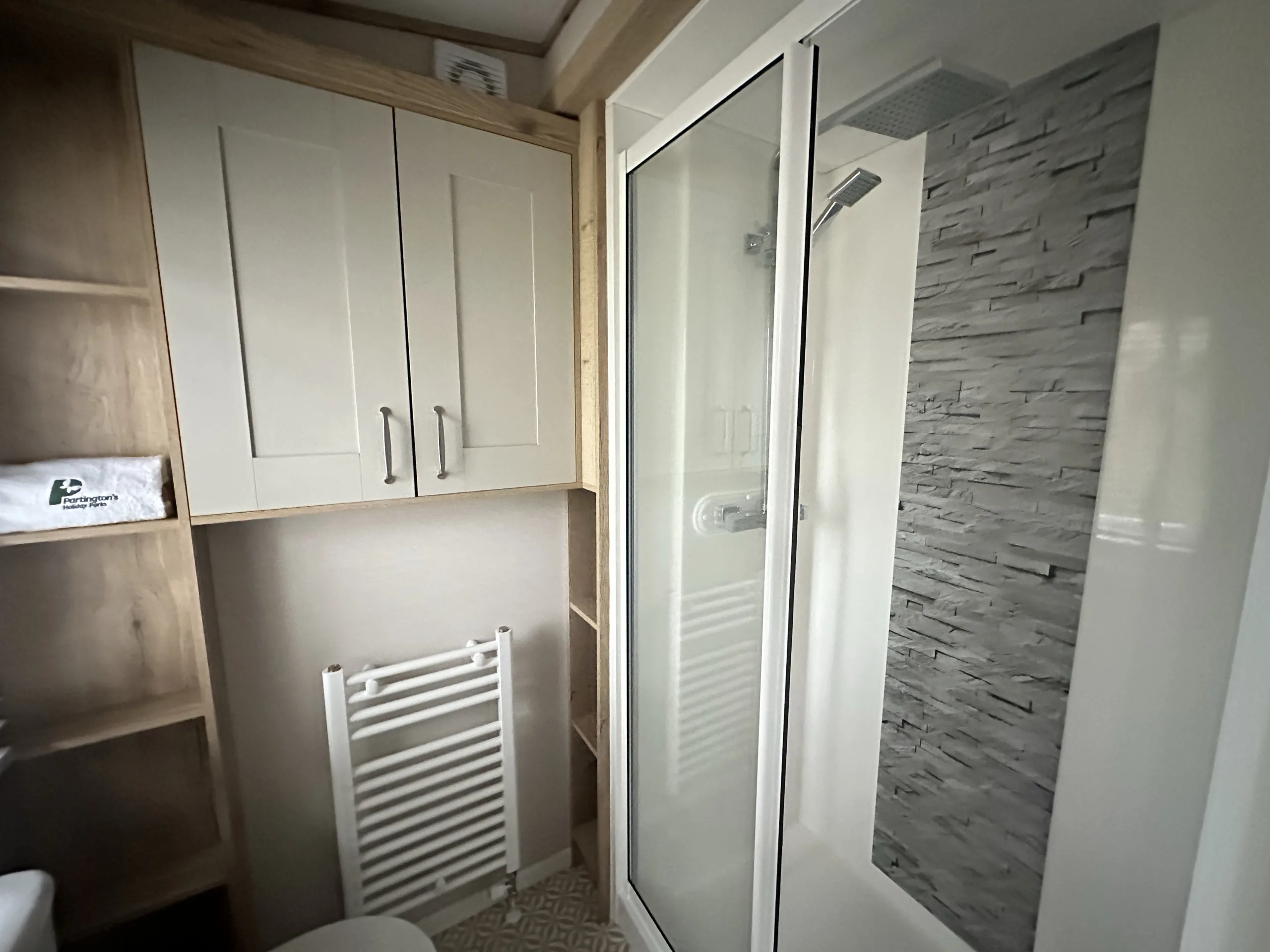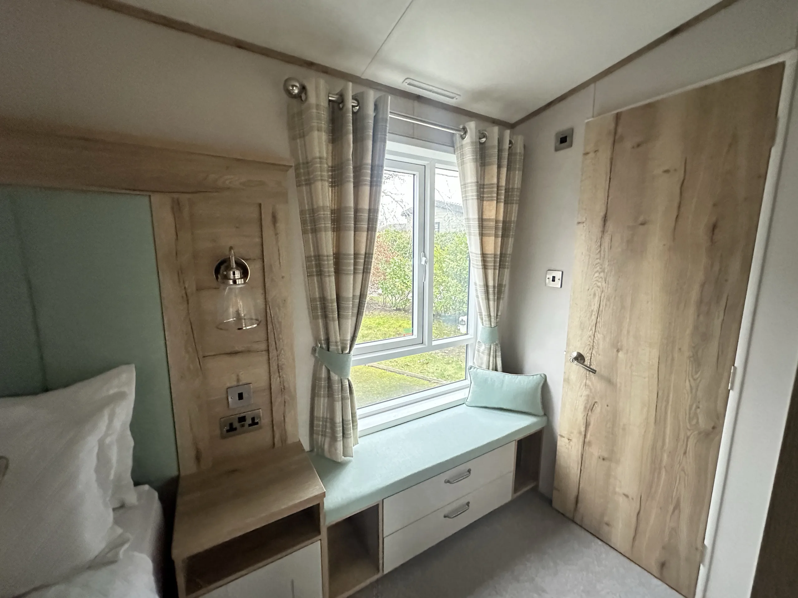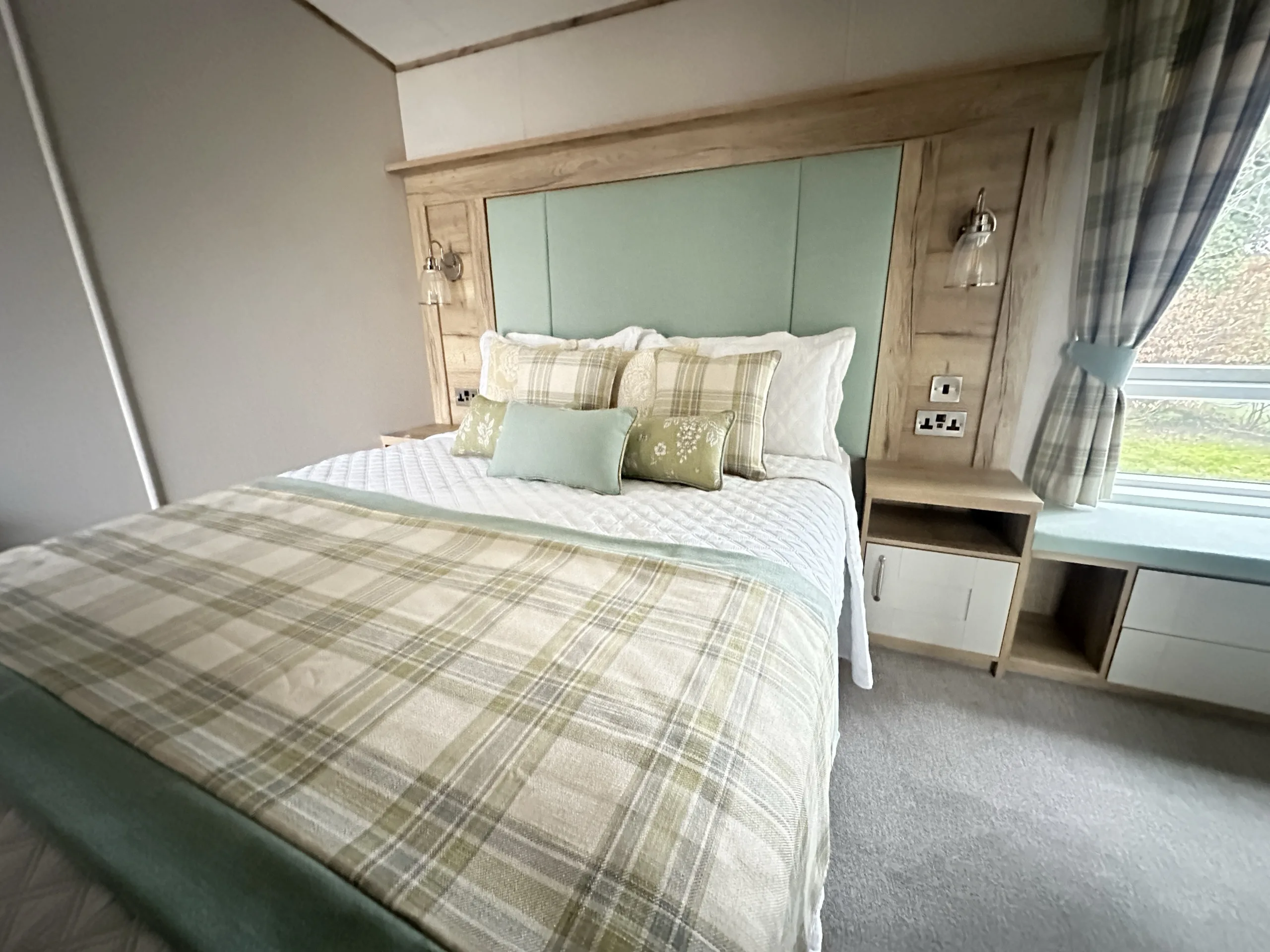 The luxurious master bedroom boasts a lift-up king-size bed, generous storage, and a stylish en-suite with a walk-in shower. The family bathroom is equally impressive, offering a spacious walk-in shower and ample storage, ensuring ultimate comfort for all.