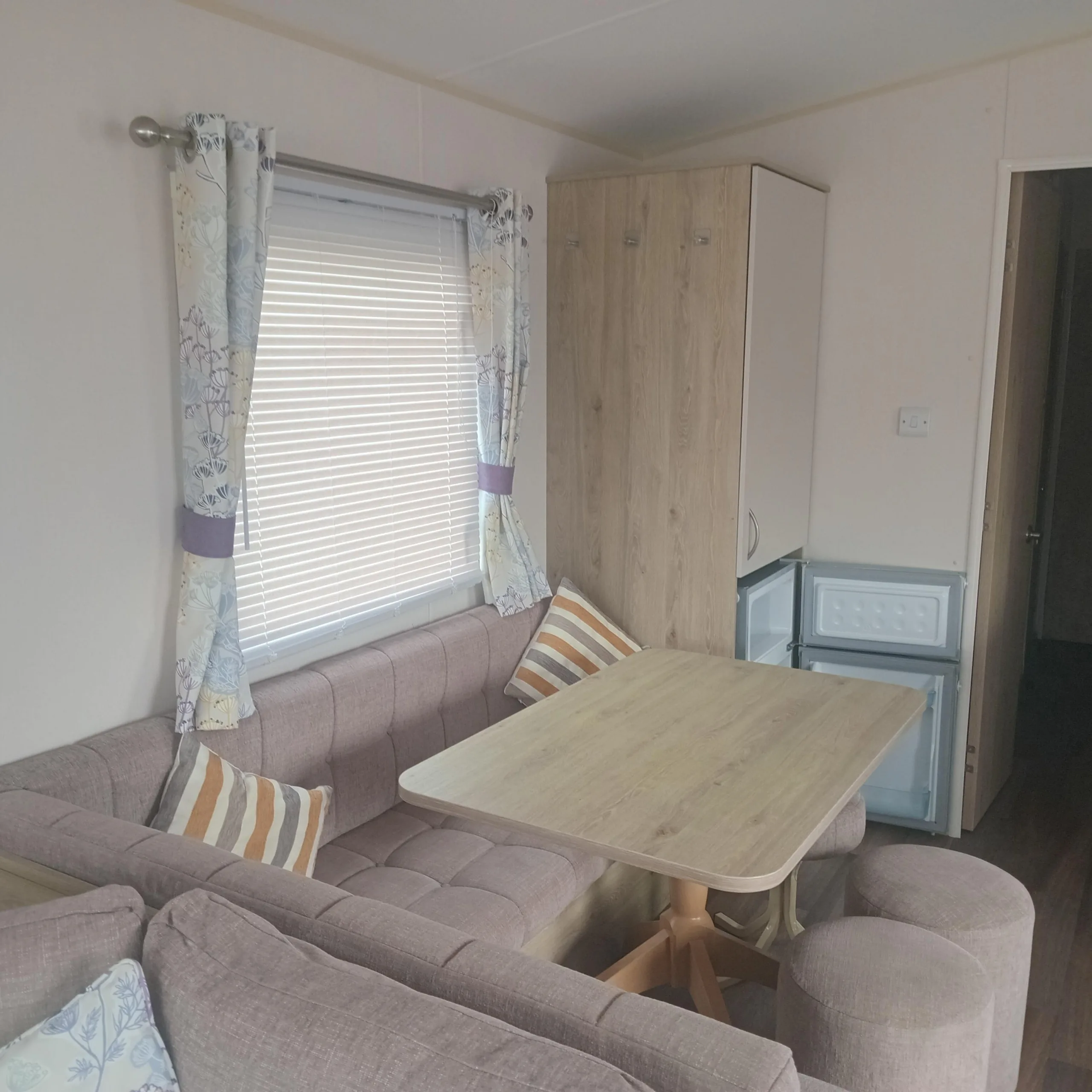 The ABI Bowland offers a peaceful and spacious holiday home, with its soft, neutral color palette setting a calm, welcoming tone. The open-plan living area features wraparound seating and stylish laminate flooring, creating a sociable and airy space that’s perfect for relaxing or entertaining. The booth-style dining area, makes mealtimes a breeze.
