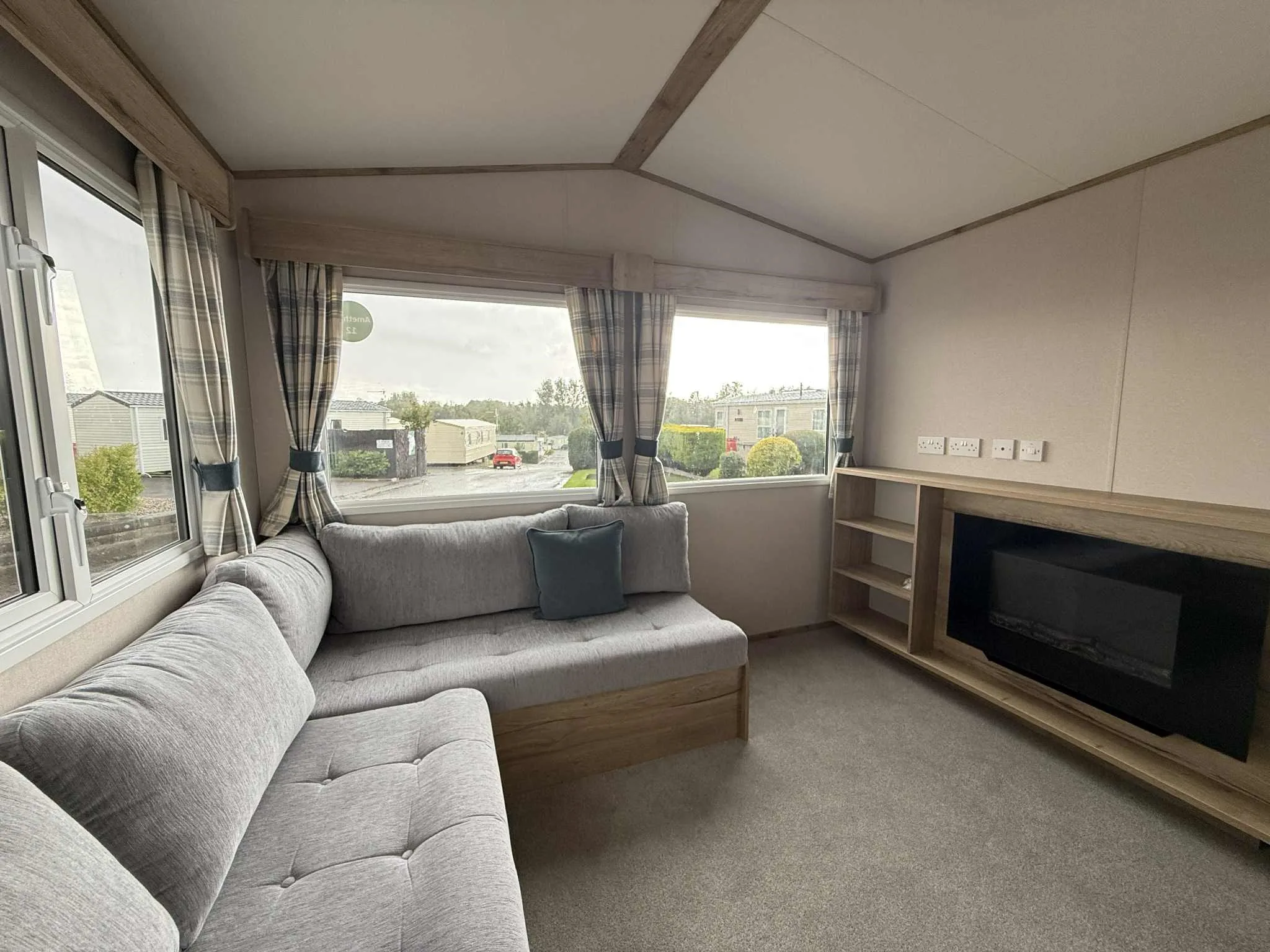 The brand new ABI Coworth offers everything you need in a holiday home. With a soft, chunky sofa that converts to a double bed plus a modern electric fire for added comfort. The spacious living area creates a perfect atmosphere for relaxation. The well-designed kitchen and dining space are ideal for real living, with a galley kitchen, oven, hob and overhead storage leading into a bright, open-plan living area flooded with natural light from three large windows. The comfortable dining area seats four, with room for extra seating if required.