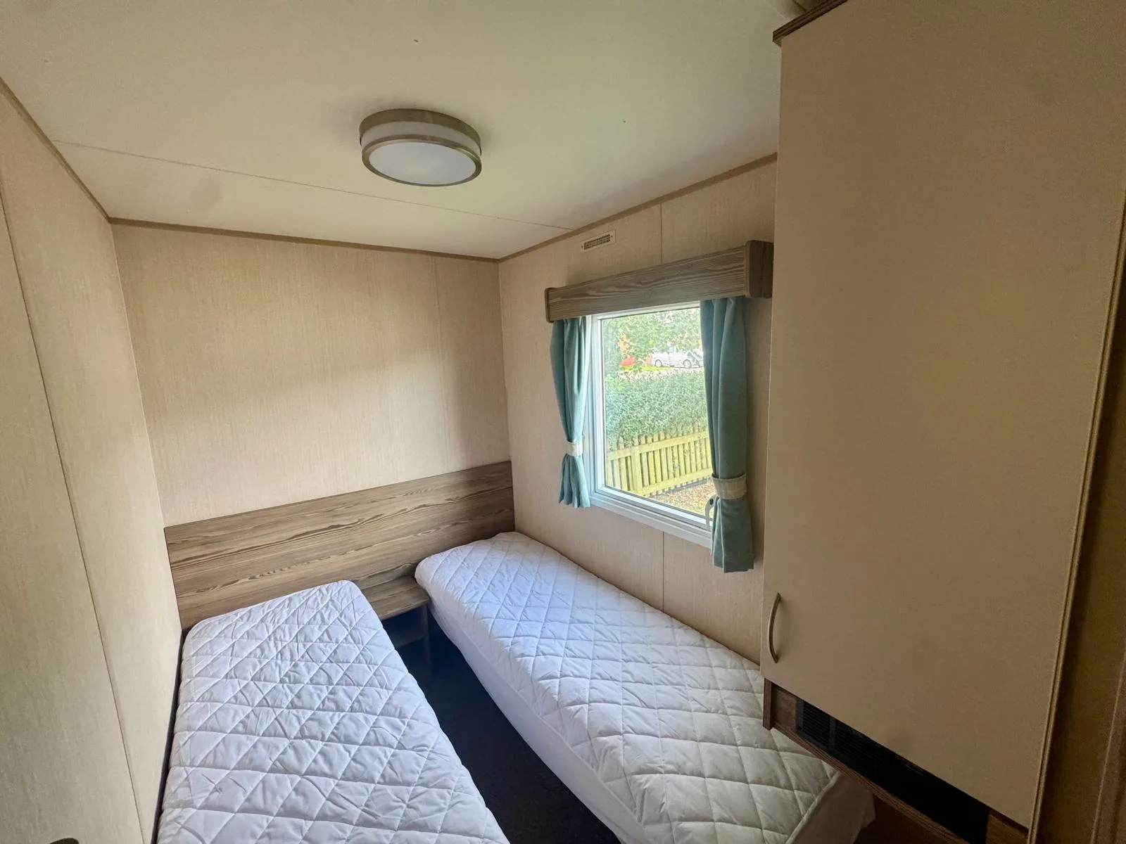 With three bedrooms – Master ensuite and two twins – all offering generous storage plus a spacious family bathroom with a full-sized shower, WC, and shelving, this home has everything you need for a comfortable stay. A separate WC adds extra convenience.