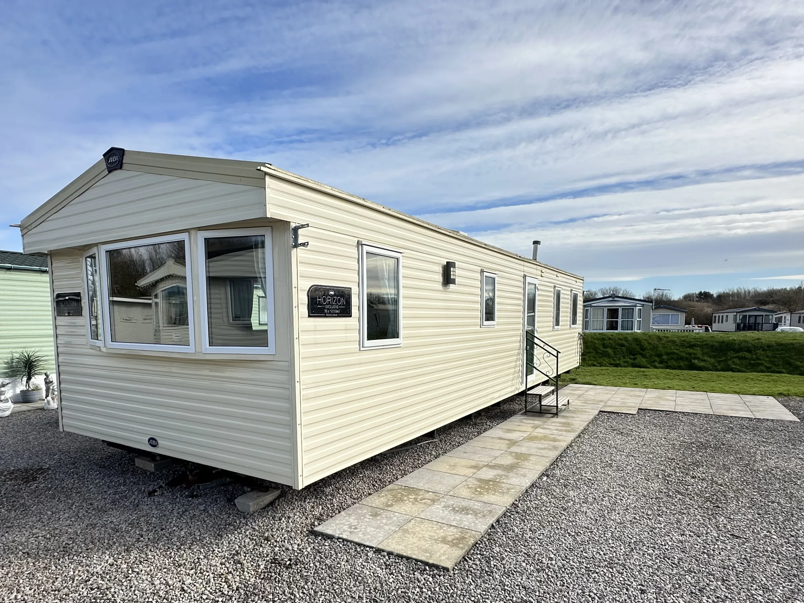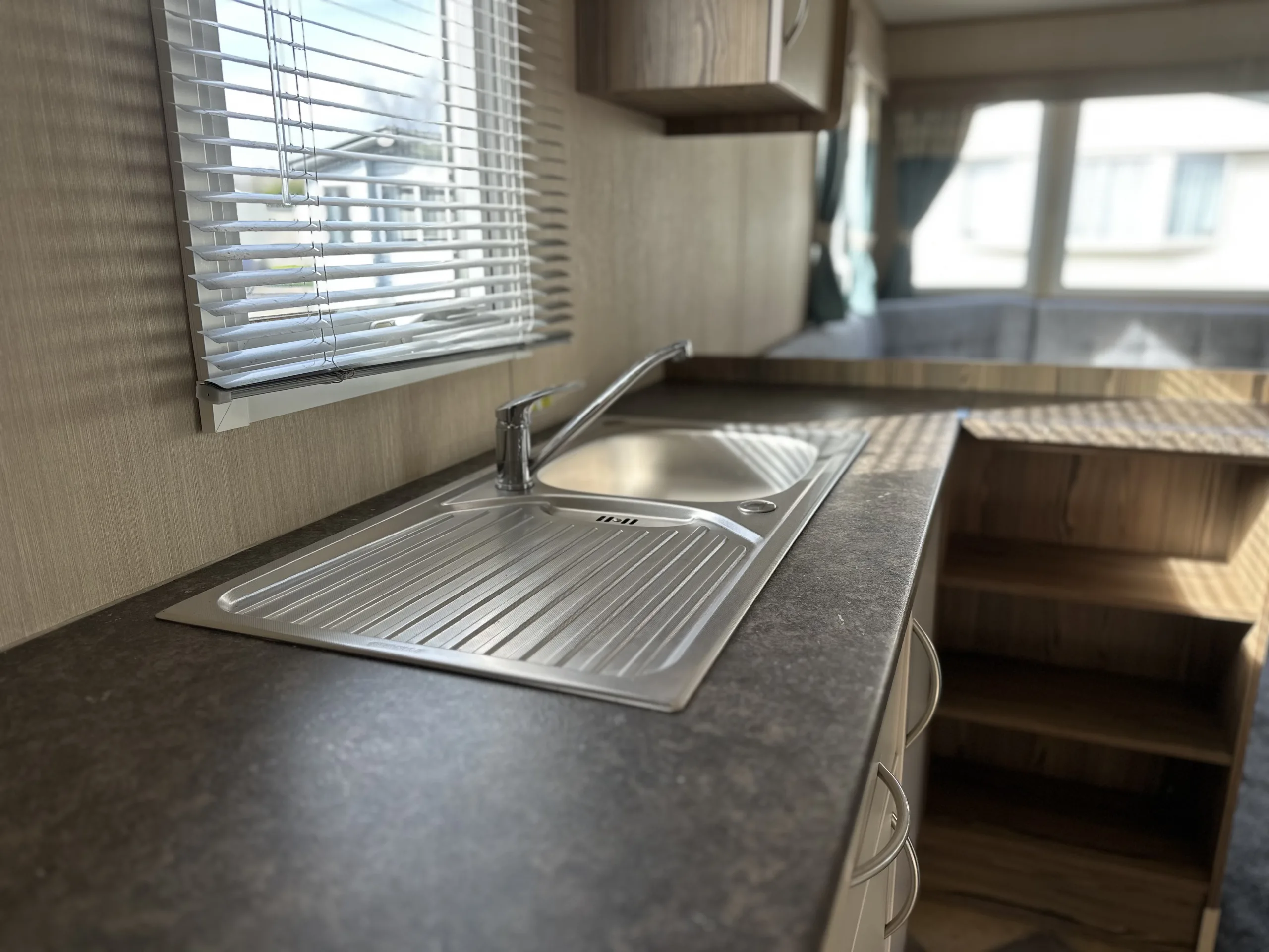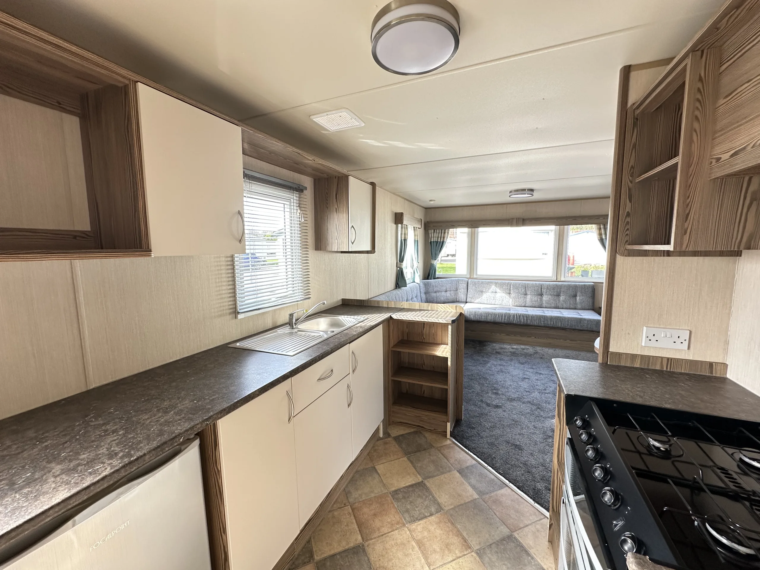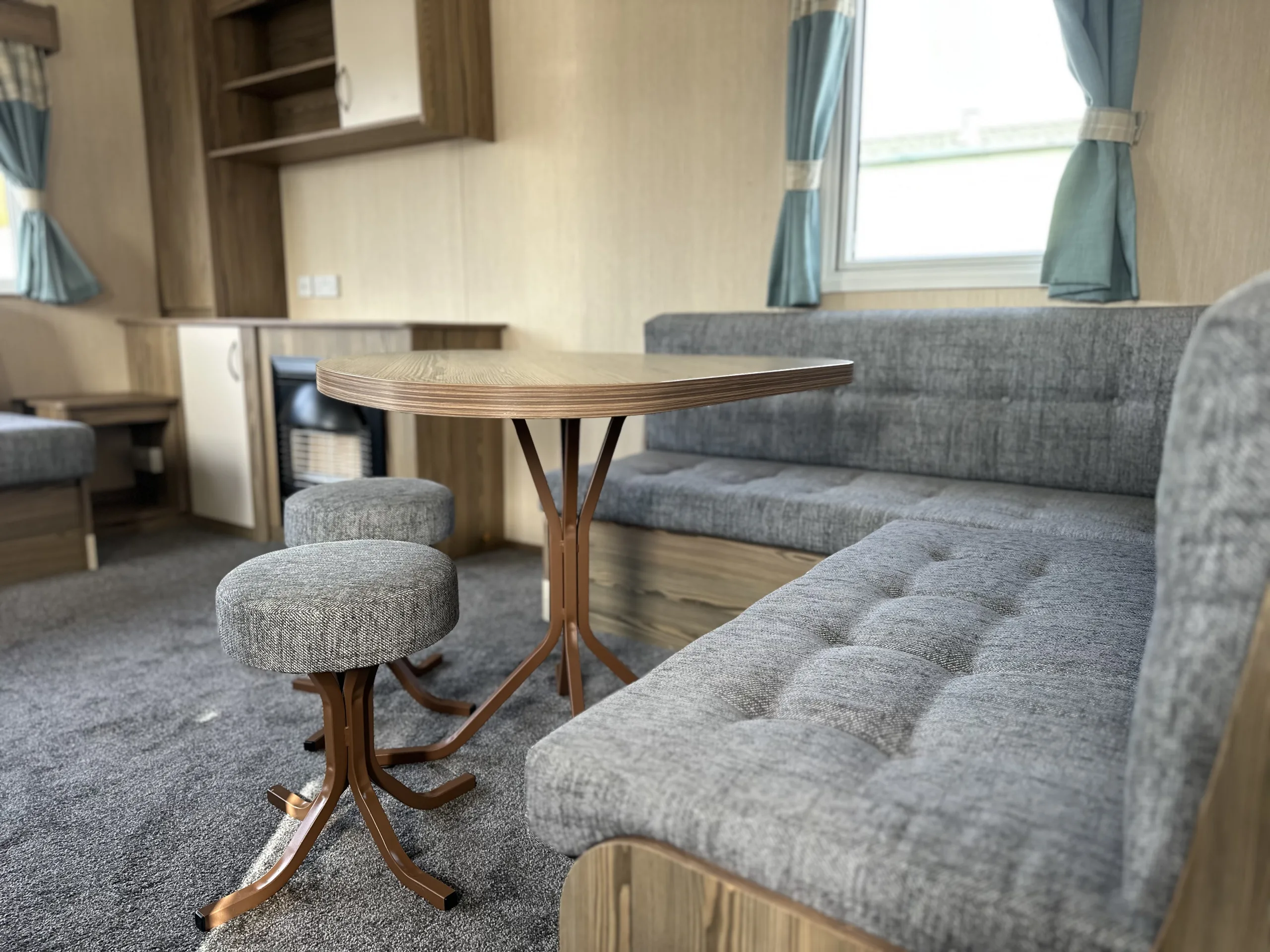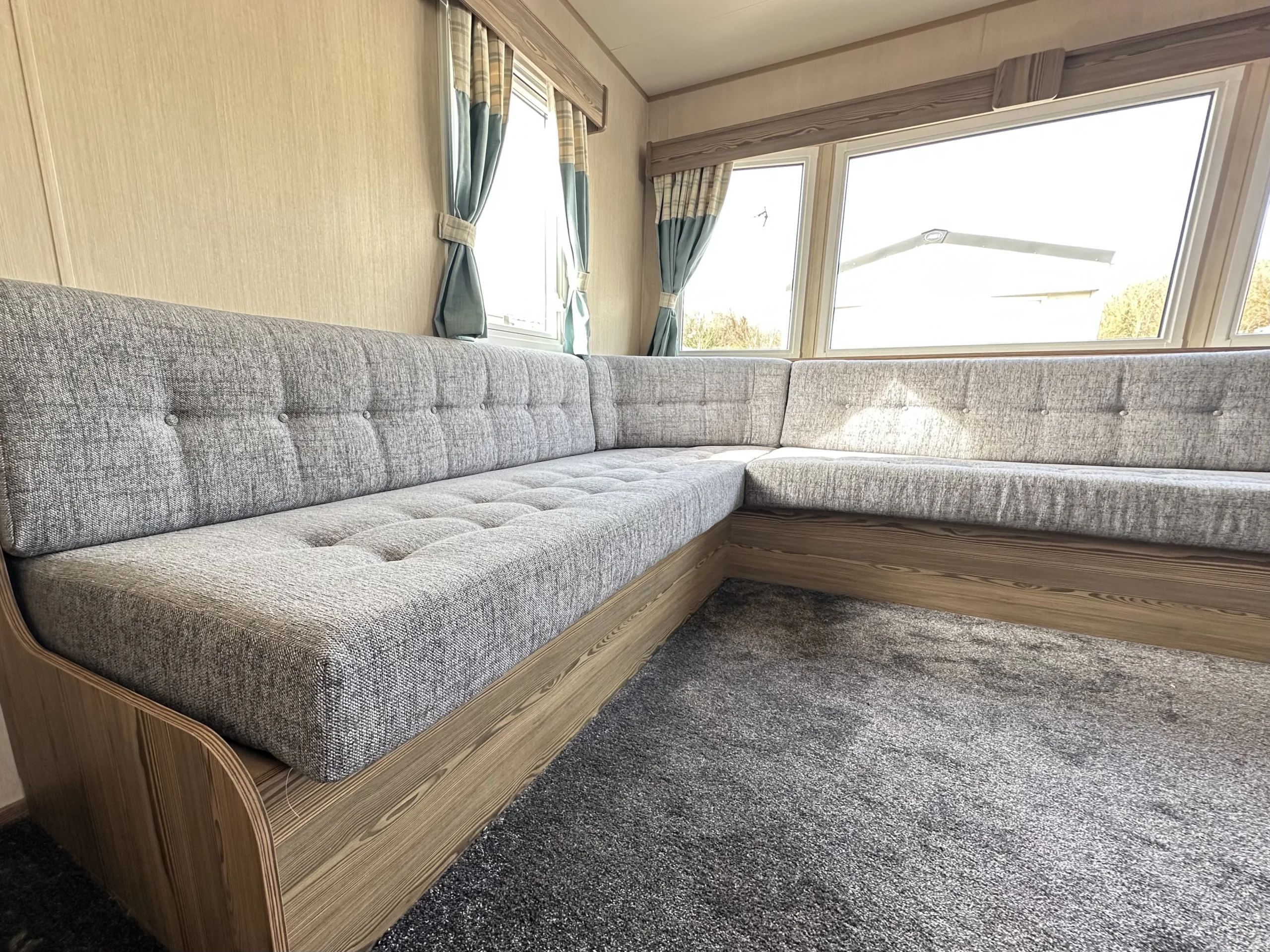 The ABI Horizon is a stylish and practical starter holiday home, offering a bright, open-plan living space with wraparound seating, a contemporary electric fire,  a fully equipped galley kitchen with ample storage and worktop space. The dining area is perfect for family meals.