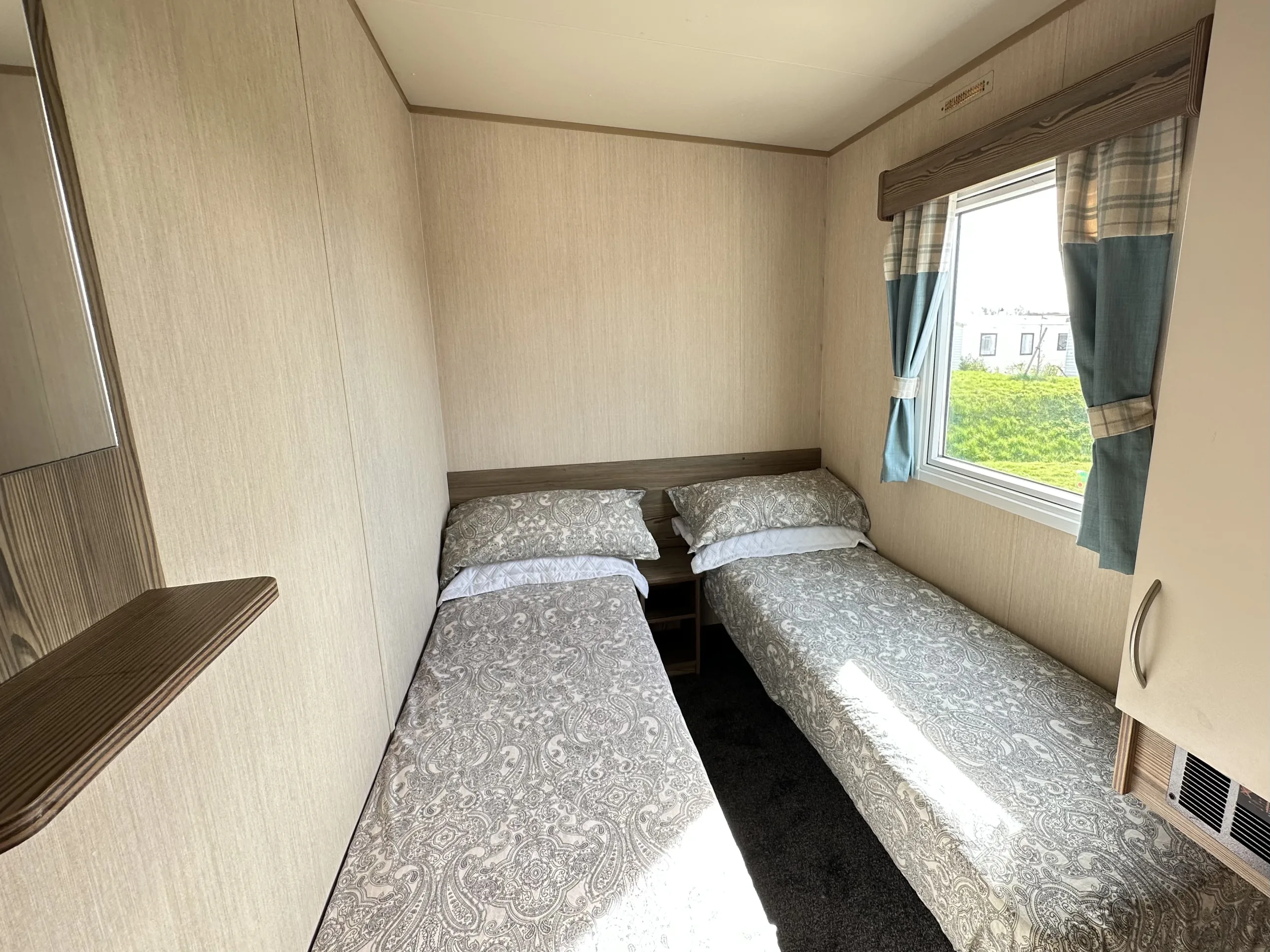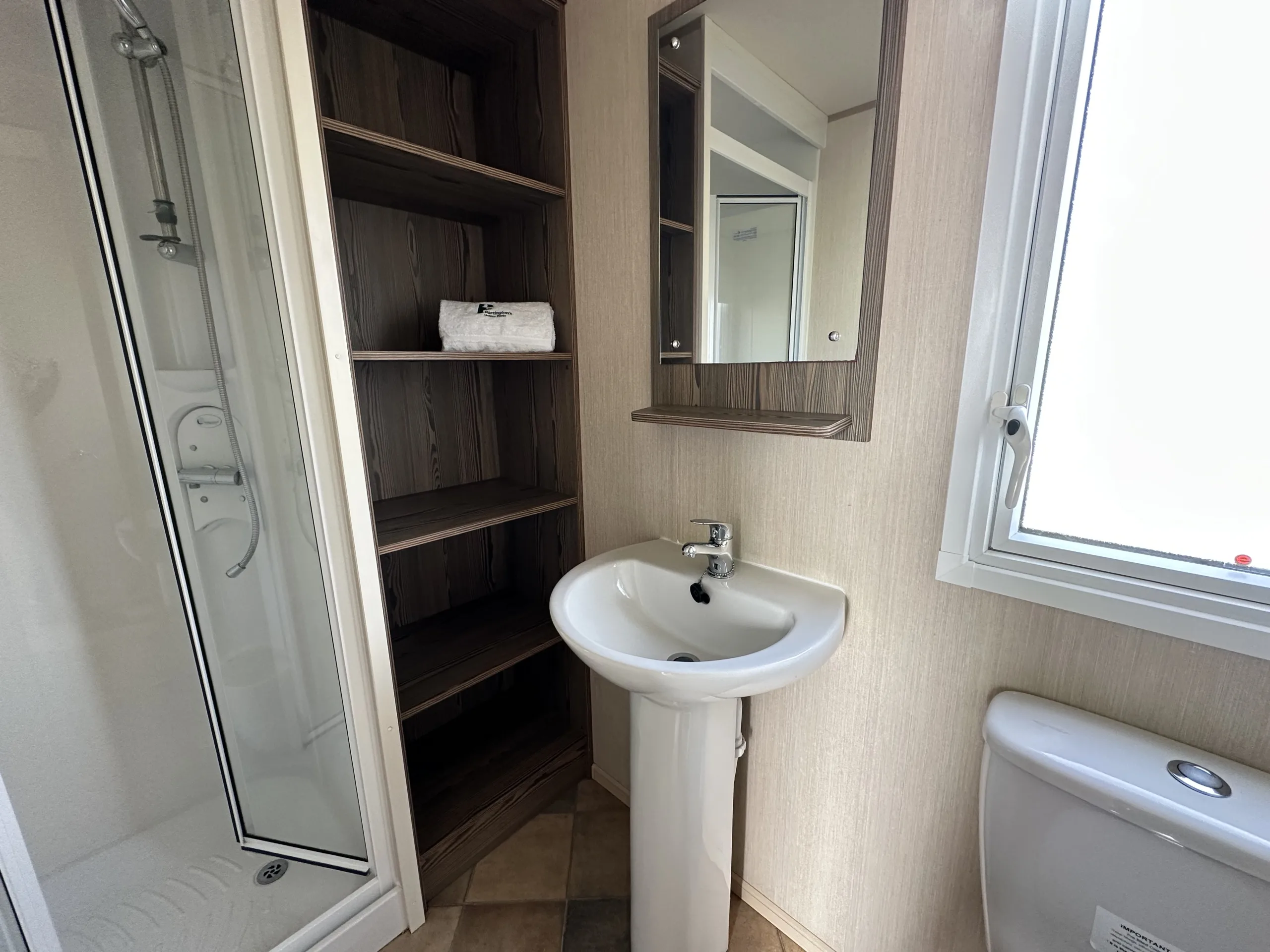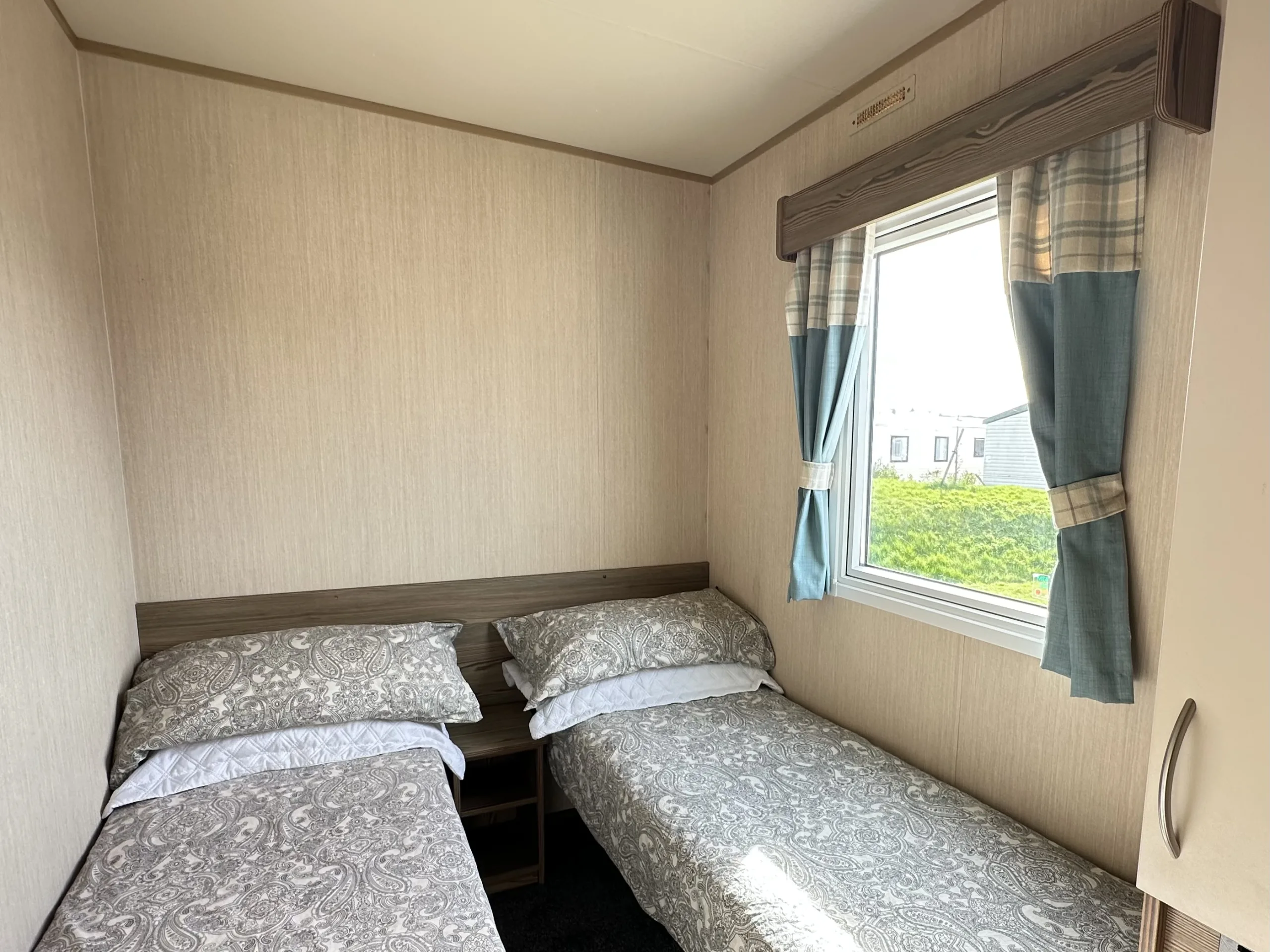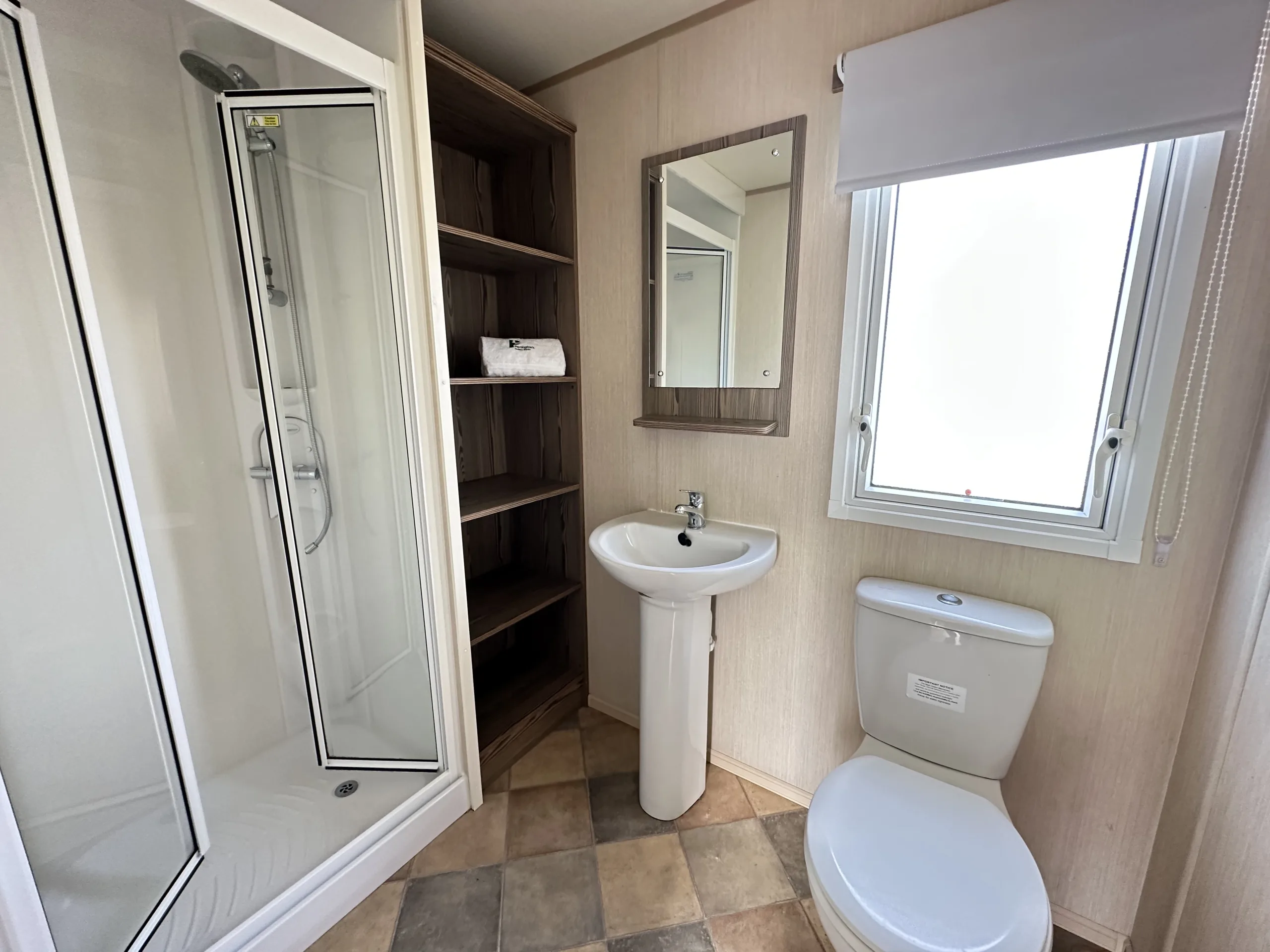 With three bedrooms—master ensuite and two twins—all offering generous storage, plus a spacious family bathroom with a full-sized shower, WC, and shelving, this home has everything you need for a comfortable stay. A separate WC for extra convenience.