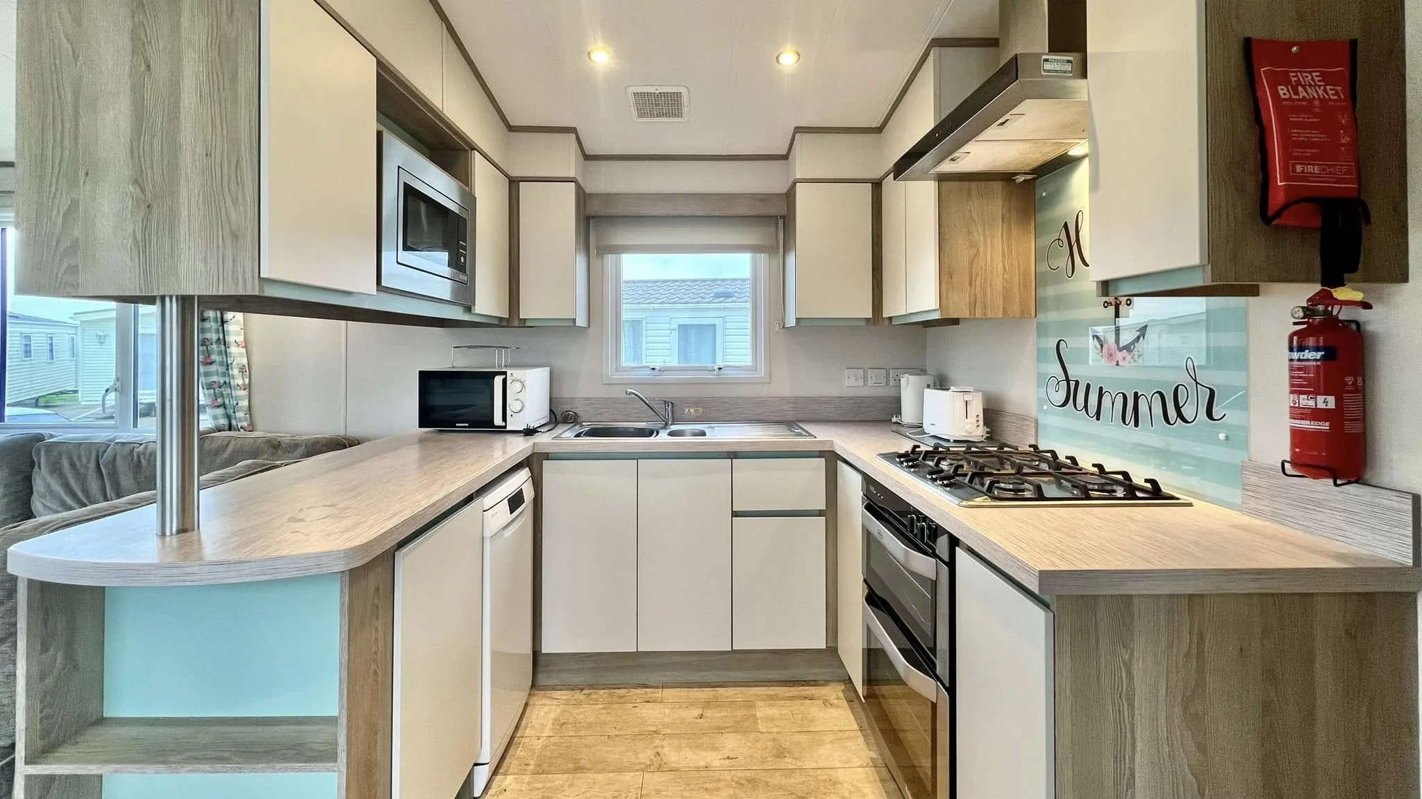 The ABI Summerhouse is a modern and practical holiday home designed for comfort and relaxation. Inside, you’ll find a spacious open-plan living area that creates a welcoming atmosphere for family and friends. The contemporary U-shaped kitchen offers plenty of storage and worktop space, making meal preparation easy and enjoyable. This home features three bedrooms: A generously sized master bedroom with an en-suite toilet for added convenience. Two well-proportioned twin bedrooms, perfect for guests or children. A large family shower room ensures practicality for everyday use. Built with double glazing and central heating, the ABI Summerhouse is ideal for year-round enjoyment.