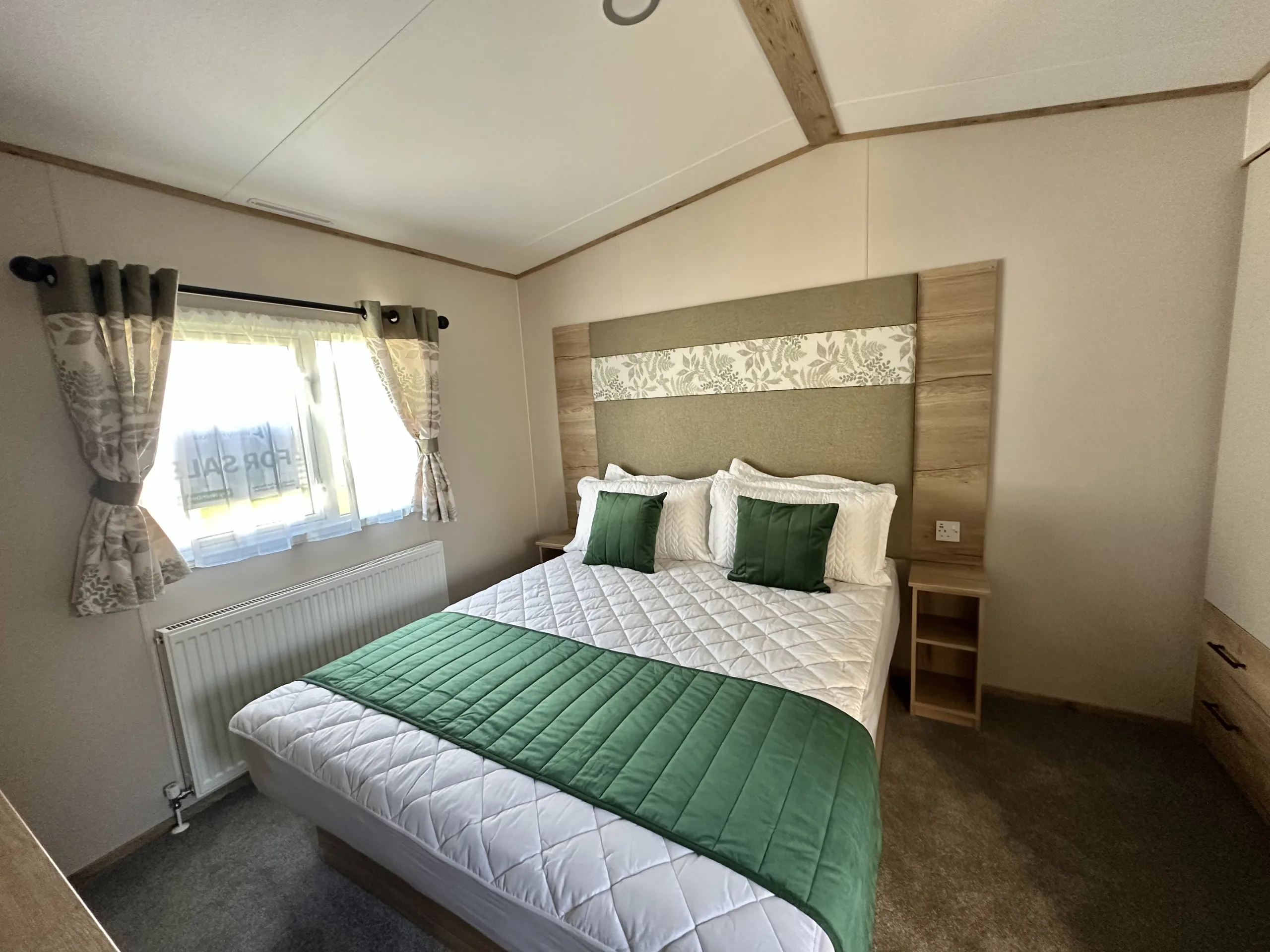 Complete with a fixed dinette and a U-shaped kitchen featuring soft-close hinges and an externally vented powered cooker hood. Modern fixtures and fittings include USB sockets in the kitchen and TV points in the master bedroom and 1 twin bedroom. The fabric headboards are stylishly designed offering comfort and softness.