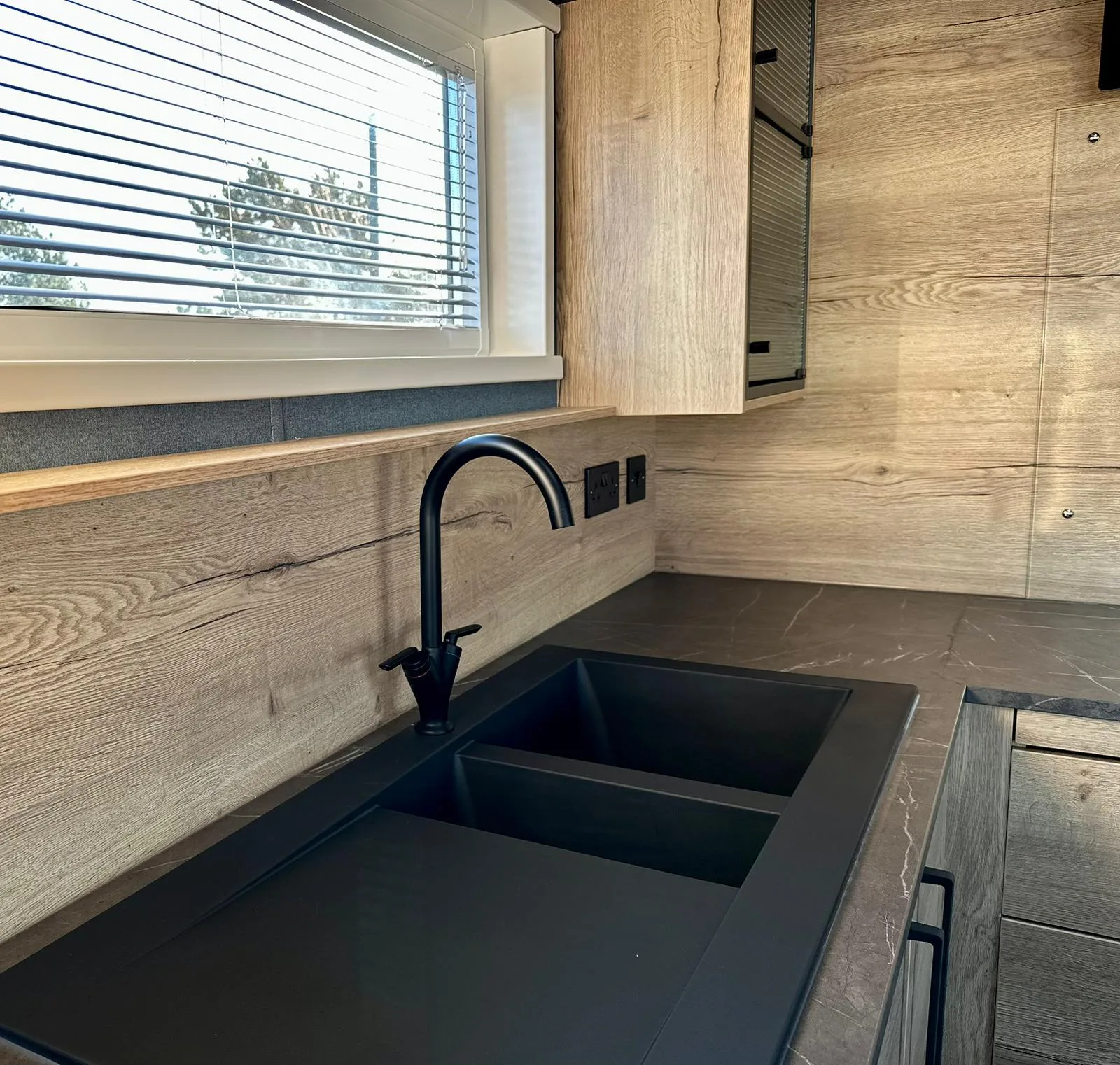 The luxury kitchen comes with everything you could possibly desire including five-burner hob, integrated fridge-freezer, washing machine, dishwasher and wine cooler, accented with slate effect worktops and composite sink. Adjacent is the freestanding dining table with seating for up to six people.