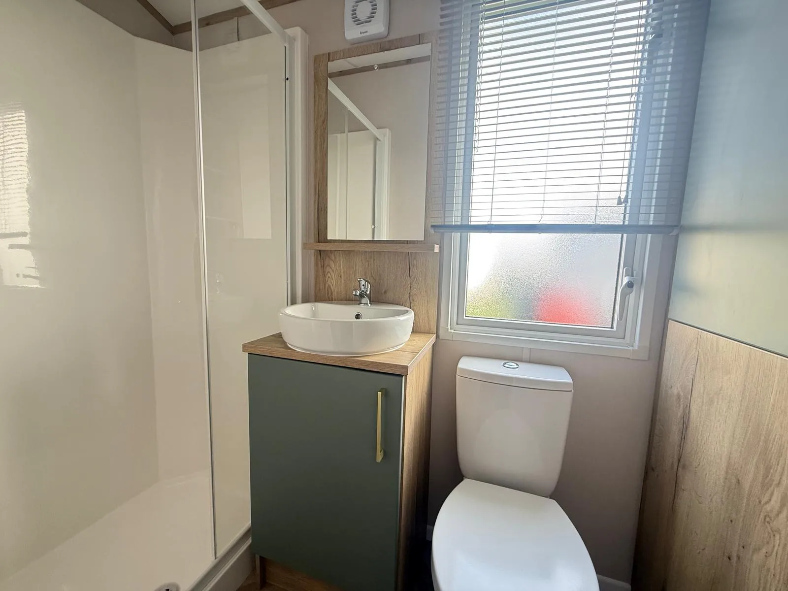 The family bathroom boasts a large shower cubicle, sleek countertop basin, and stylish fixtures. With additional storage throughout, the Atlas Heritage is designed for both comfort and convenience. This holiday home offers the perfect blend of luxury, style and practicality for the ultimate family retreat.