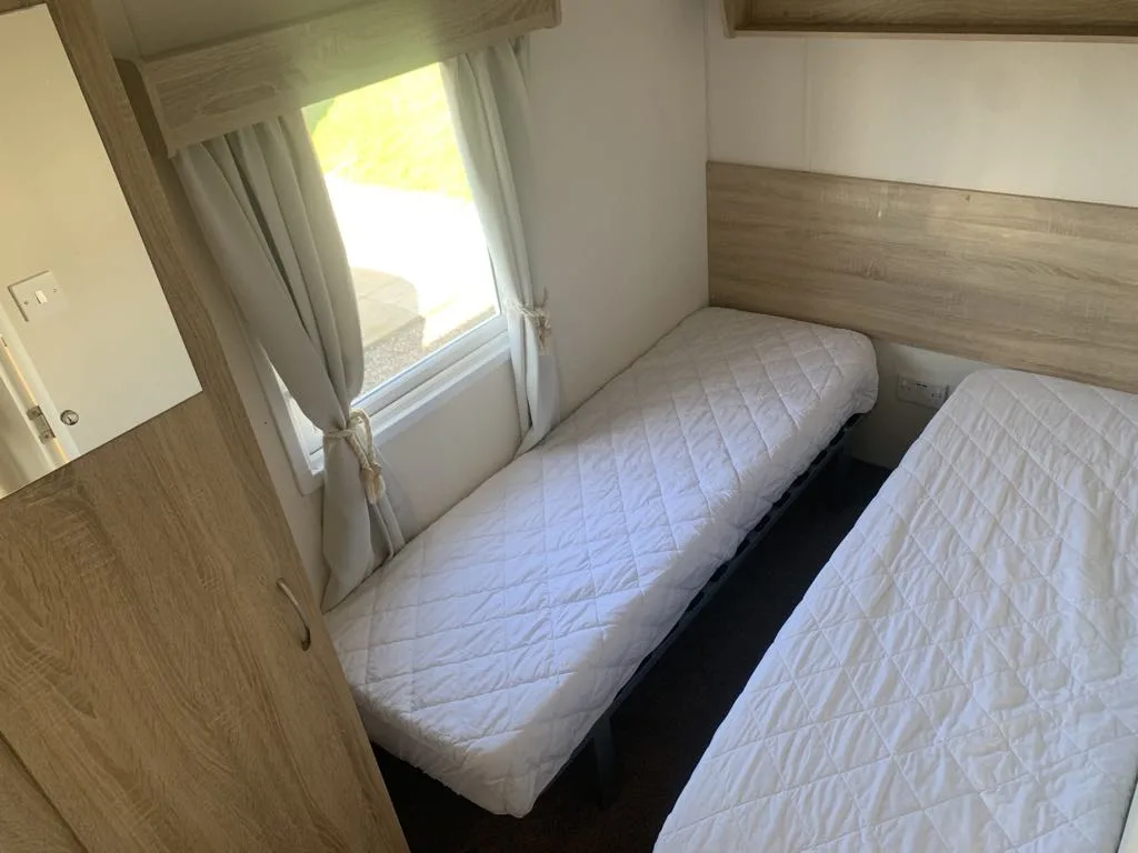 Designed with first-time buyers in mind, it offers excellent value for money, spacious open-plan living, and a cosy, home-from-home atmosphere. The layout features two comfortable bedrooms, plus a pull-out bed in the wraparound sofa for extra guests.