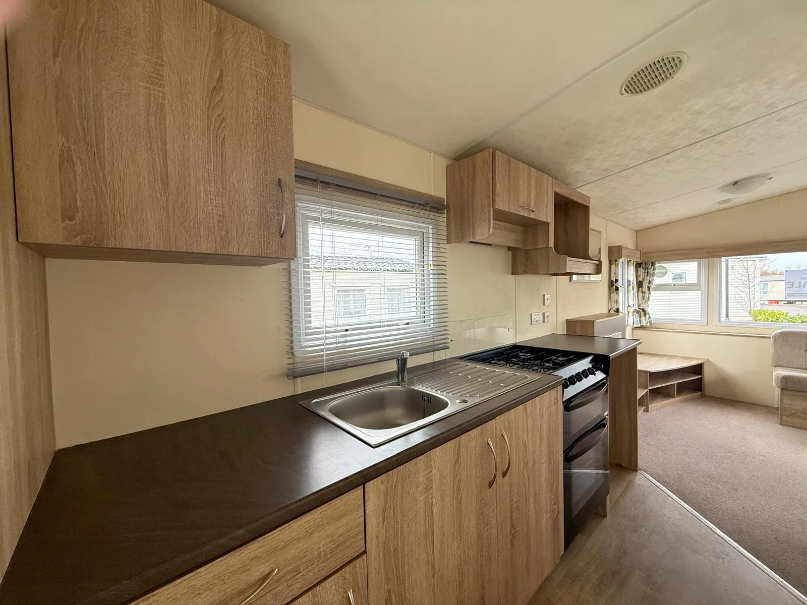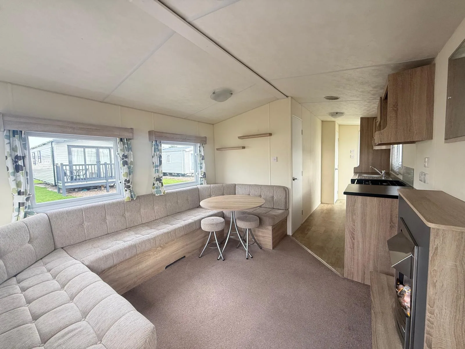 The layout includes two well-appointed bedrooms and a convenient pull-out bed in the wraparound lounge, ideal for hosting extra guests. The fully fitted kitchen and adjacent dining area make mealtimes a breeze, while the family bathroom features a generously sized shower, wash basin, and WC.