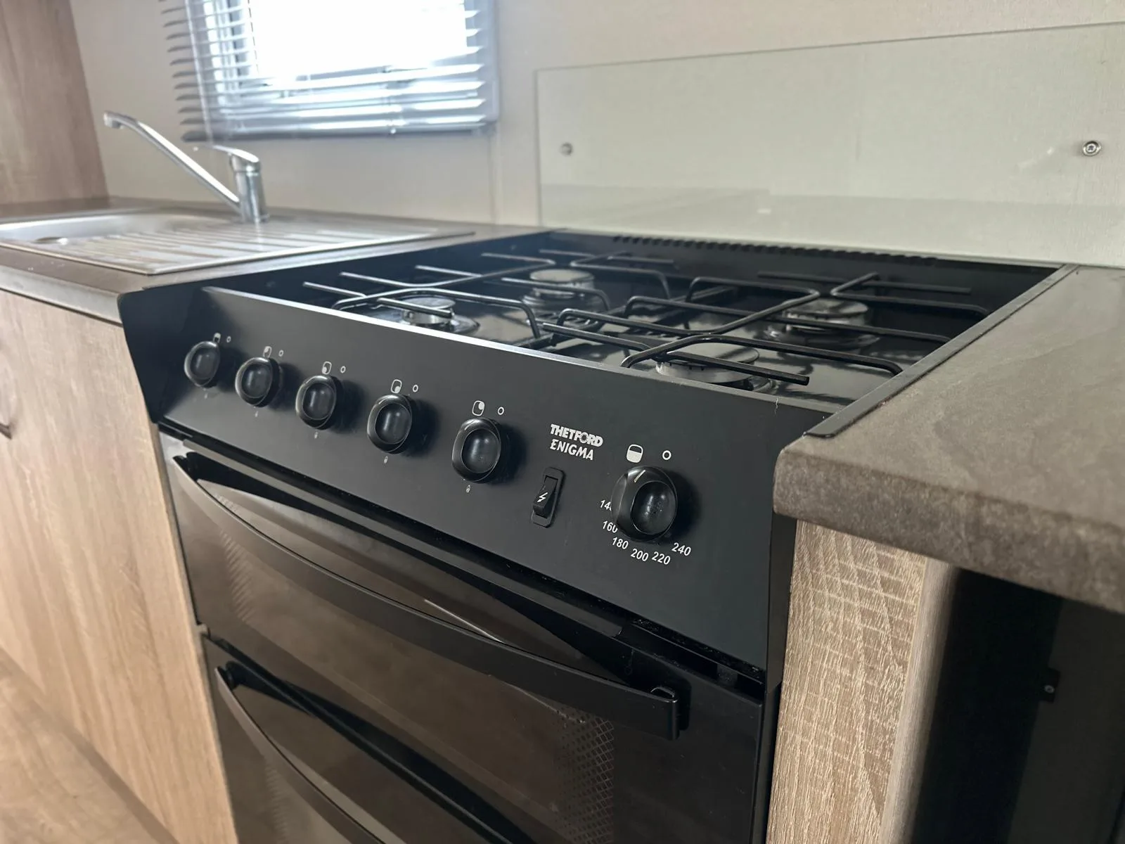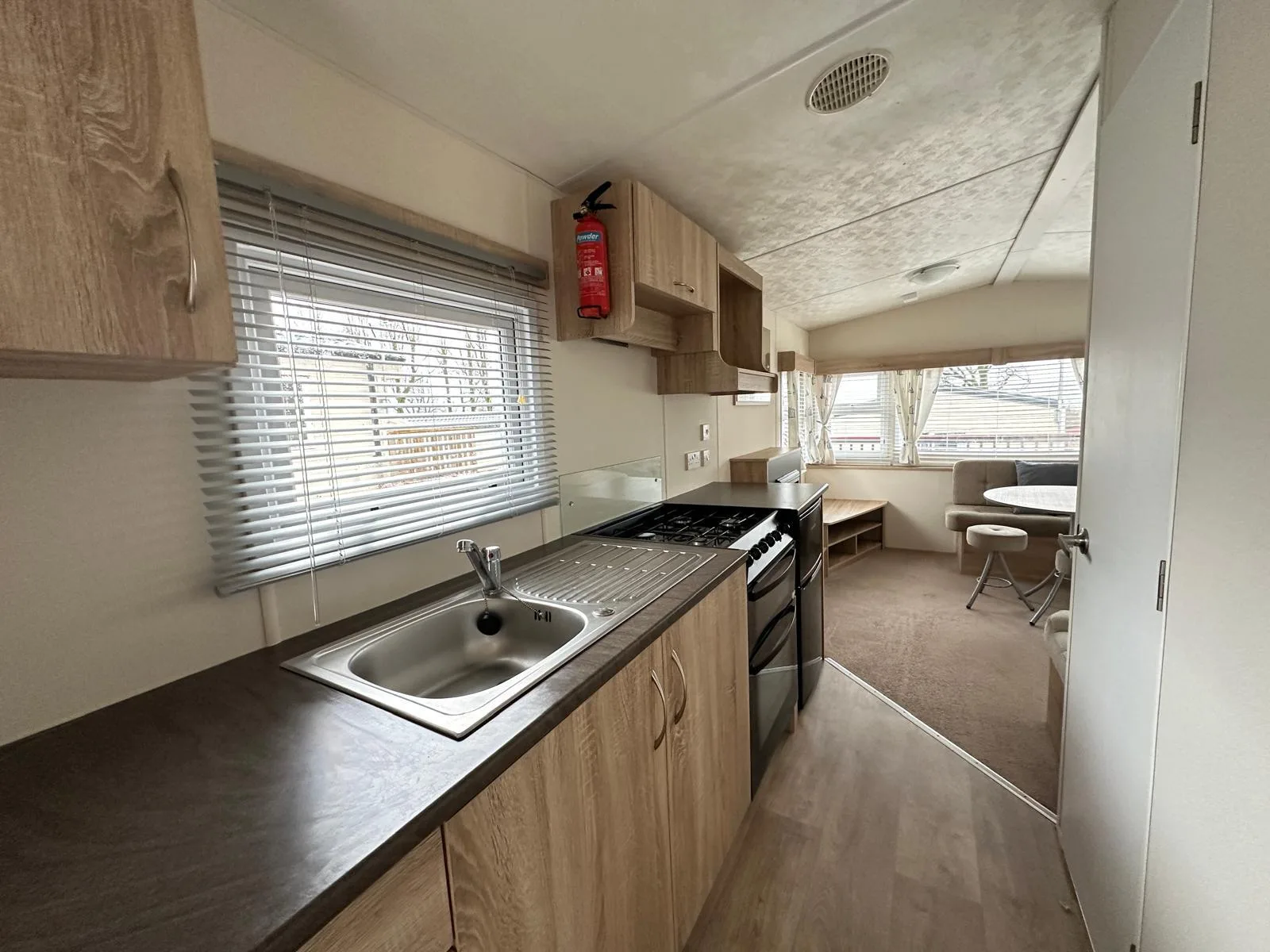 The fully fitted kitchen and adjacent dinette area make meal times easy, while the family bathroom includes a large shower unit, wash basin, and WC.