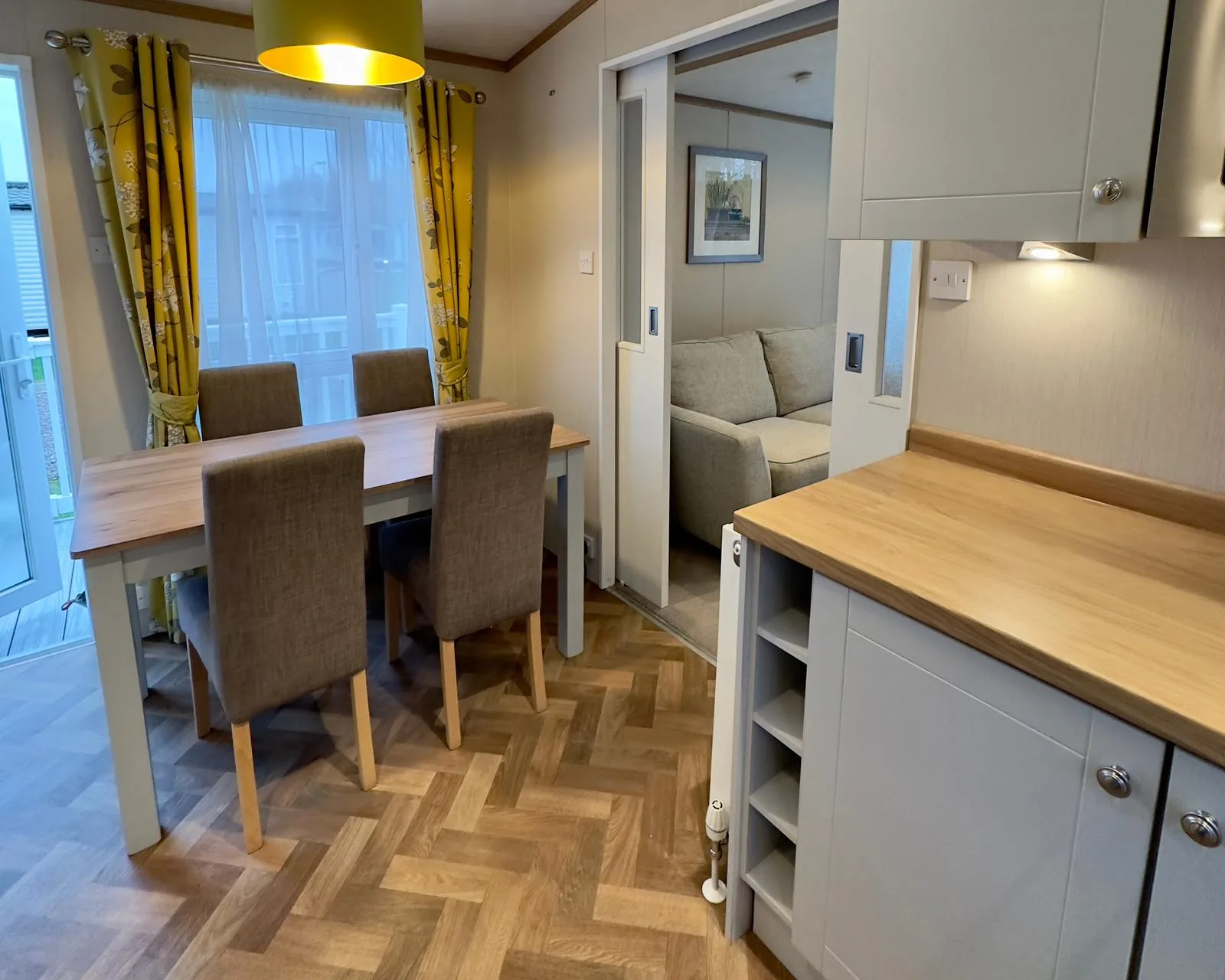 Step into the Pemberton Abingdon, where modern living meets vibrant design. This stunning static caravan feels like a show home from the moment you enter, with a stylish, contemporary interior that exudes comfort and elegance. The spacious layout is enhanced by doors that separate the lounge from the kitchen and dining areas, while front-facing patio doors lead to a charming decking area perfect for relaxing outdoors.