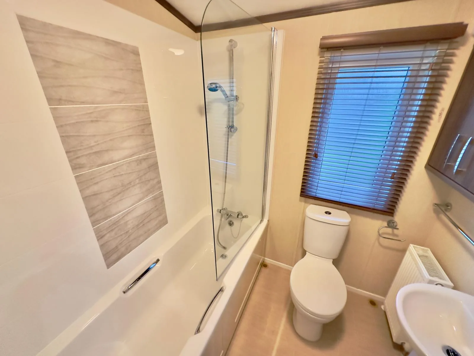 The double bedroom is thoughtfully designed with a wardrobe and overhead storage, ensuring both comfort and practicality. The true highlight however, is the master bedroom: a sleek and stylish retreat featuring a luxurious en-suite bathroom with a full-sized bath, an indulgent feature, alongside a spacious walk-in wardrobe offering plenty of storage for all your belongings.