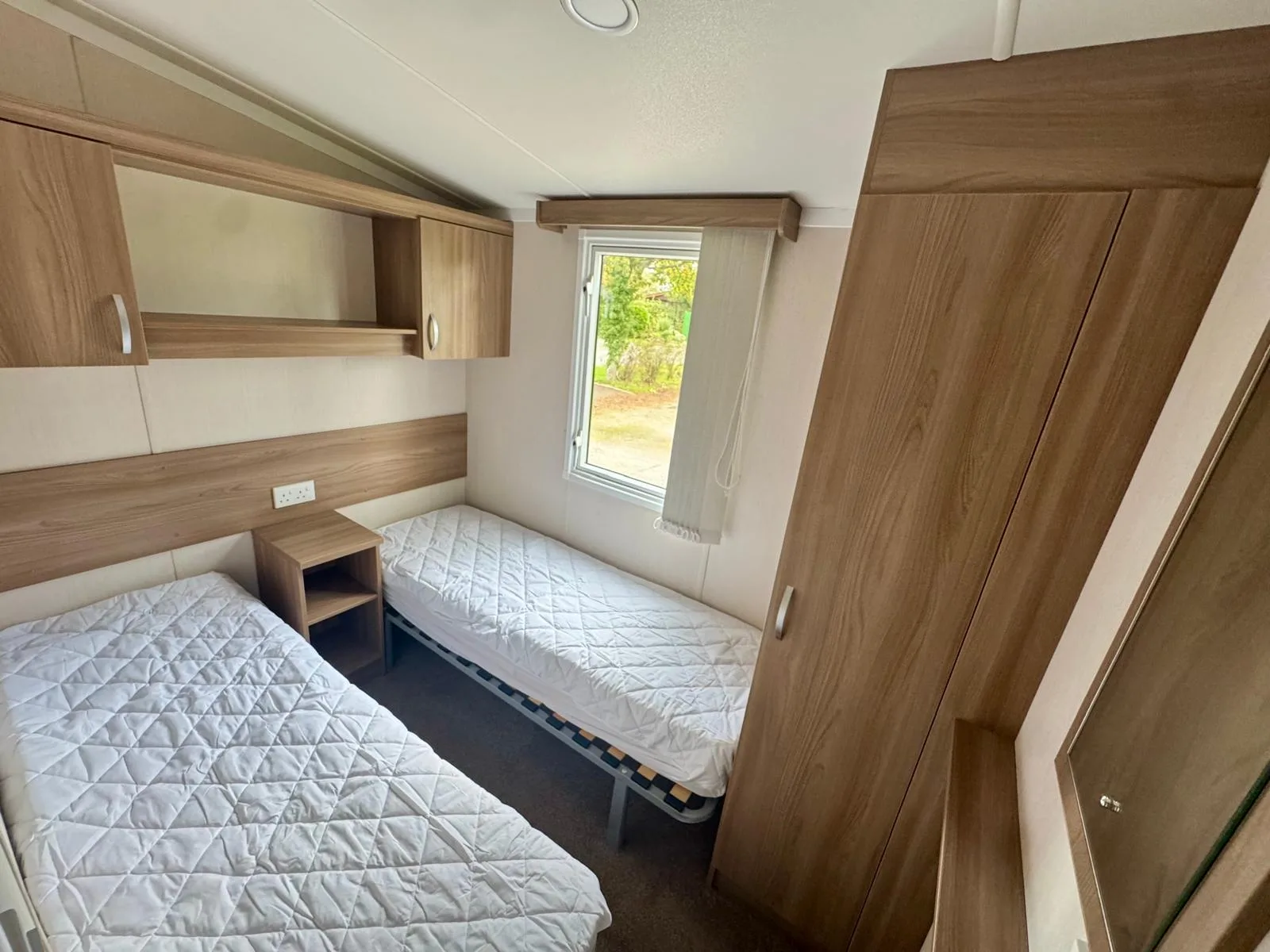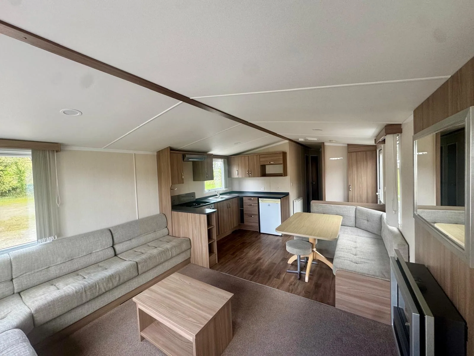 Step inside and be greeted by a spacious, modern interior that combines style and practicality offering year-round comfort with double glazing and gas central heating. The generous wraparound sofa in the living area is ideal for relaxing after a day of adventure, while the kitchen and dining space offer the perfect spot for family meals and entertaining. With two comfortable twin bedrooms and a large master bedroom featuring a double wardrobe and vanity area, there’s plenty of space for everyone.