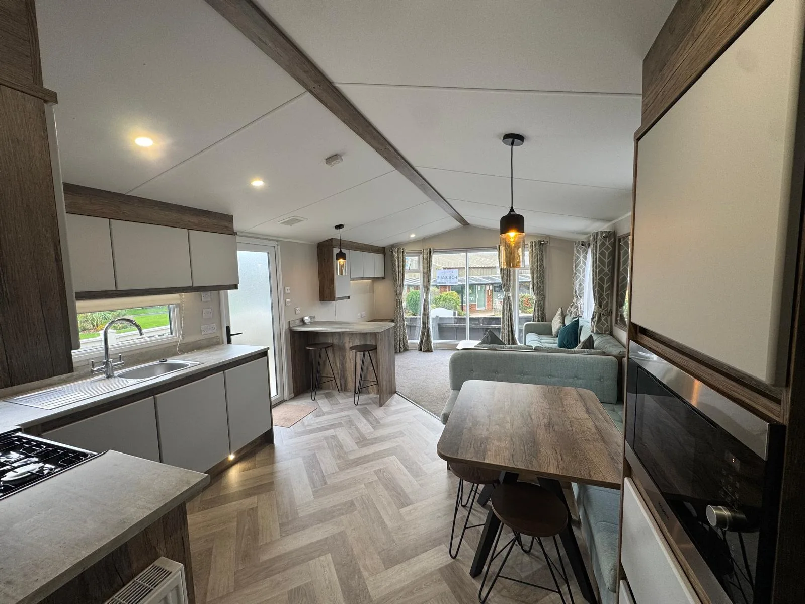 The large open-plan lounge, generous fixed dinette and stylish breakfast bar combine to make the living area of this static caravan a super-sociable space. Designed to fit seamlessly around your lifestyle, its the perfect setting to play, cook relax and enjoy.