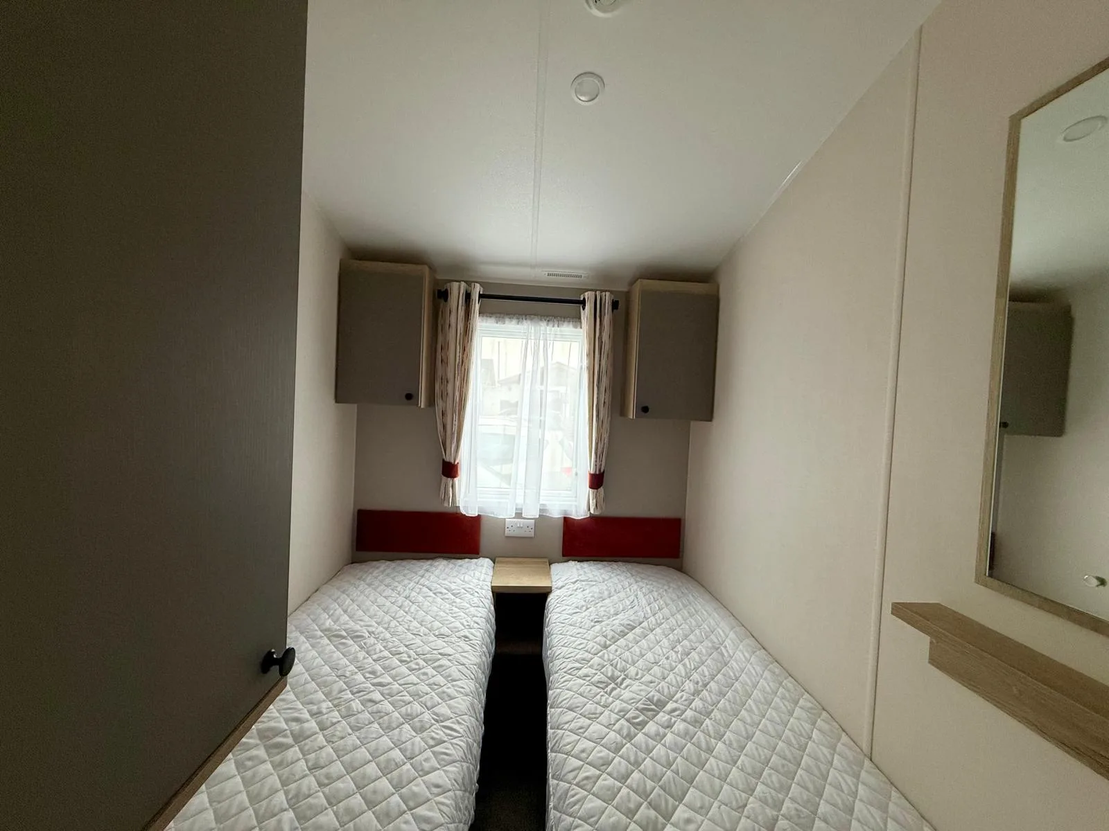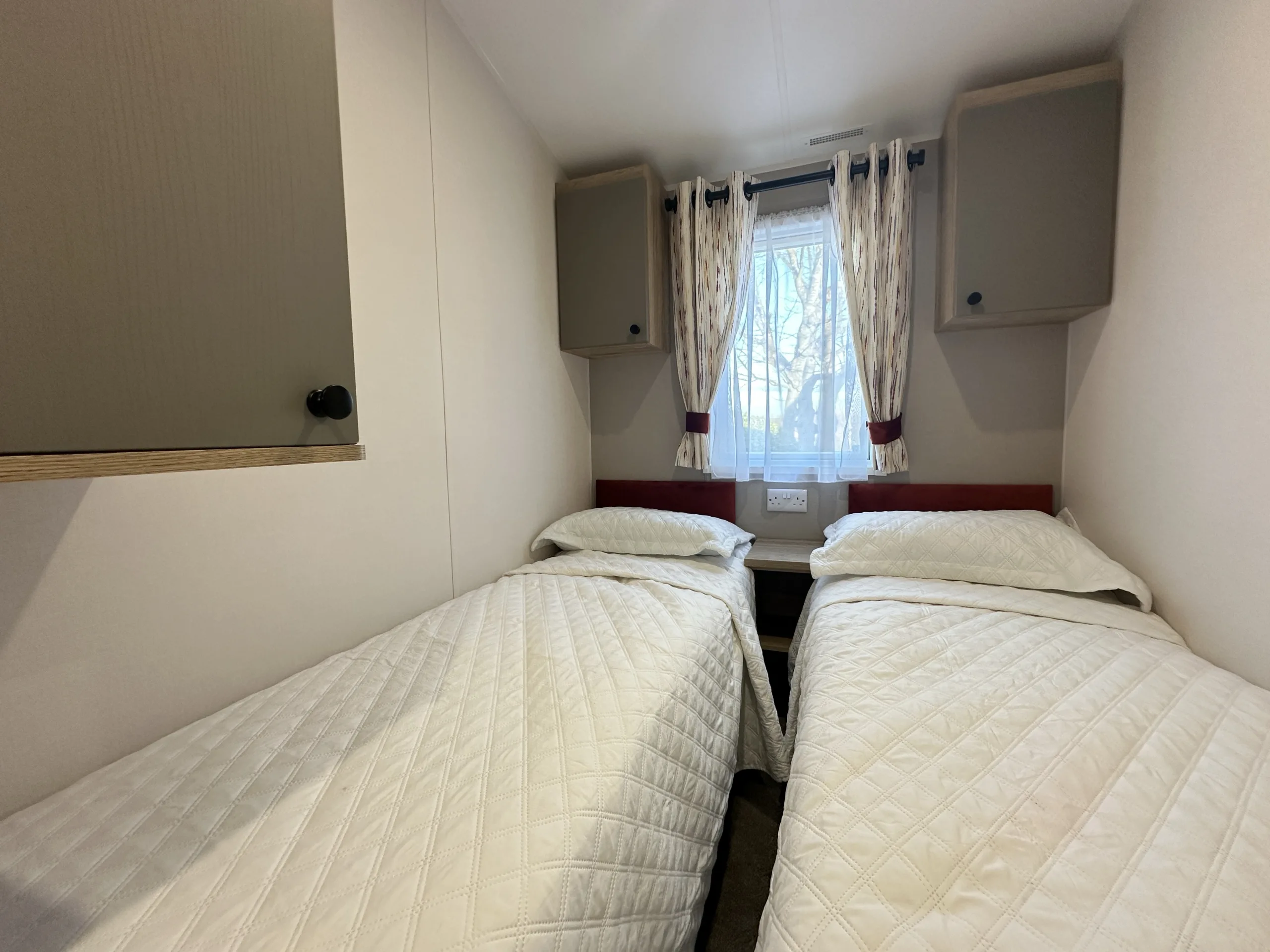 Comfortable twin bedroom with smart storage, perfect for guests or family.