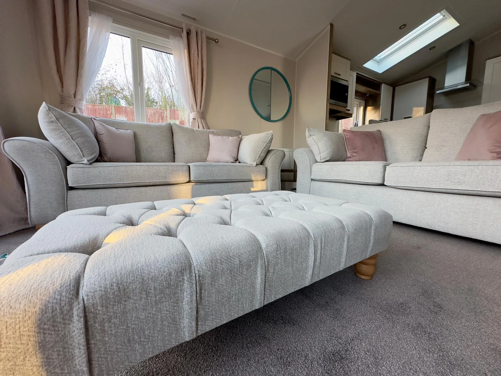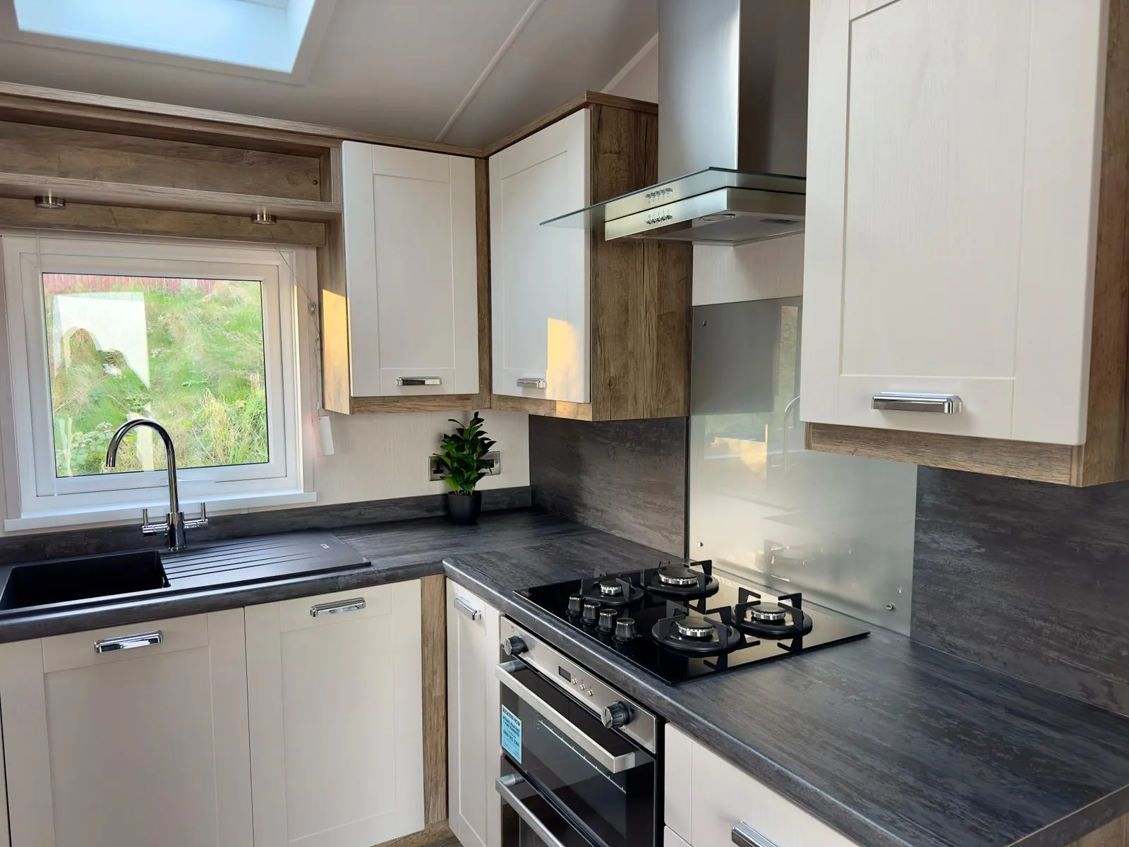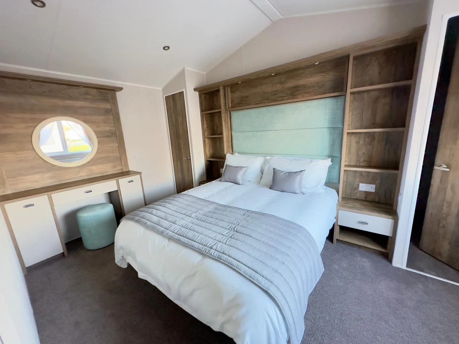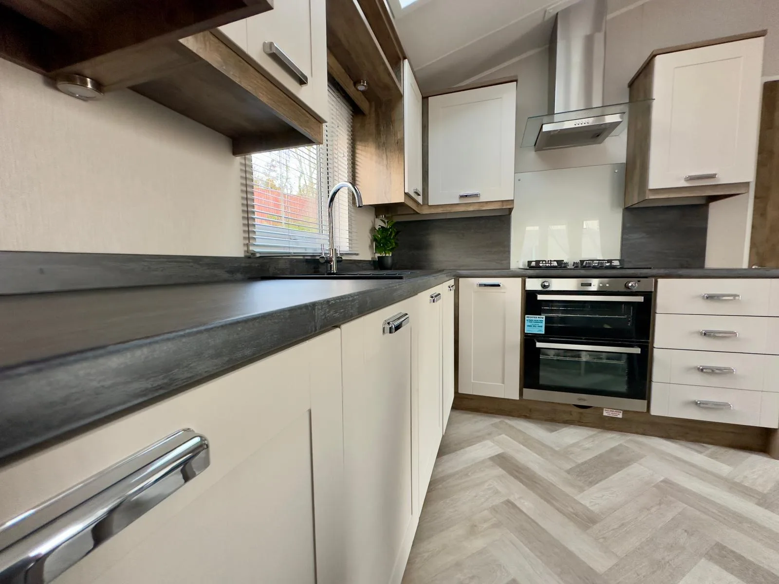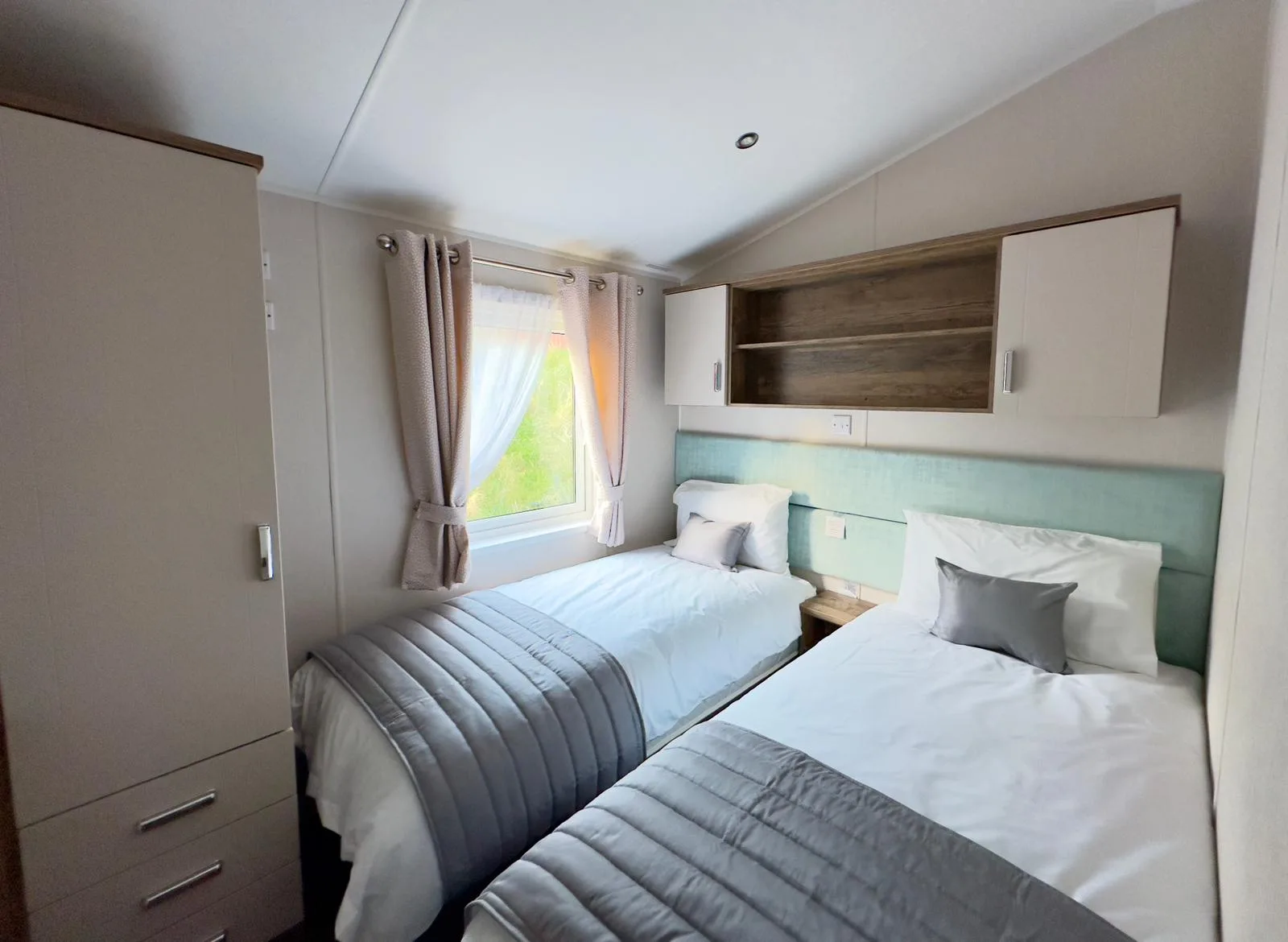 The Willerby Sheraton is contemporary, spacious and the ideal place to unwind with family and friends. You’ll love the heritage feel with the feature oak wood effect throughout. Lounge includes comfy two seater sofas with matching large footstool, modern fitted units and double patio doors. Leading to fully fitted kitchen with modern integrated appliances, plenty of workspace and storage. Freestanding dining table plus four upholstered chairs.