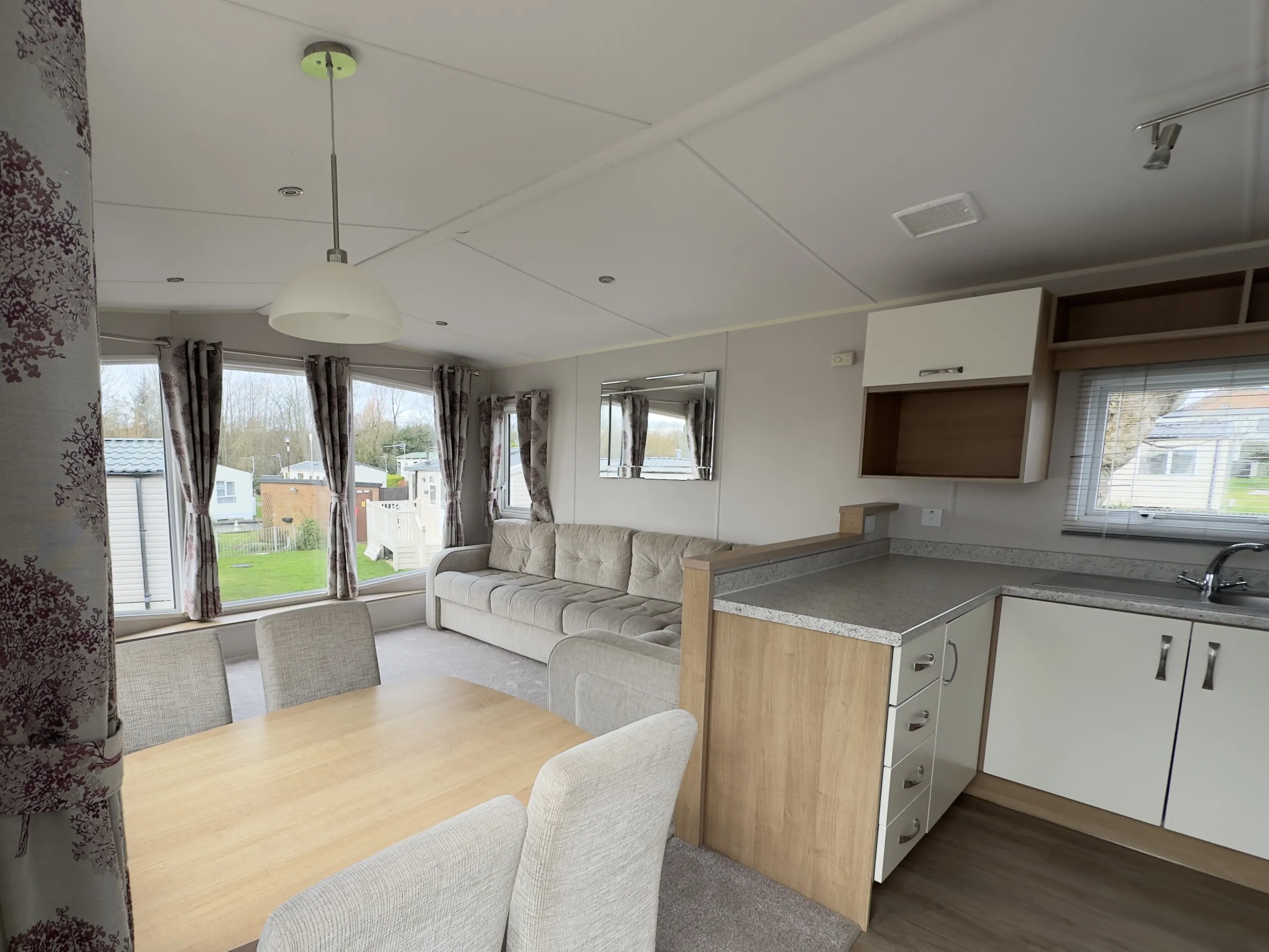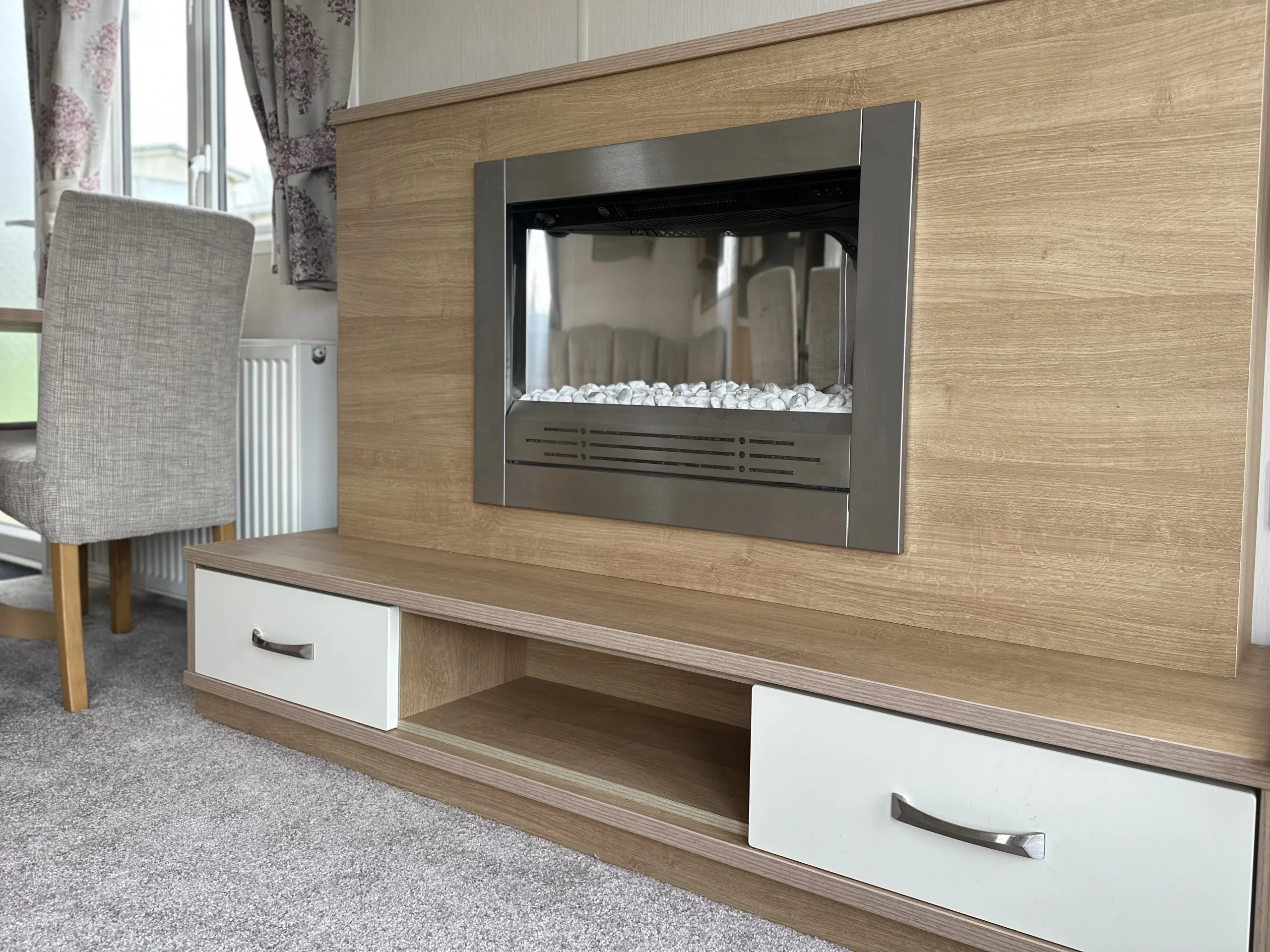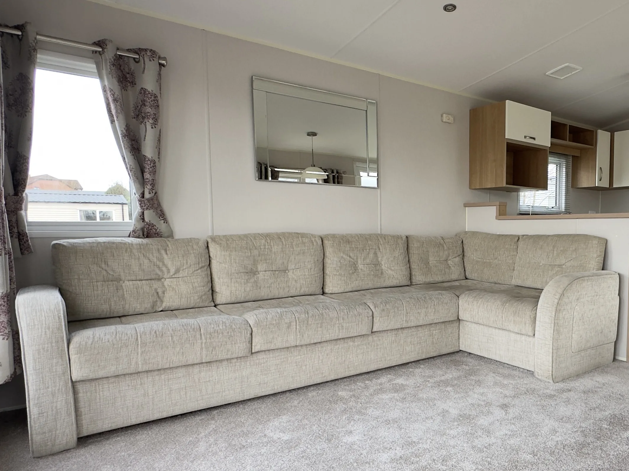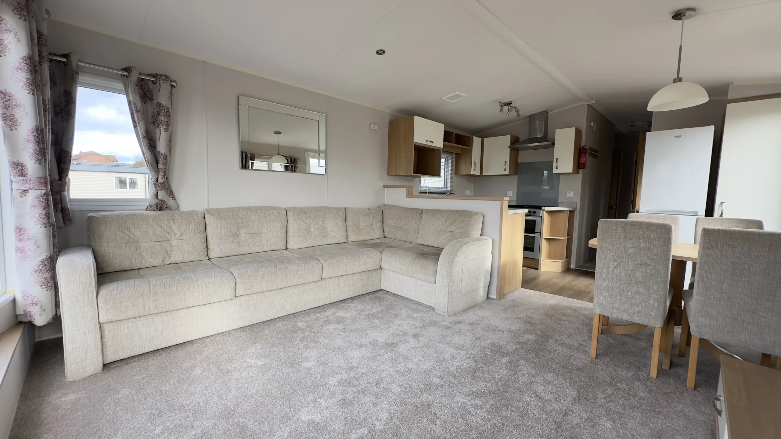 Designed to feel like a true home-from-home, its spacious layout features a comfortable wraparound sofa, a stylish feature fireplace, and neutral tones throughout, creating a relaxed and calming atmosphere.