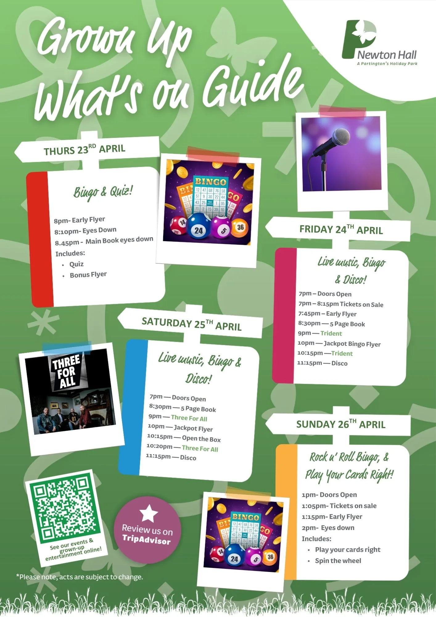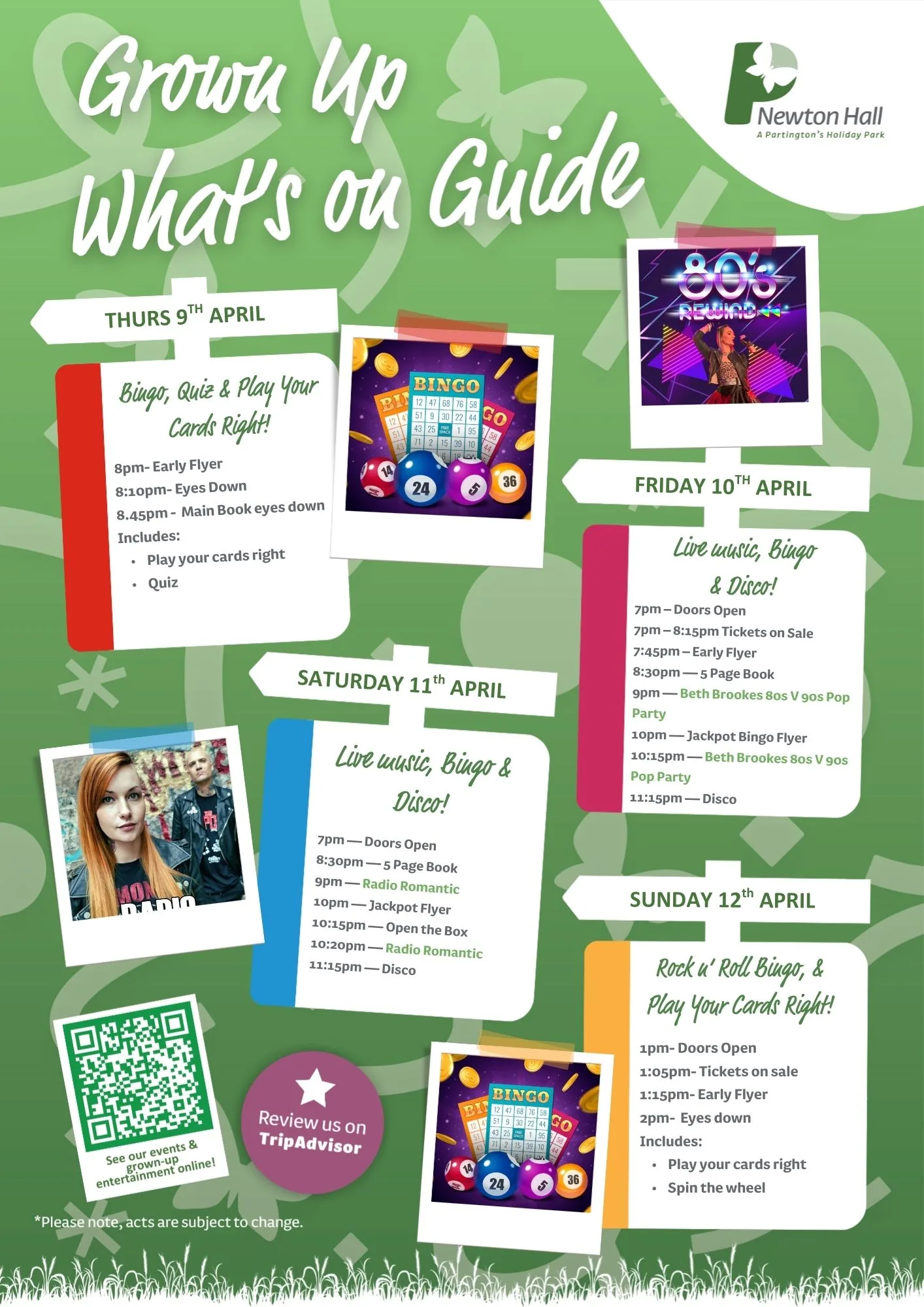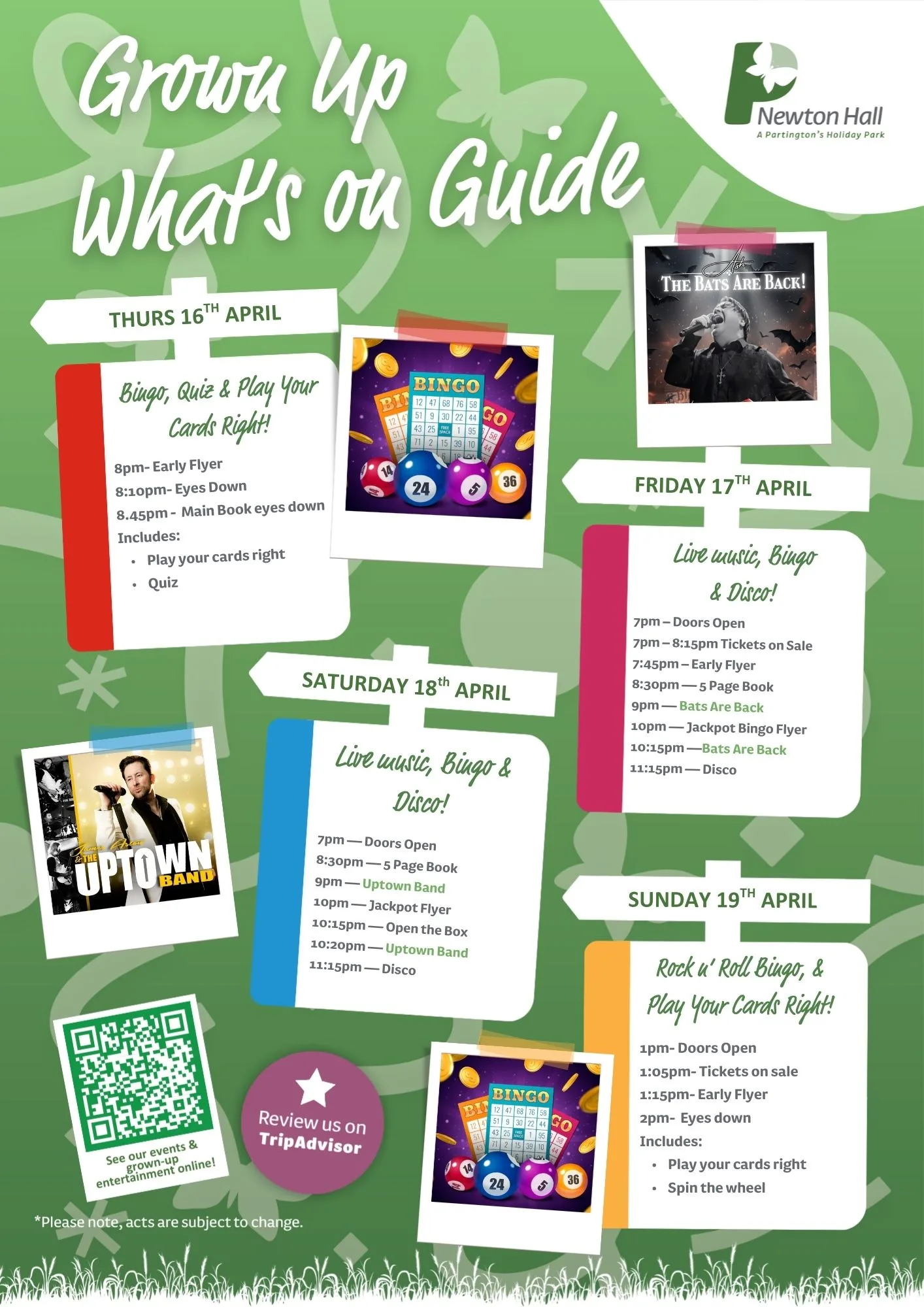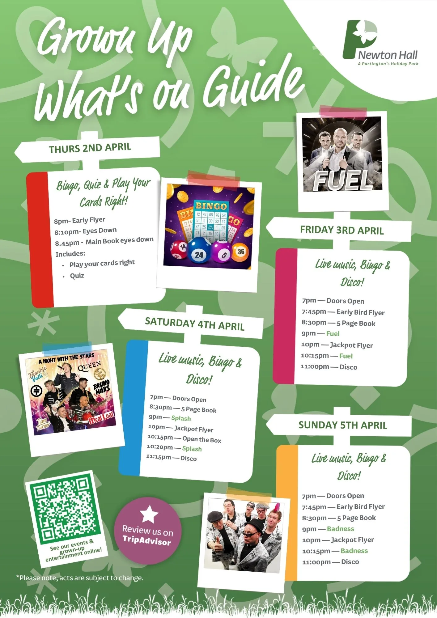 Here is your April 2026 entertainment at Newton Hall Holiday Park.