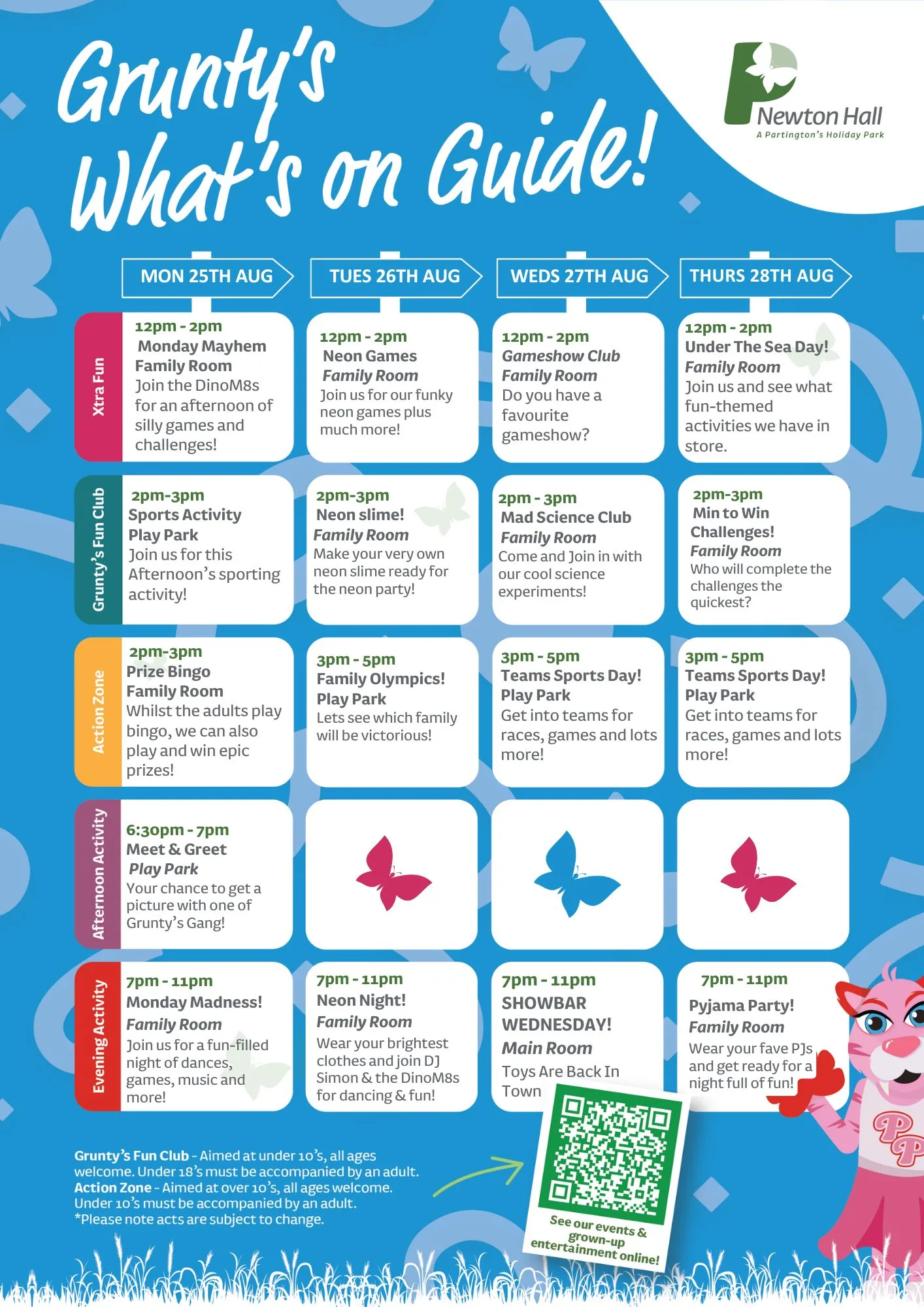 Posted July 24th, 2025 Here is your August 2025 entertainment at Newton Hall Holiday Park. Join us at Newton Hall Holiday Park for fantastic activities and entertainment, making sure you have the best Partington’s experience this month!