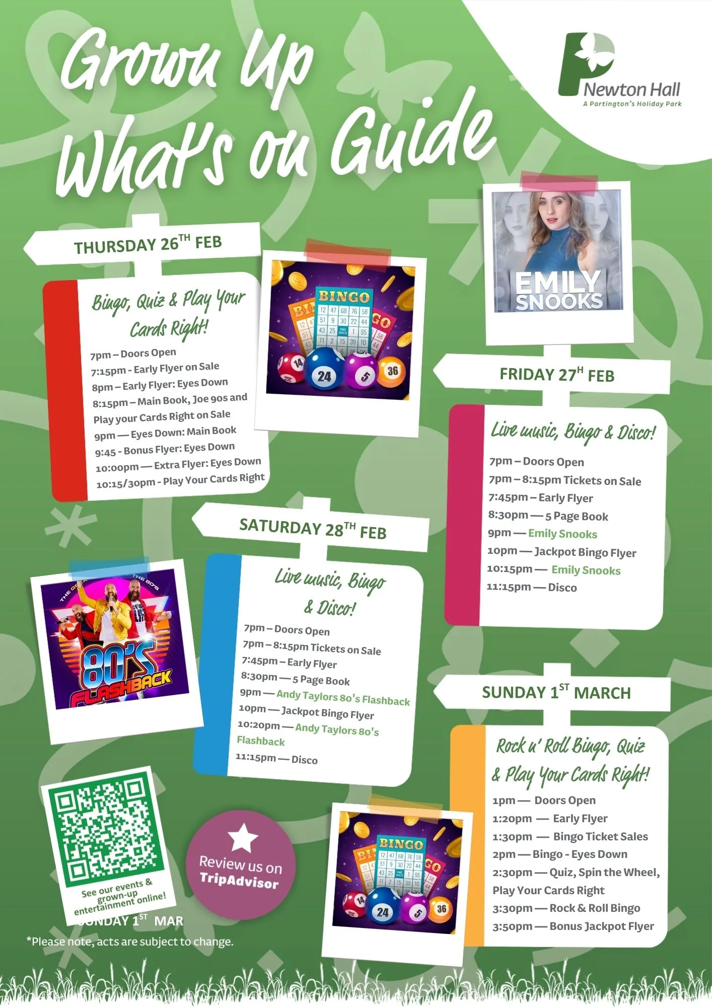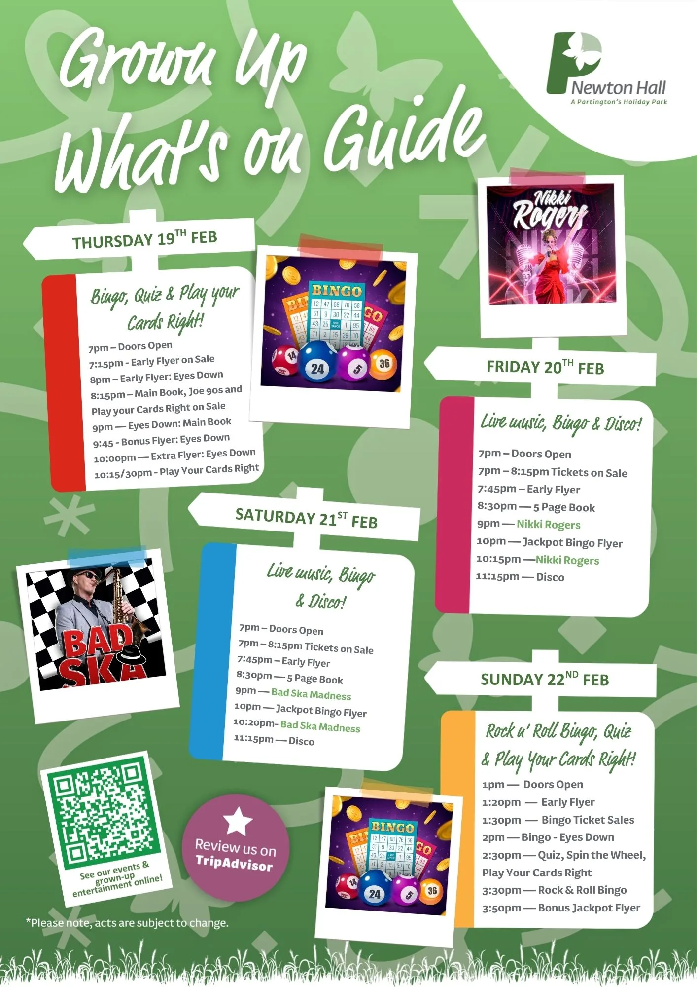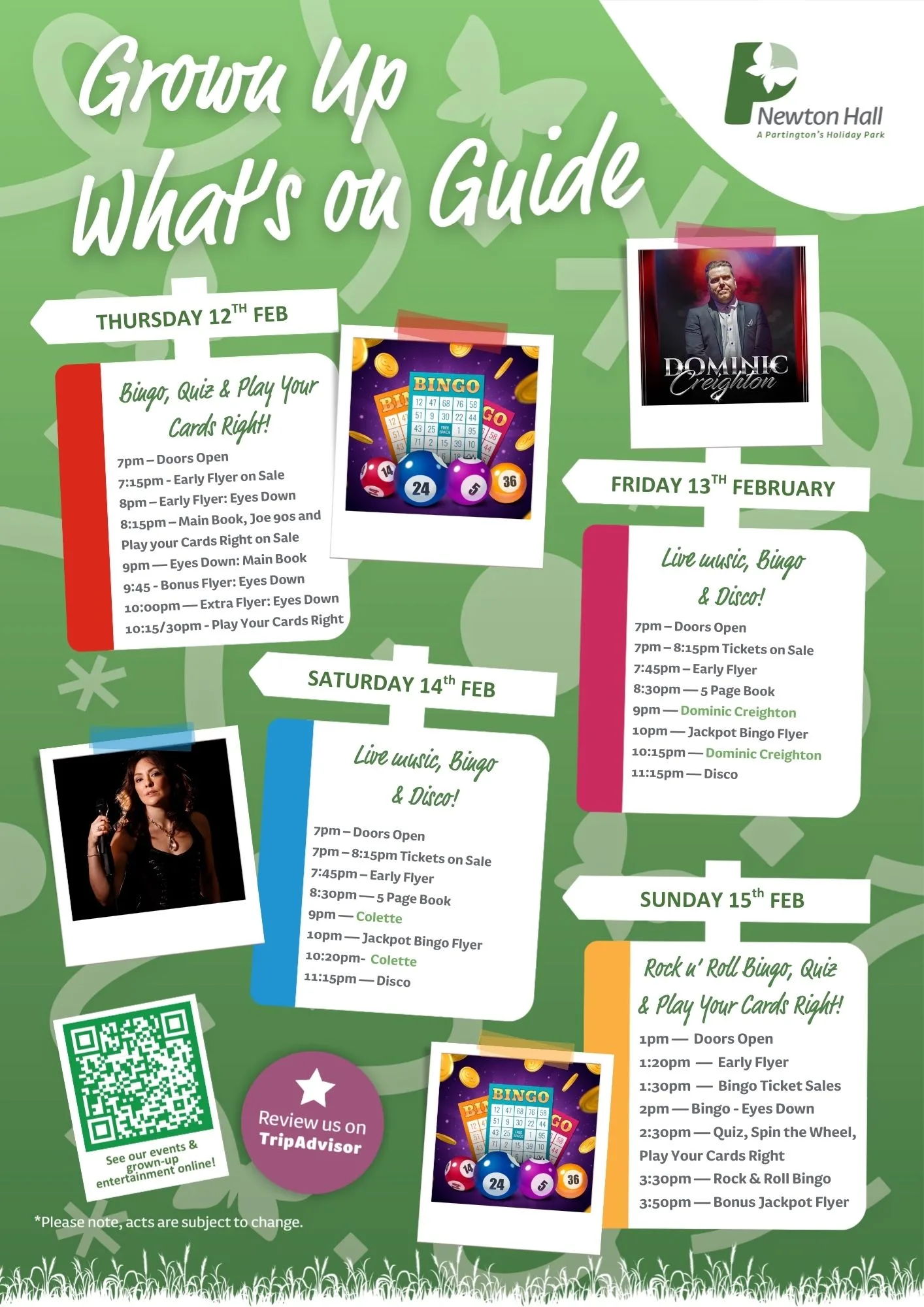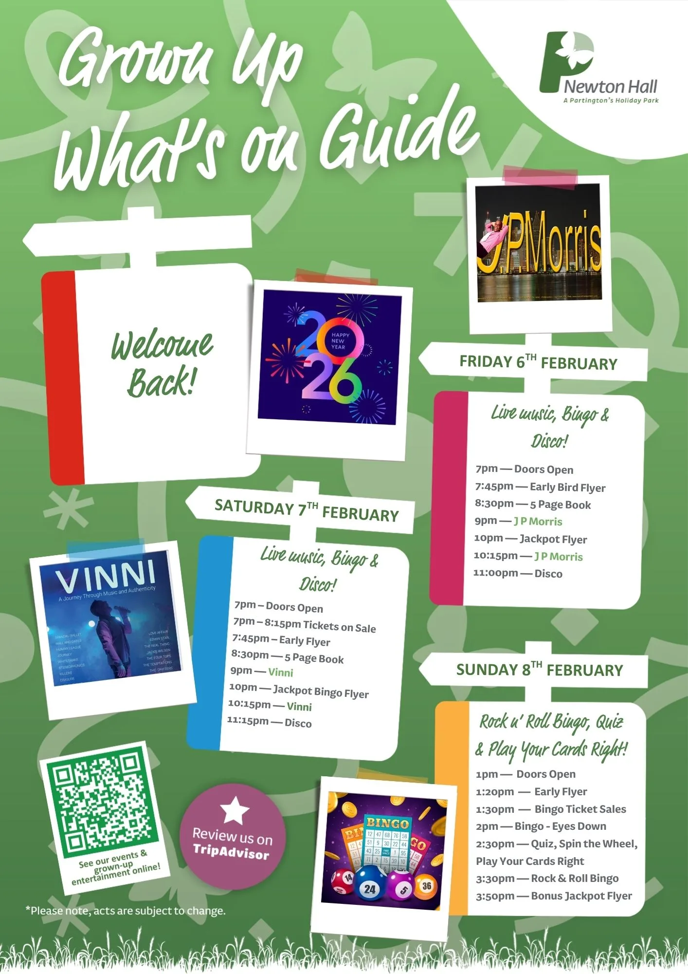 Here is your February 2026 entertainment at Newton Hall Holiday Park.