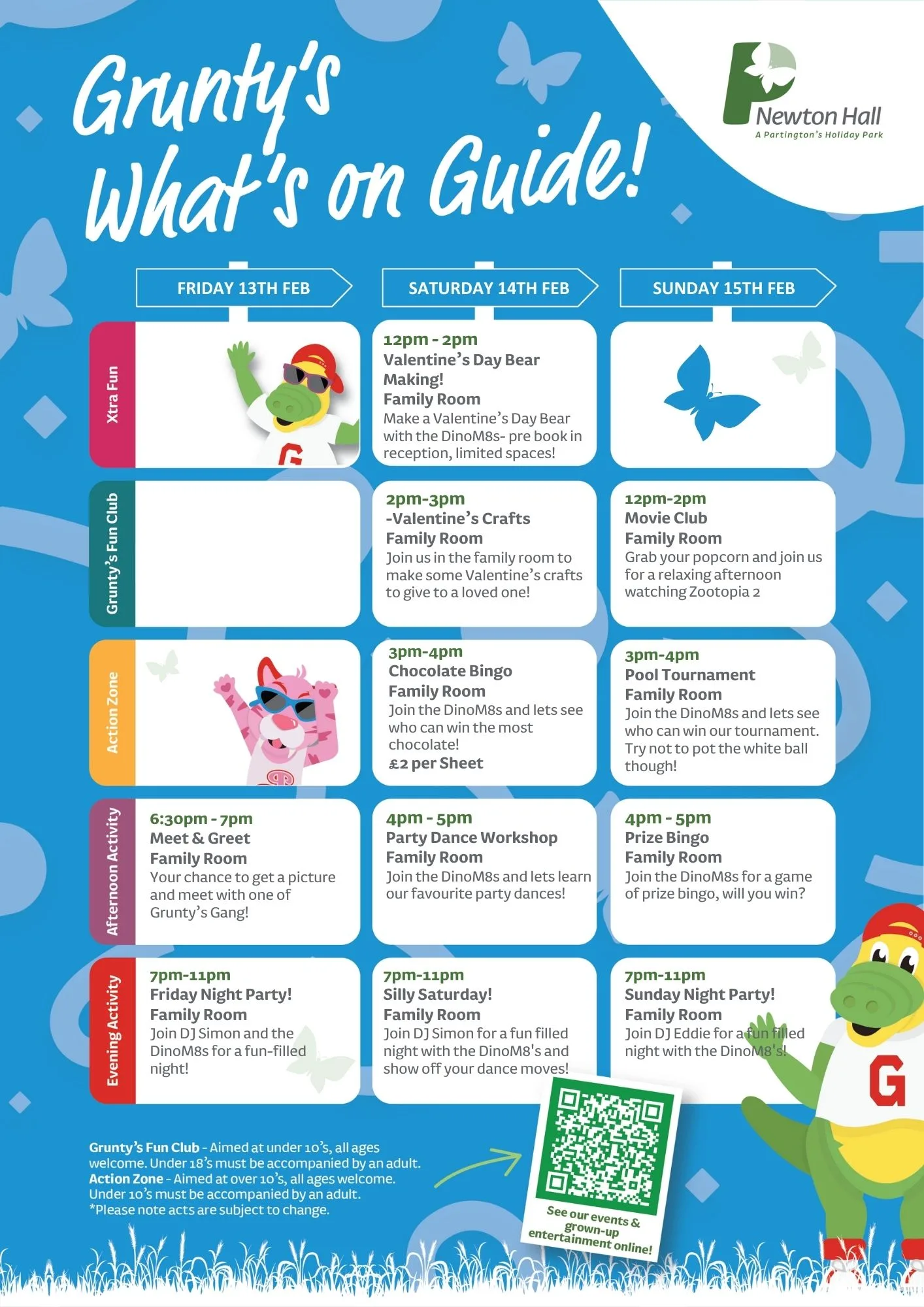 Join us at Newton Hall Holiday Park this February for a packed programme of entertainment and activities! From family fun to evening shows, there’s something for everyone to enjoy during your Partington’s stay.