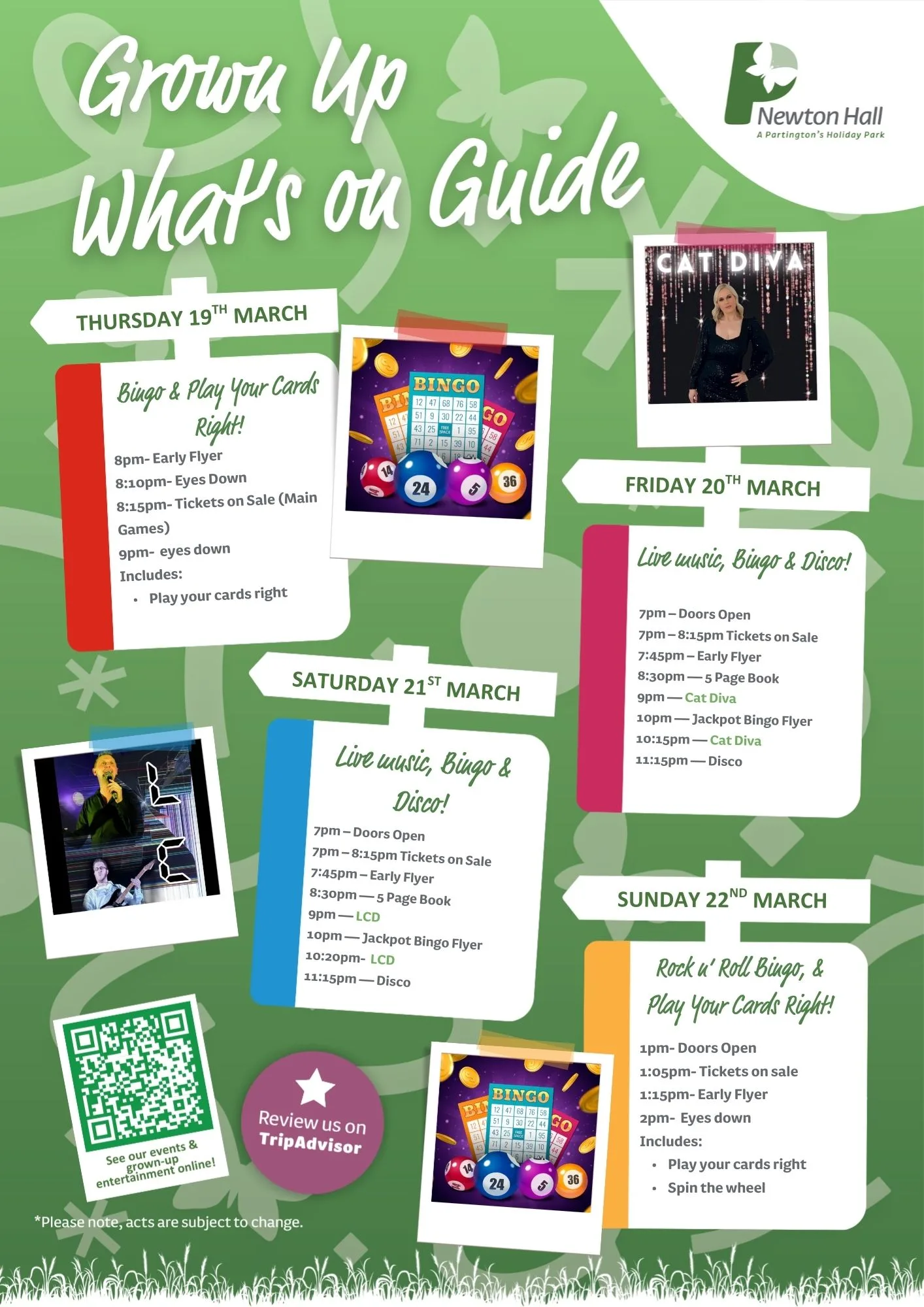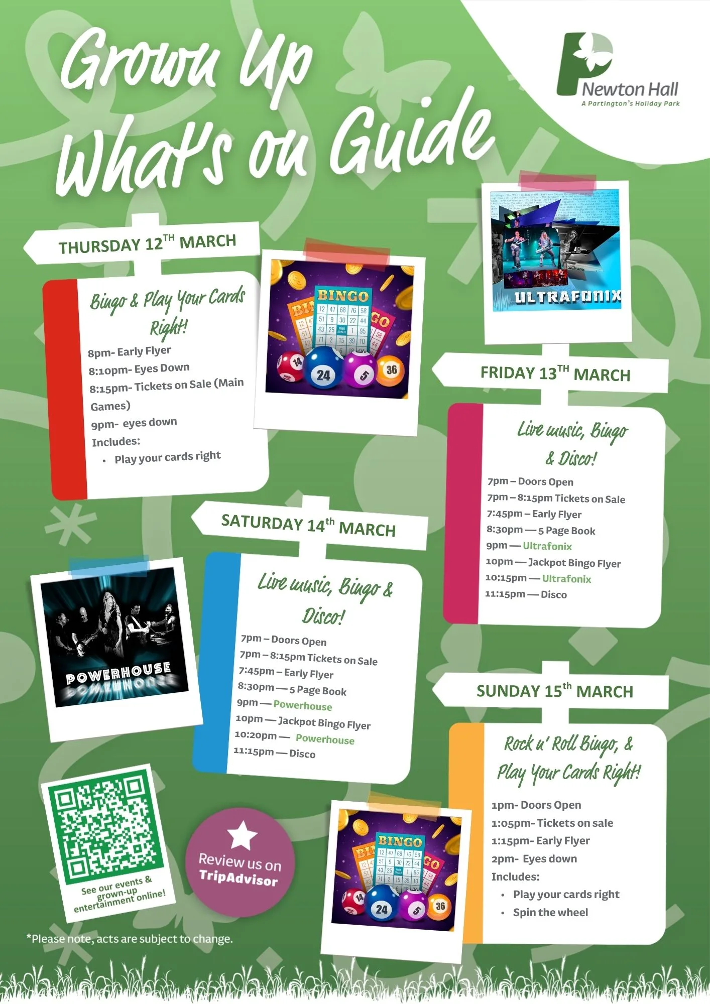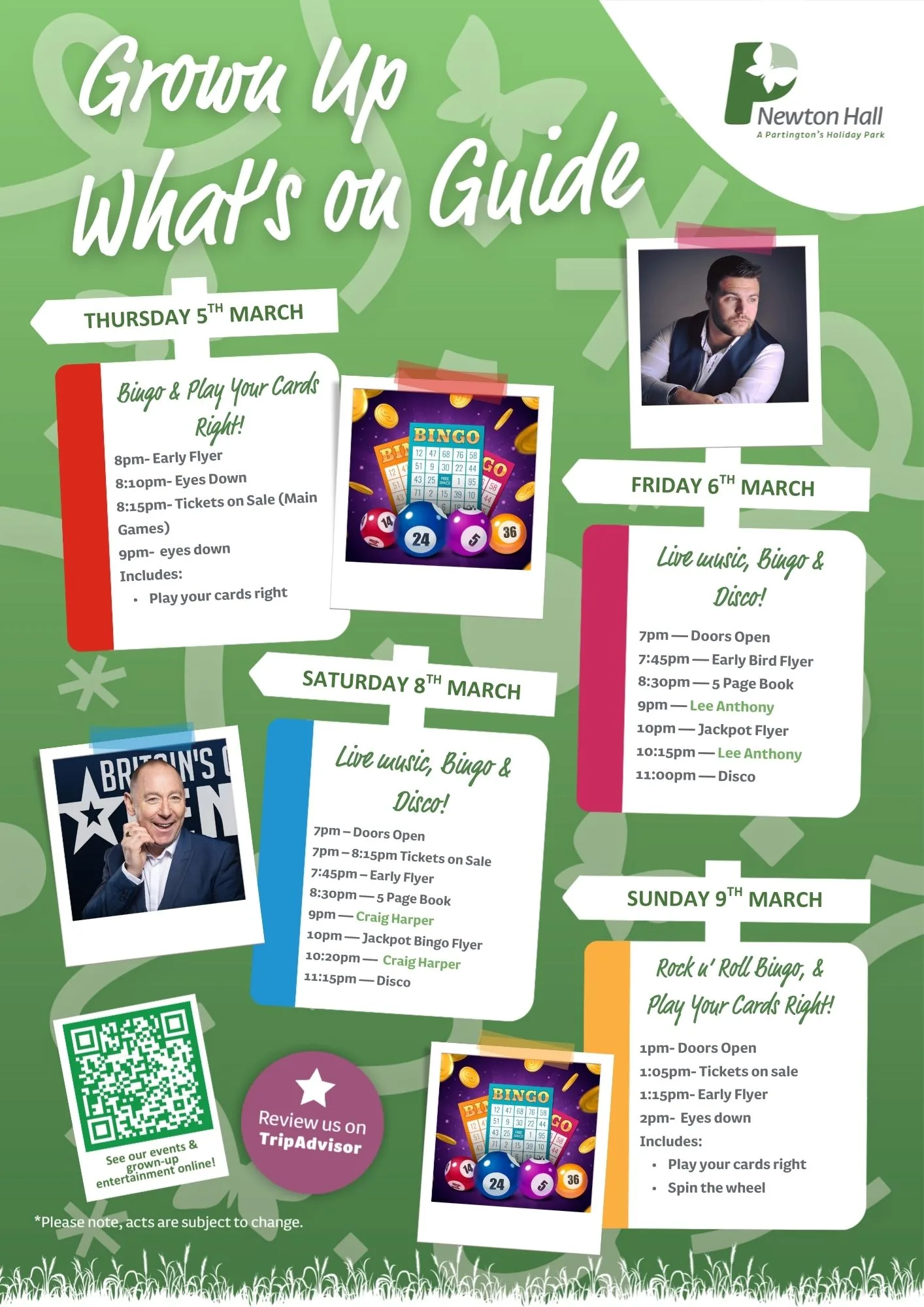 Here is your March 2026 entertainment at Newton Hall Holiday Park.