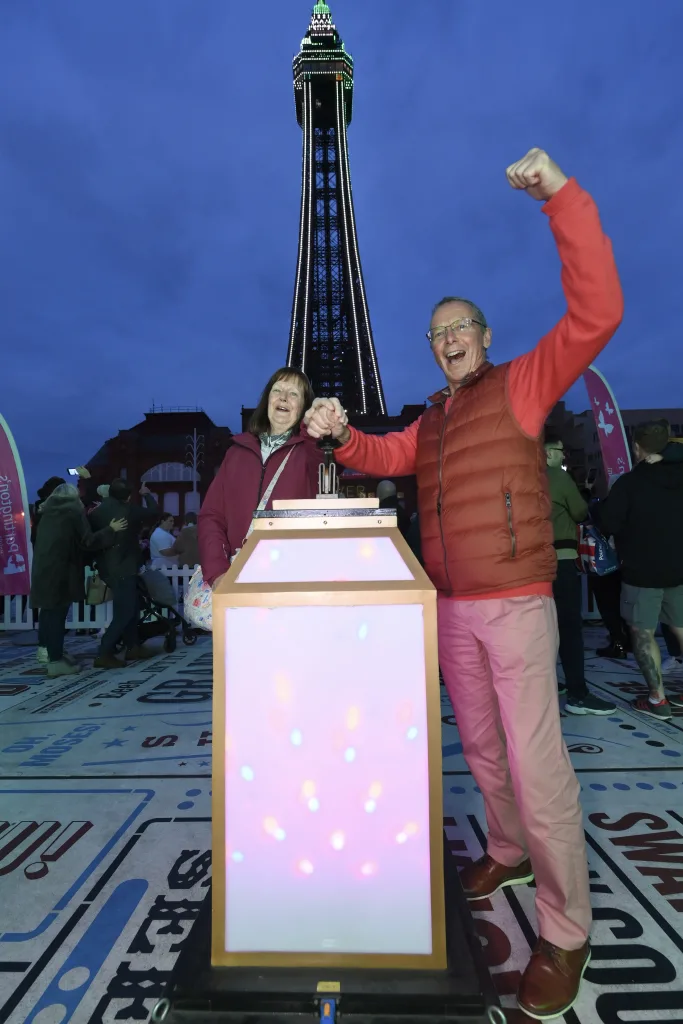 The highlight of the night was, of course, the big moment on Blackpool Promenade. Our winning duo, Michael and Lynne from Tarn House Holiday Park in Skipton, were randomly chosen from all of the entries to have the incredible honour of pulling the switch. With one flick, they lit up the iconic Blackpool Tower and six miles of Blackpool Illuminations in front of hundreds of excited onlookers – a memory we’re sure they’ll never forget!