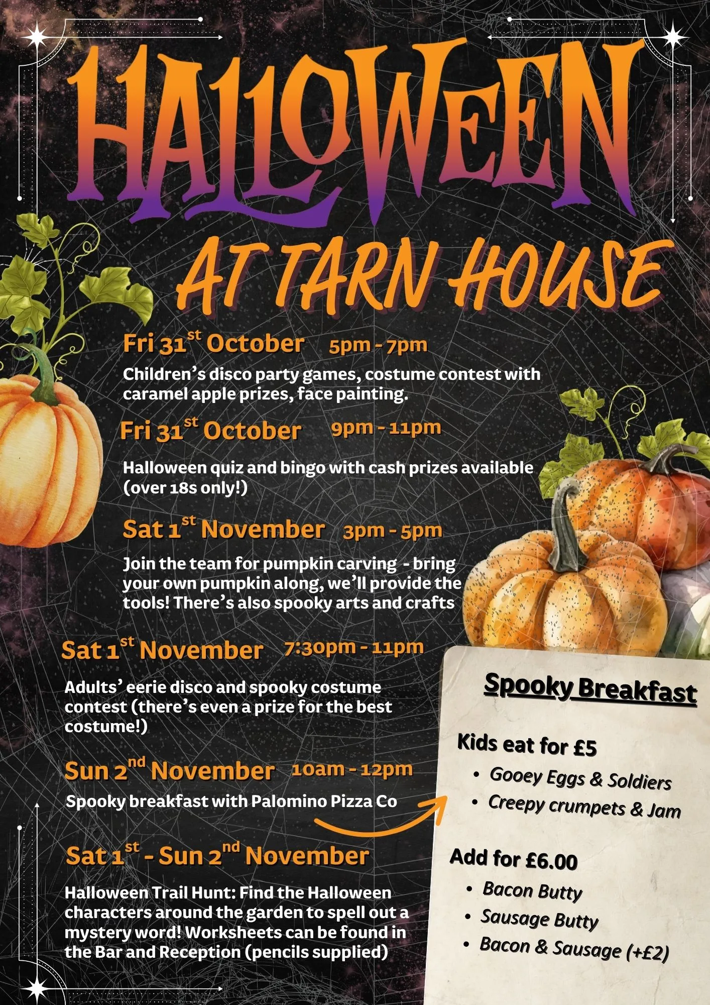 Get ready for a frightfully fun day at Tarn House this Halloween! Join us on Friday 31st October– Sunday 2nd November for a weekend full of spooky celebrations for the whole family.