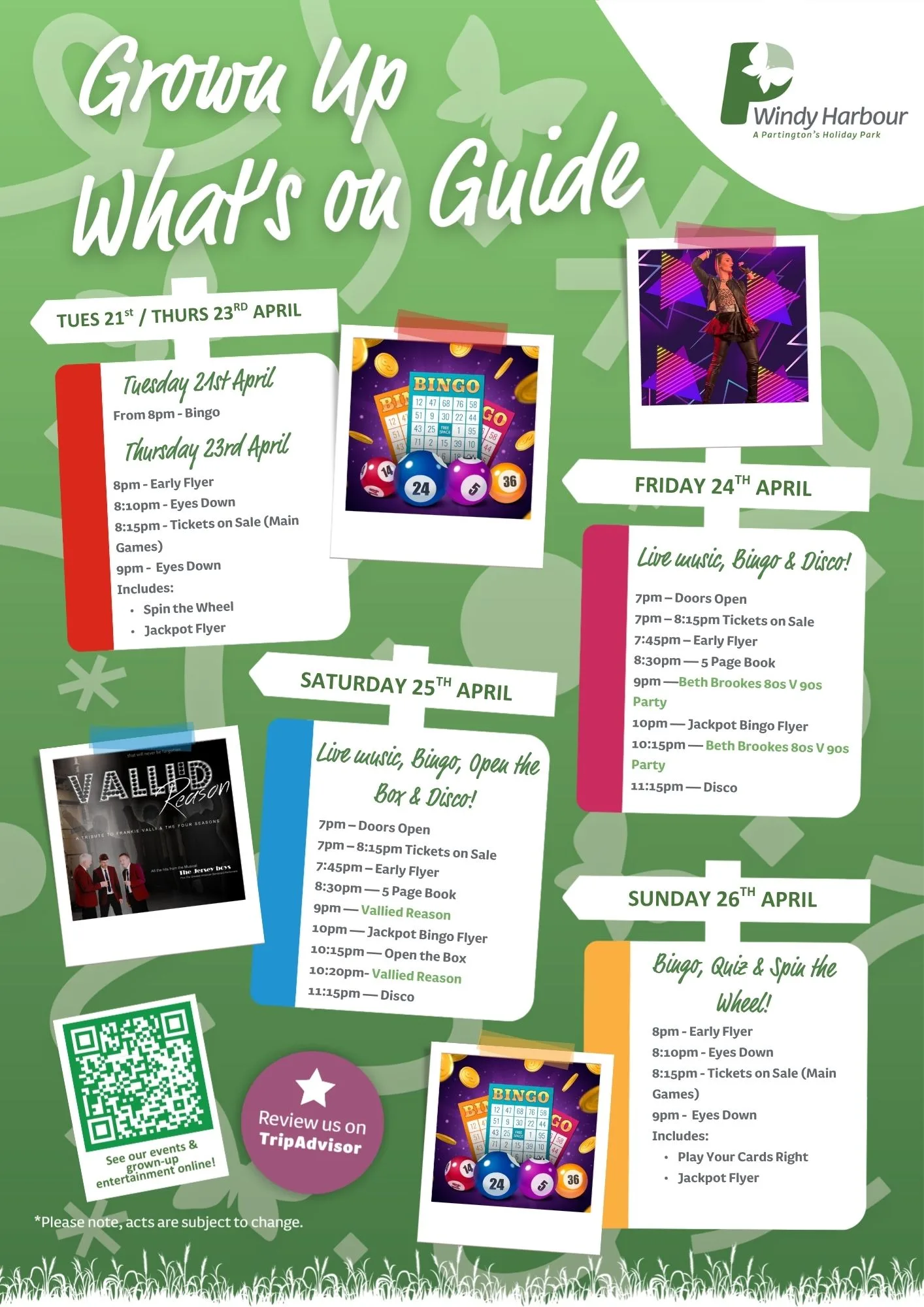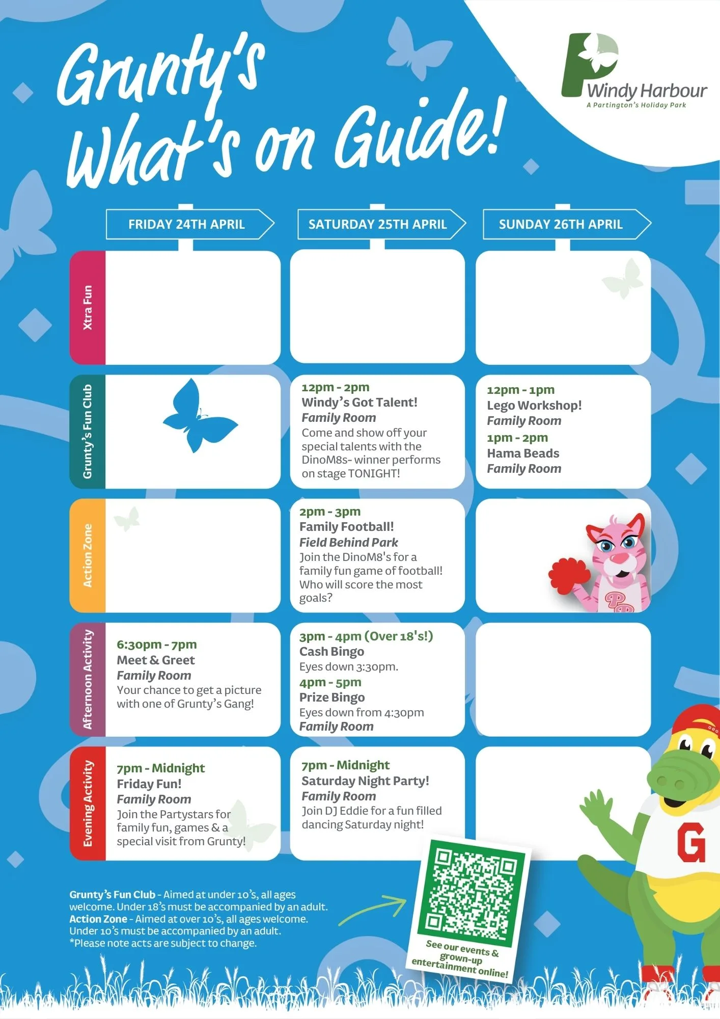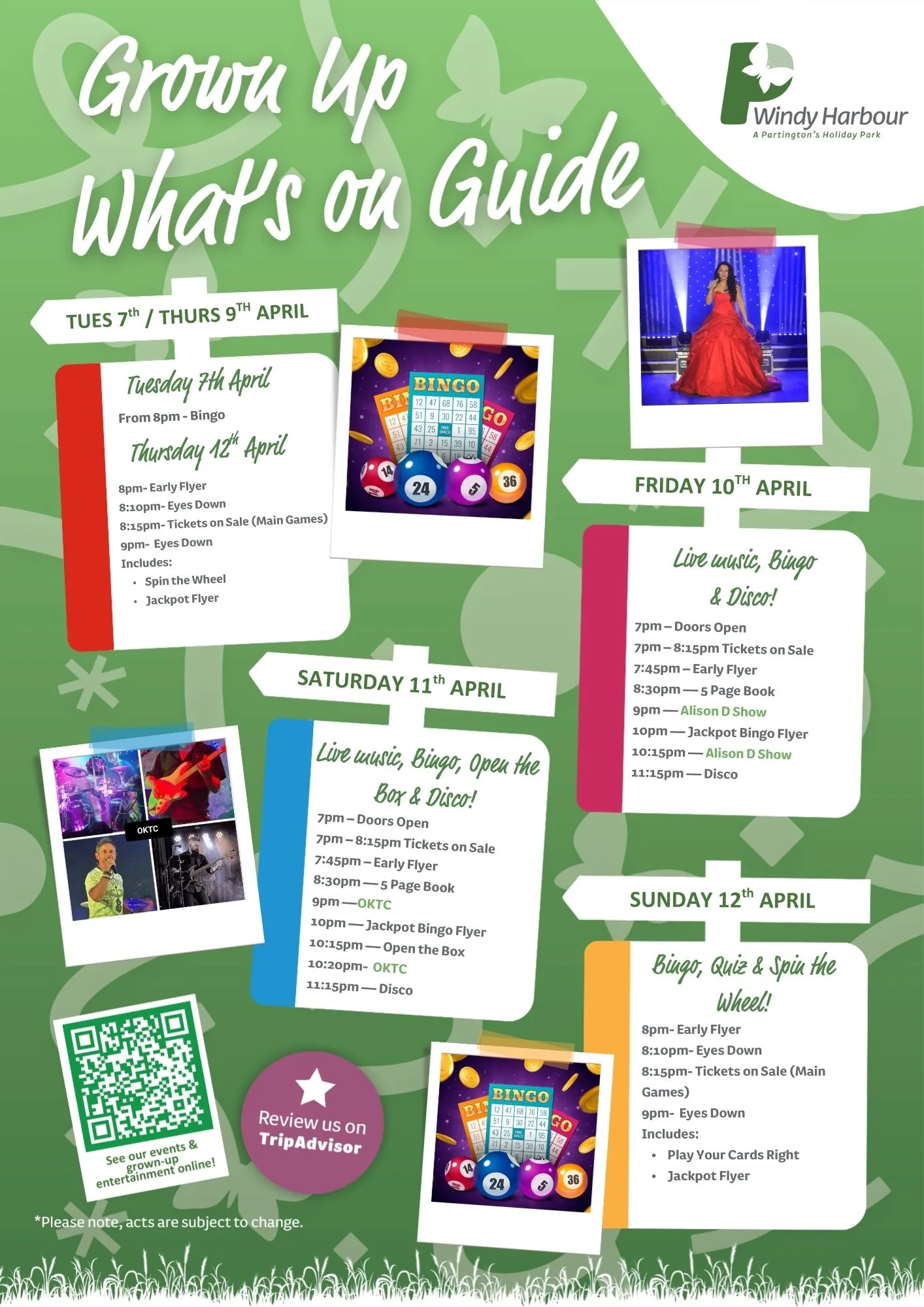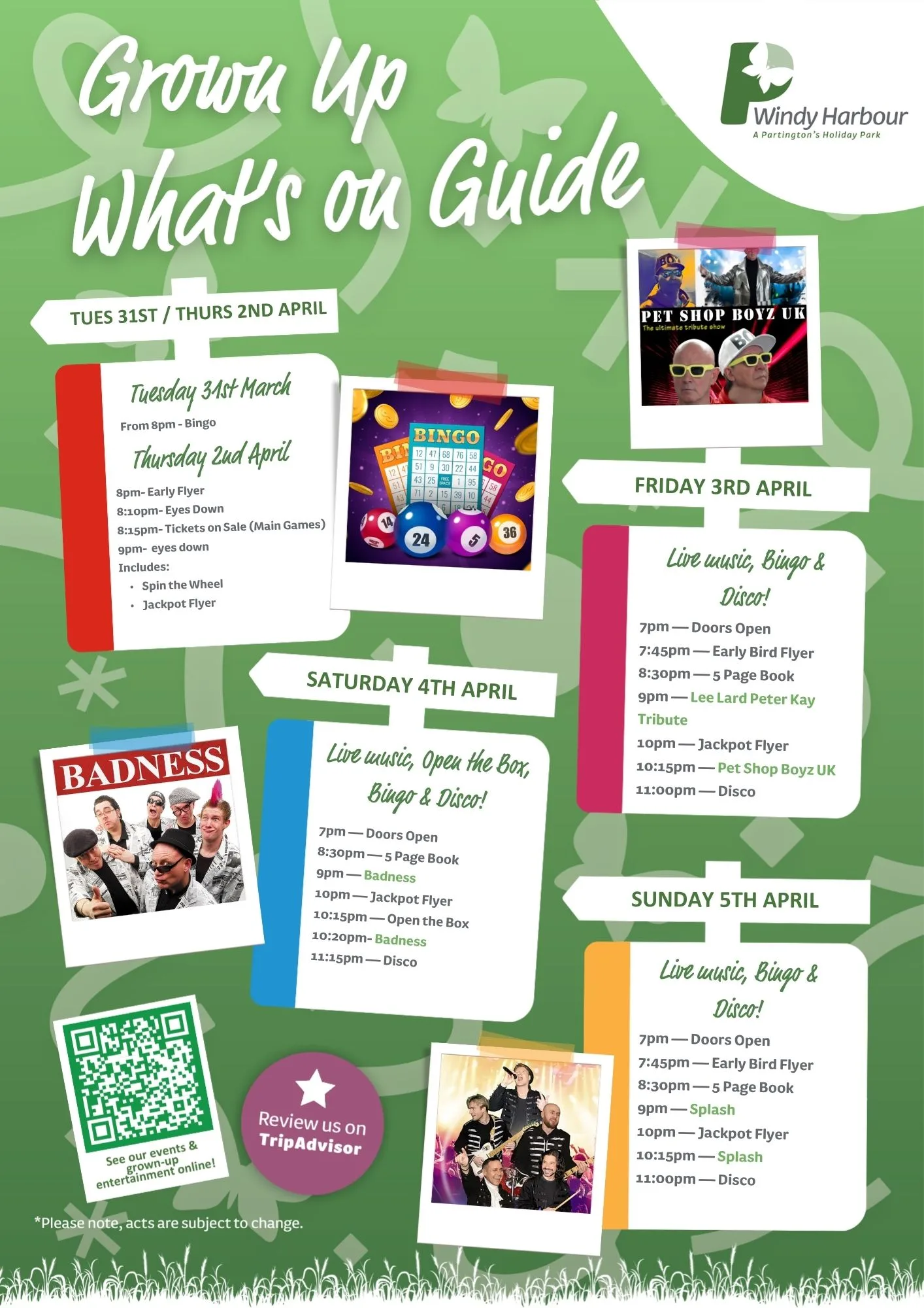 Join us at Windy Harbour Holiday Park this April for a packed programme of entertainment and activities! From family fun to evening shows, there’s something for everyone to enjoy during your Partington’s stay.