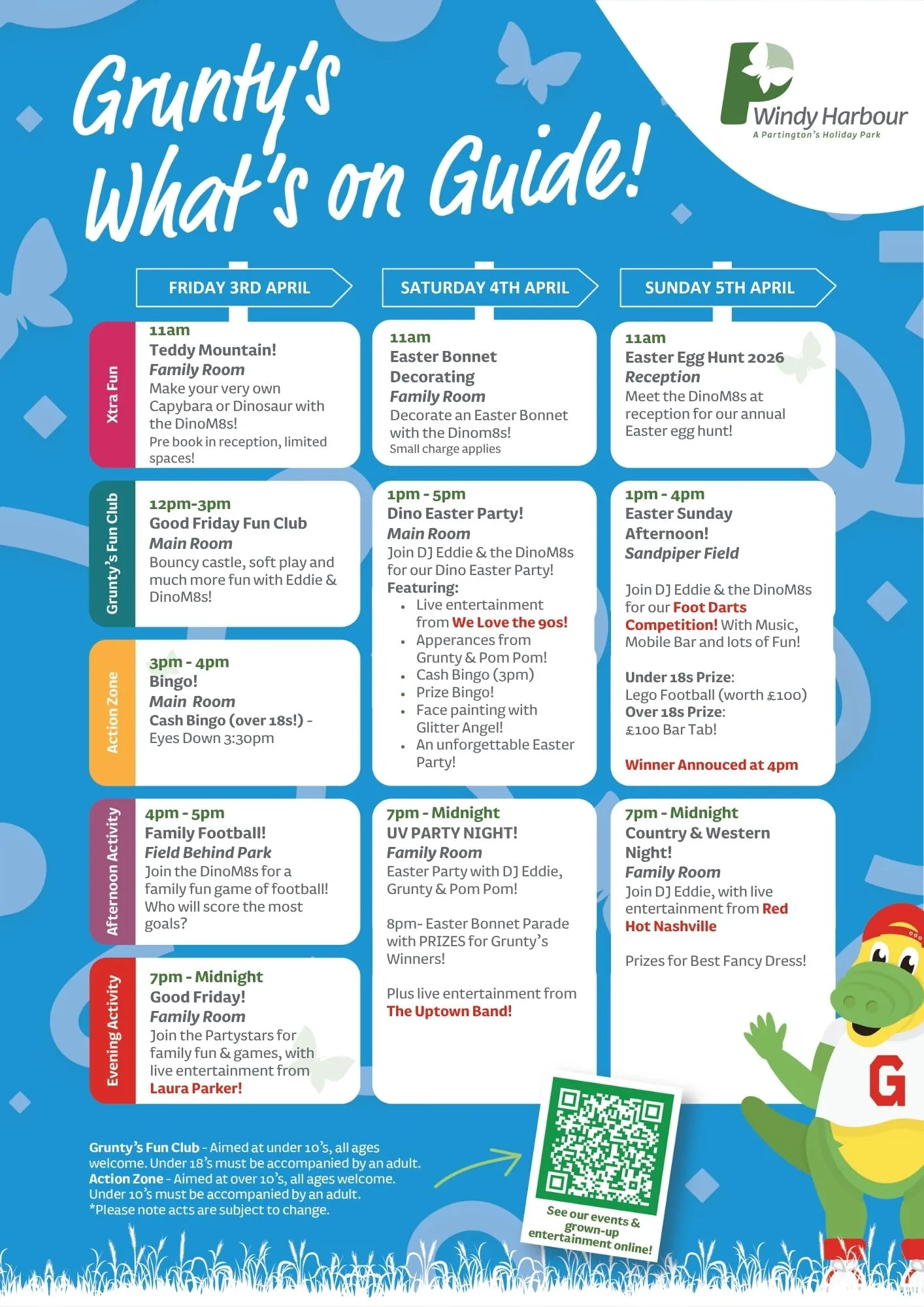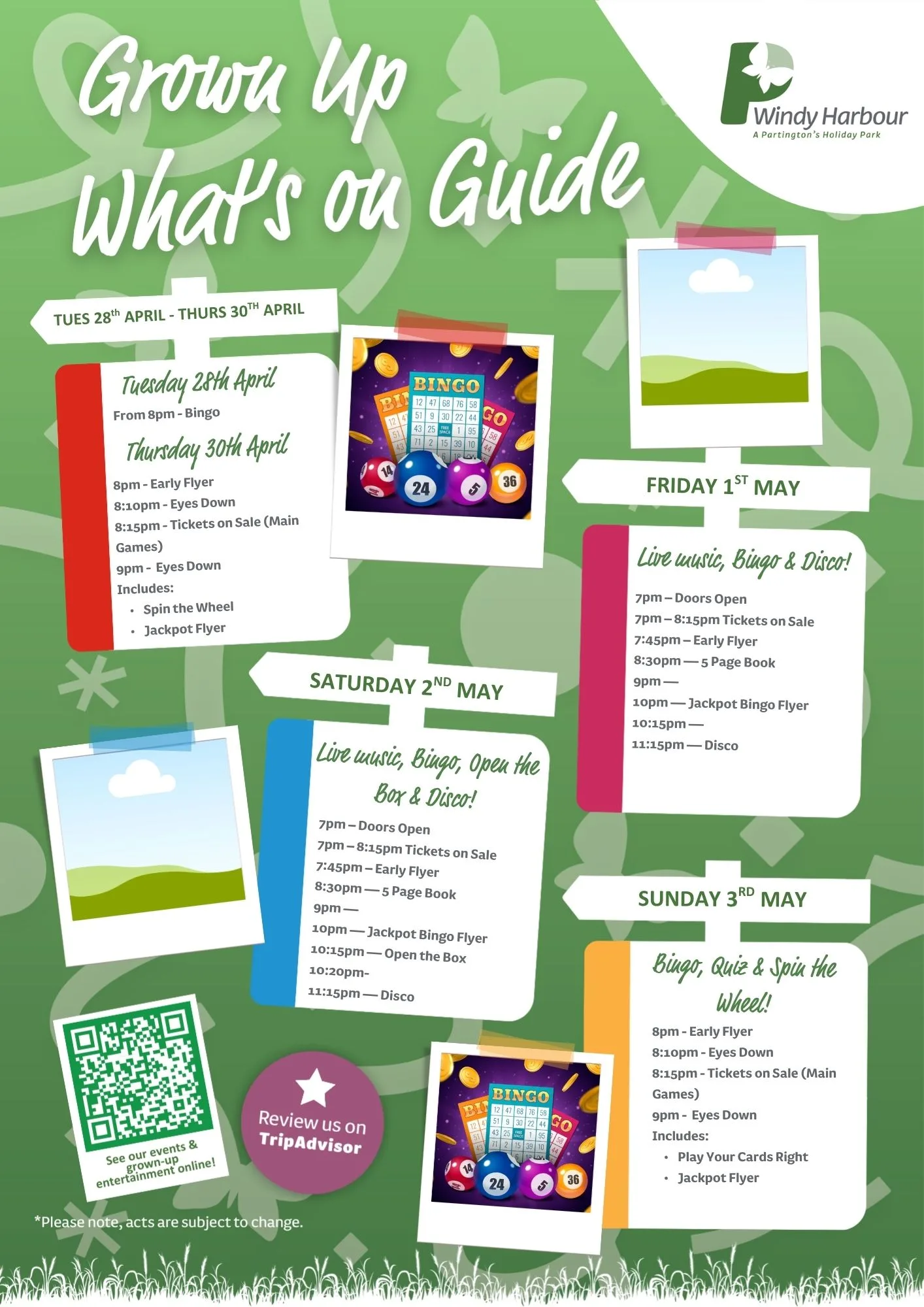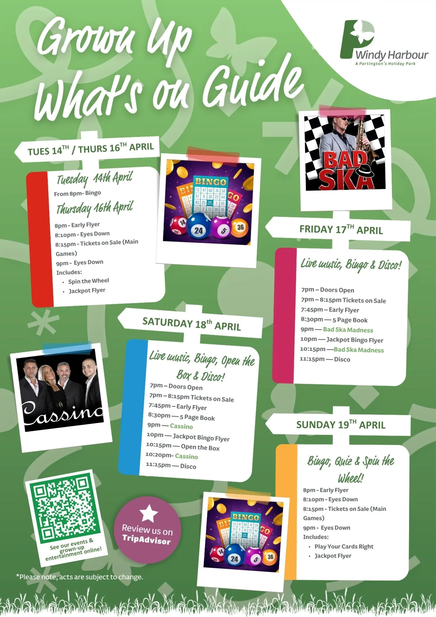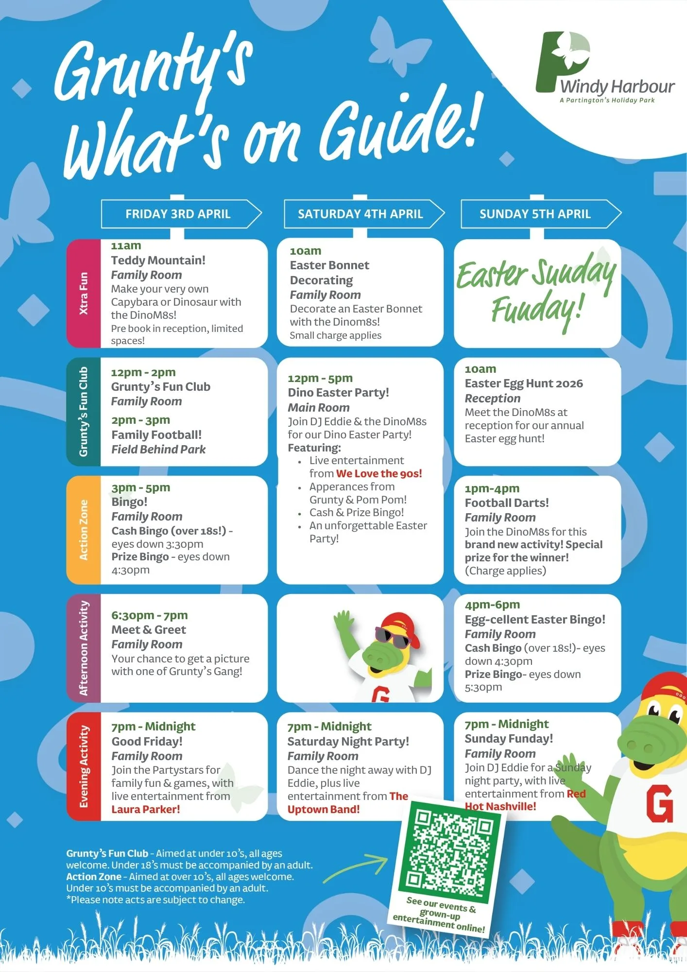 Join us at Windy Harbour Holiday Park this April for a packed programme of entertainment and activities! From family fun to evening shows, there’s something for everyone to enjoy during your Partington’s stay.