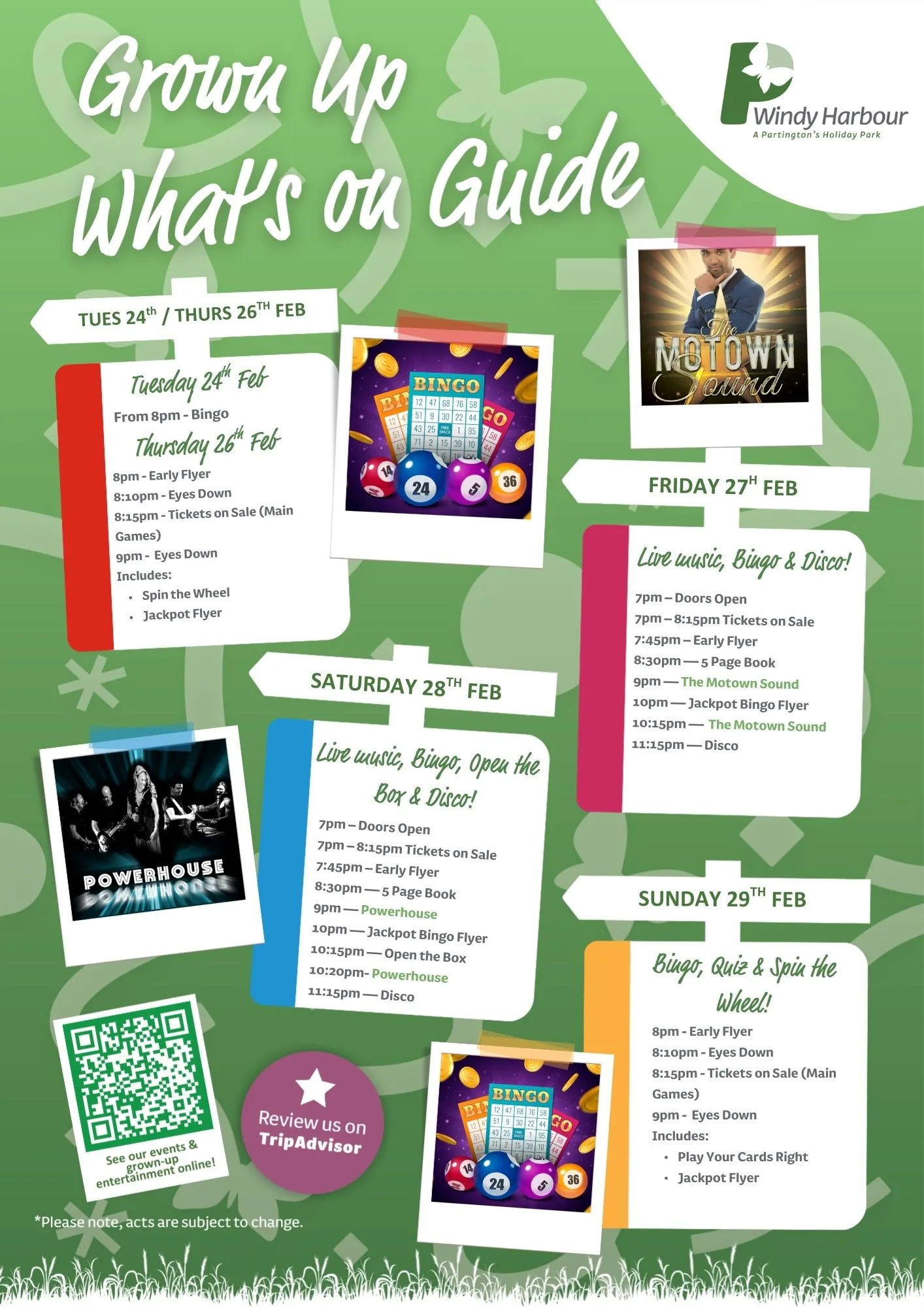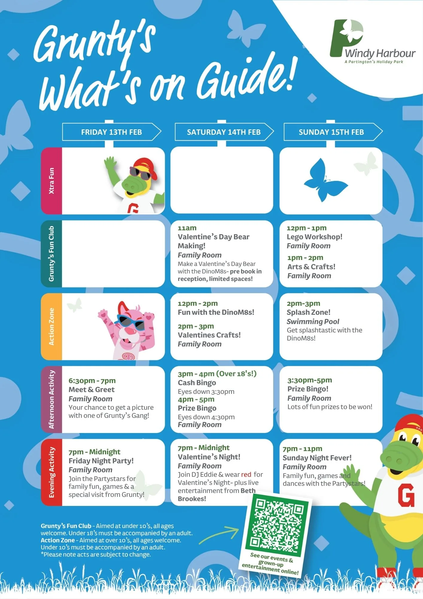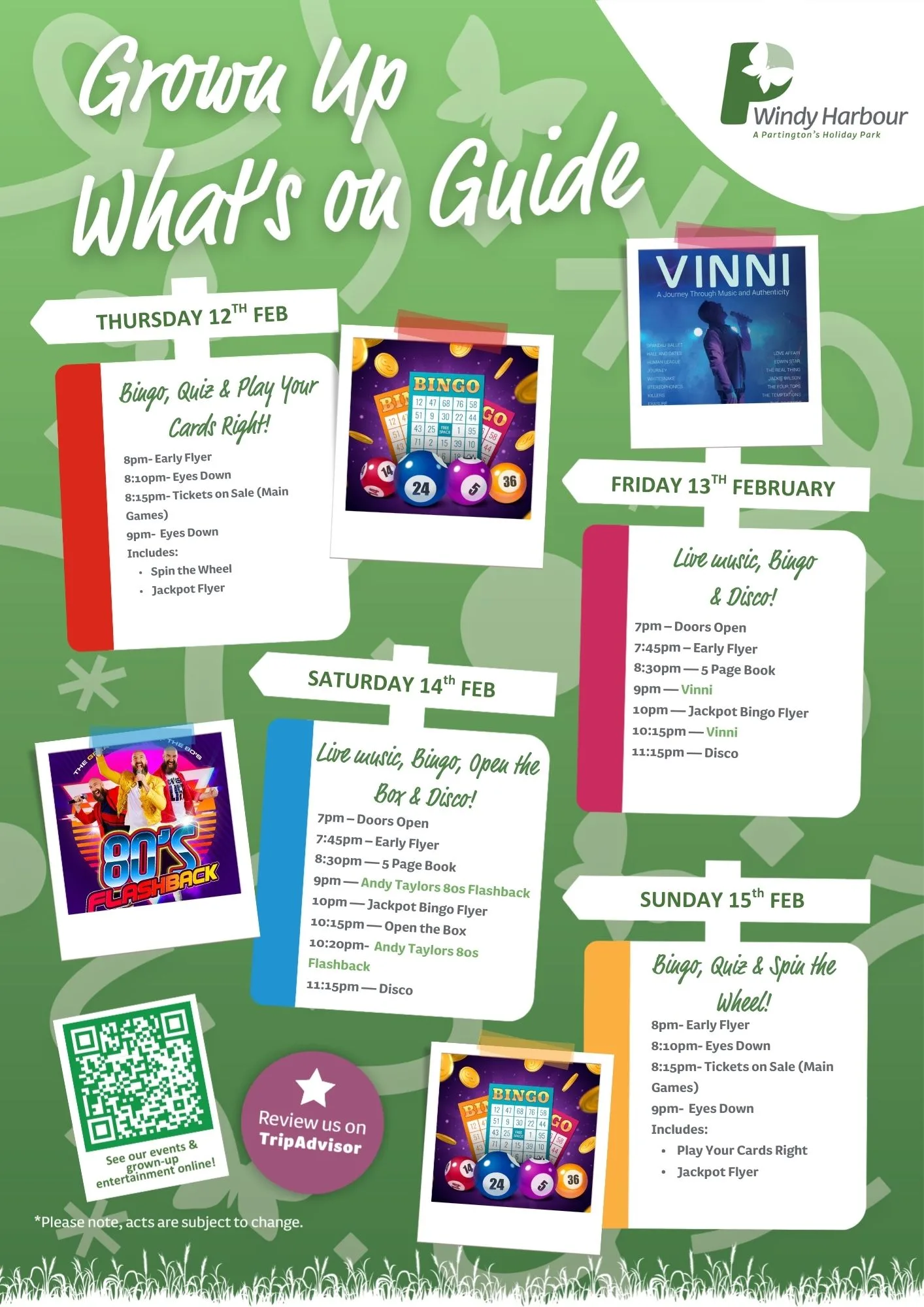 Join us at Windy Harbour Holiday Park this February for a packed programme of entertainment and activities! From family fun to evening shows, there’s something for everyone to enjoy during your Partington’s stay.