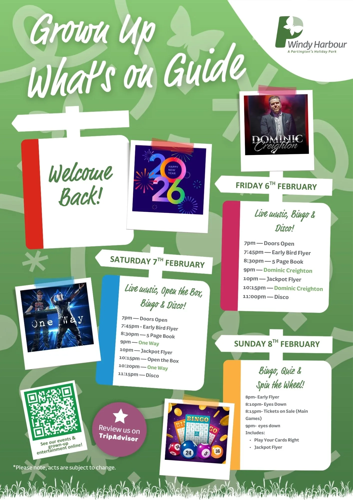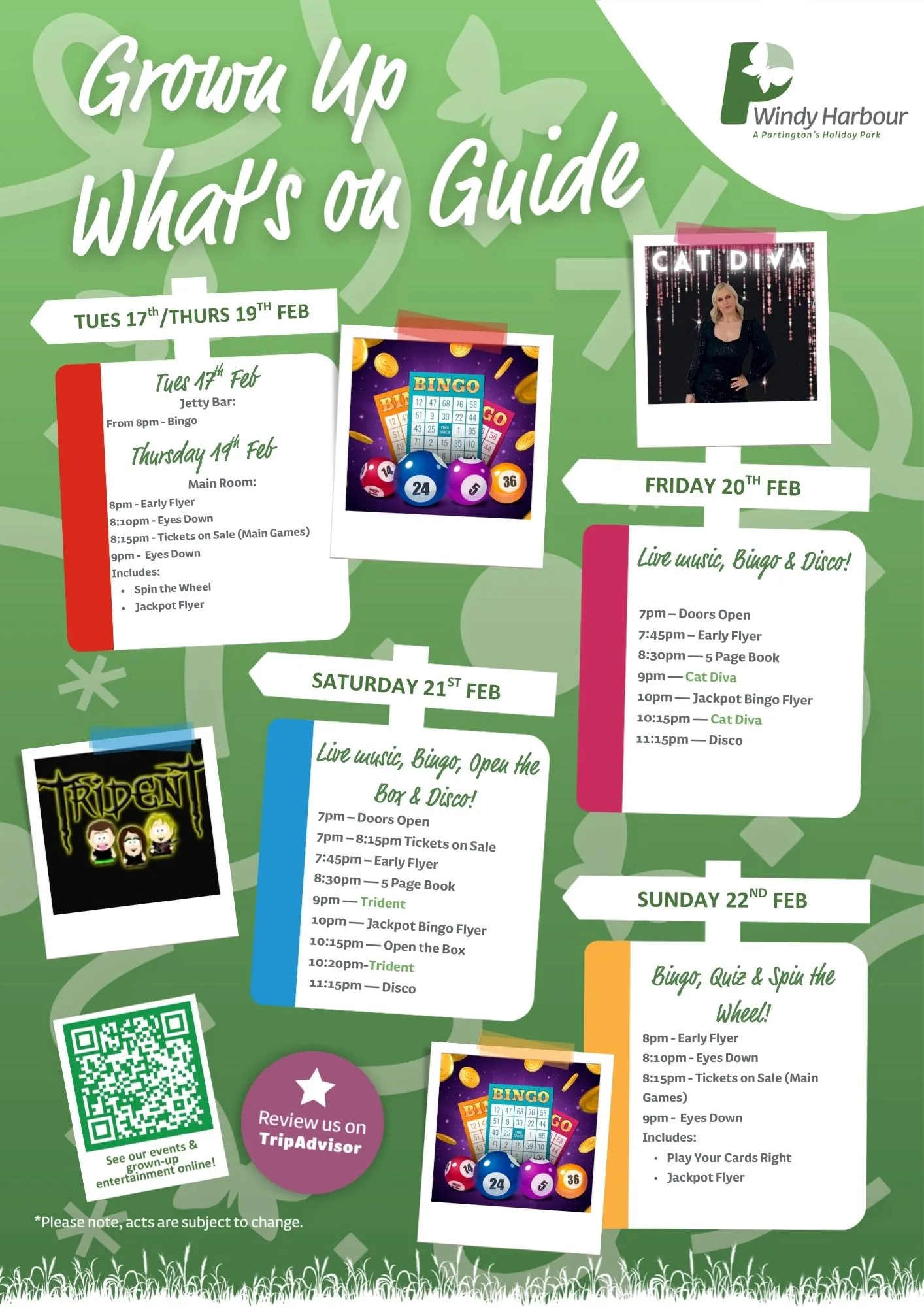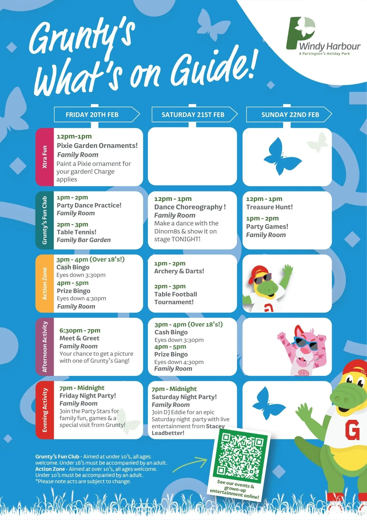 Join us at Windy Harbour Holiday Park this February for a packed programme of entertainment and activities! From family fun to evening shows, there’s something for everyone to enjoy during your Partington’s stay.