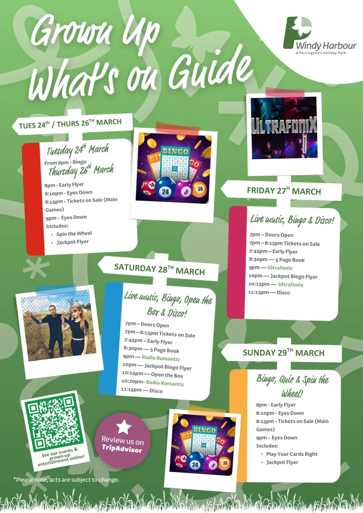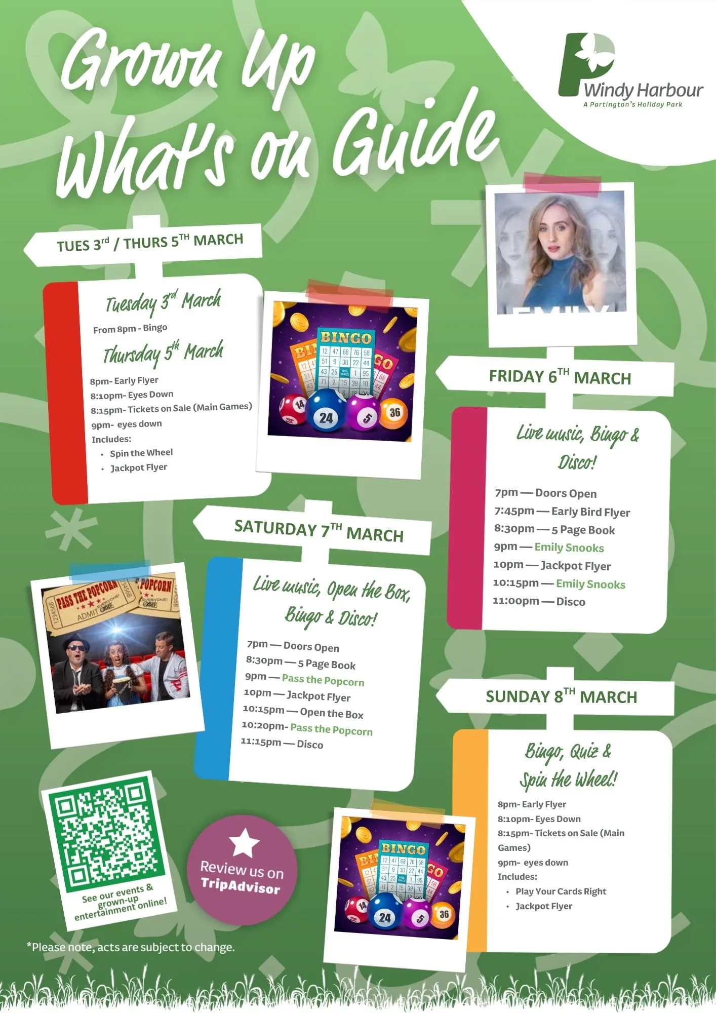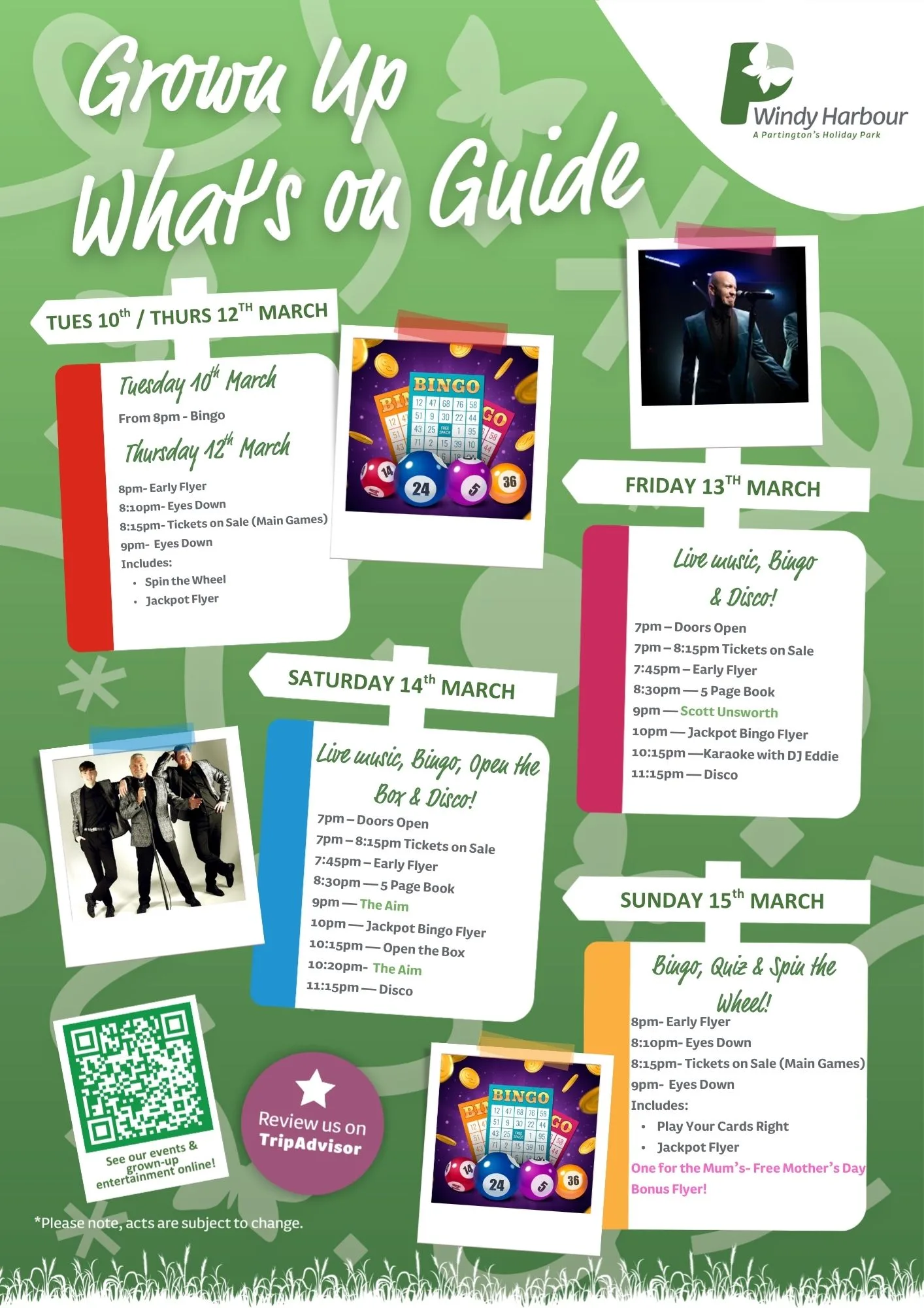 Join us at Windy Harbour Holiday Park this March for a packed programme of entertainment and activities! From family fun to evening shows, there’s something for everyone to enjoy during your Partington’s stay.