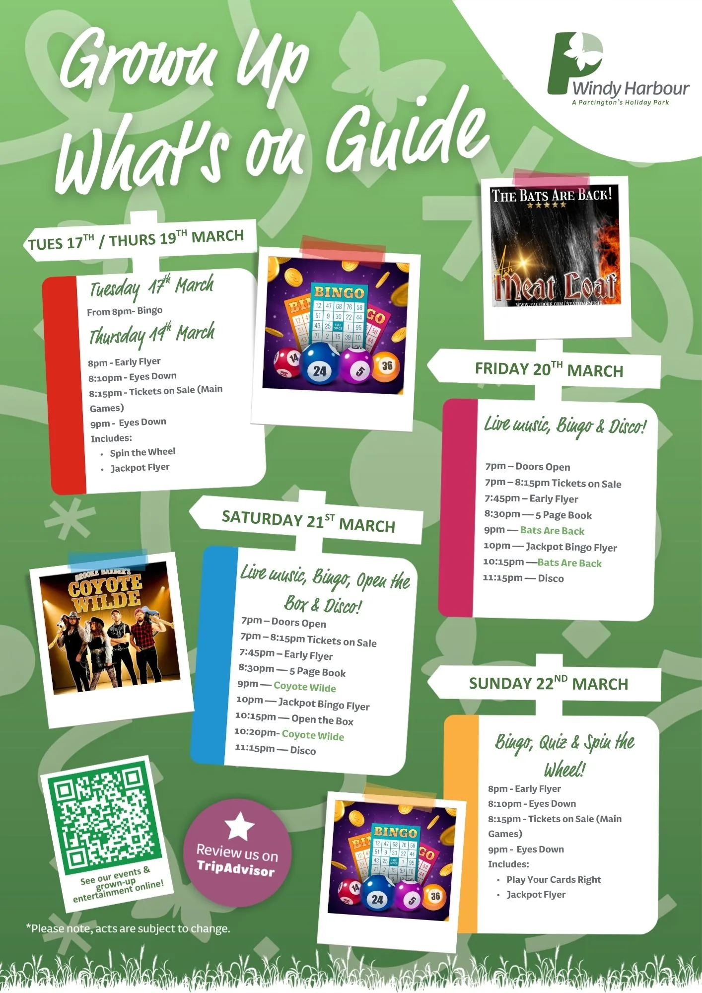 Here is your March 2026 entertainment at Windy Harbour Holiday Park.
