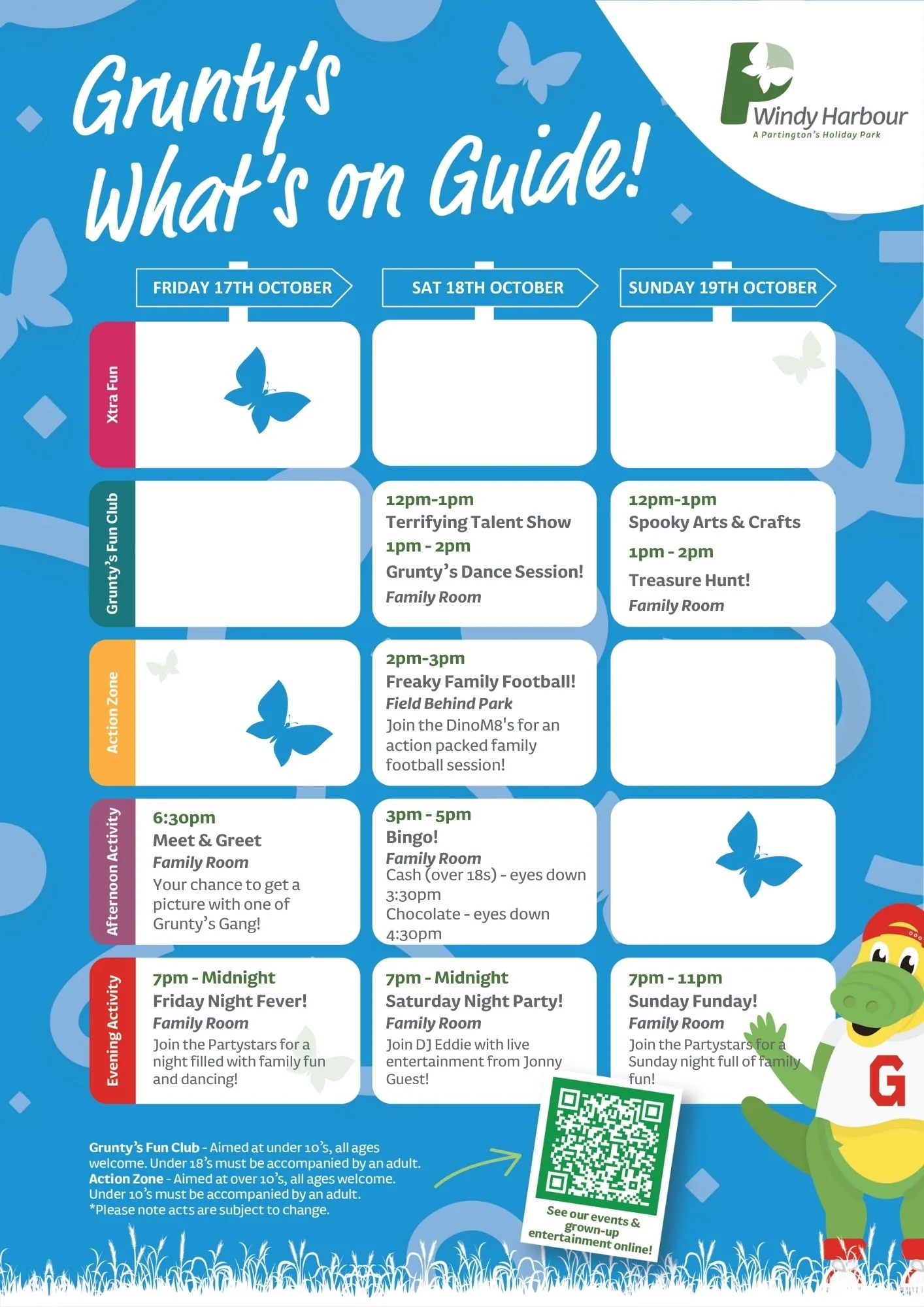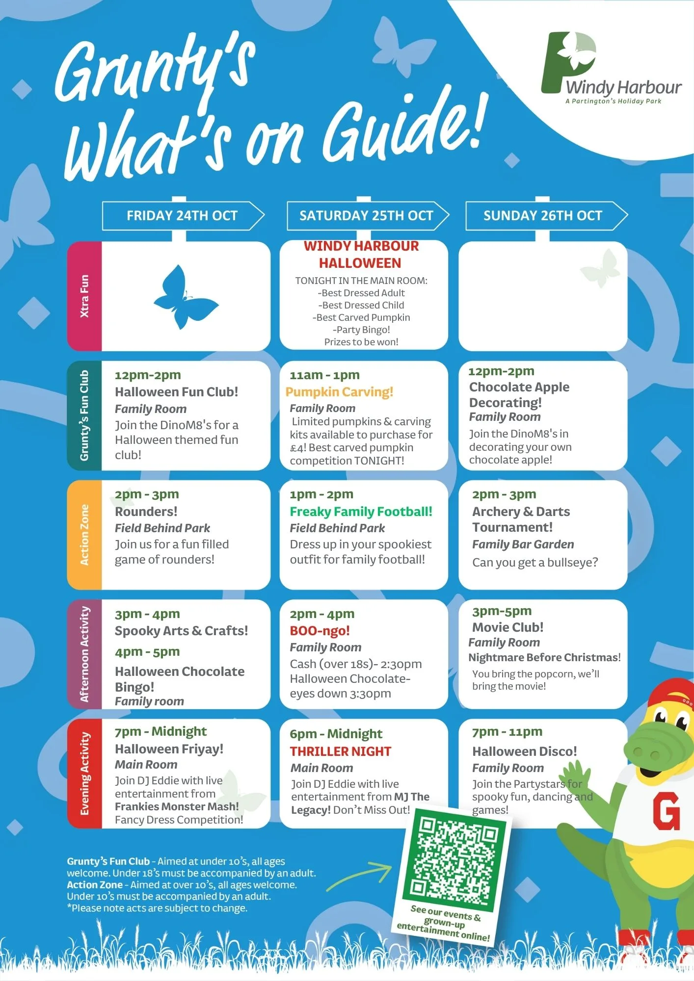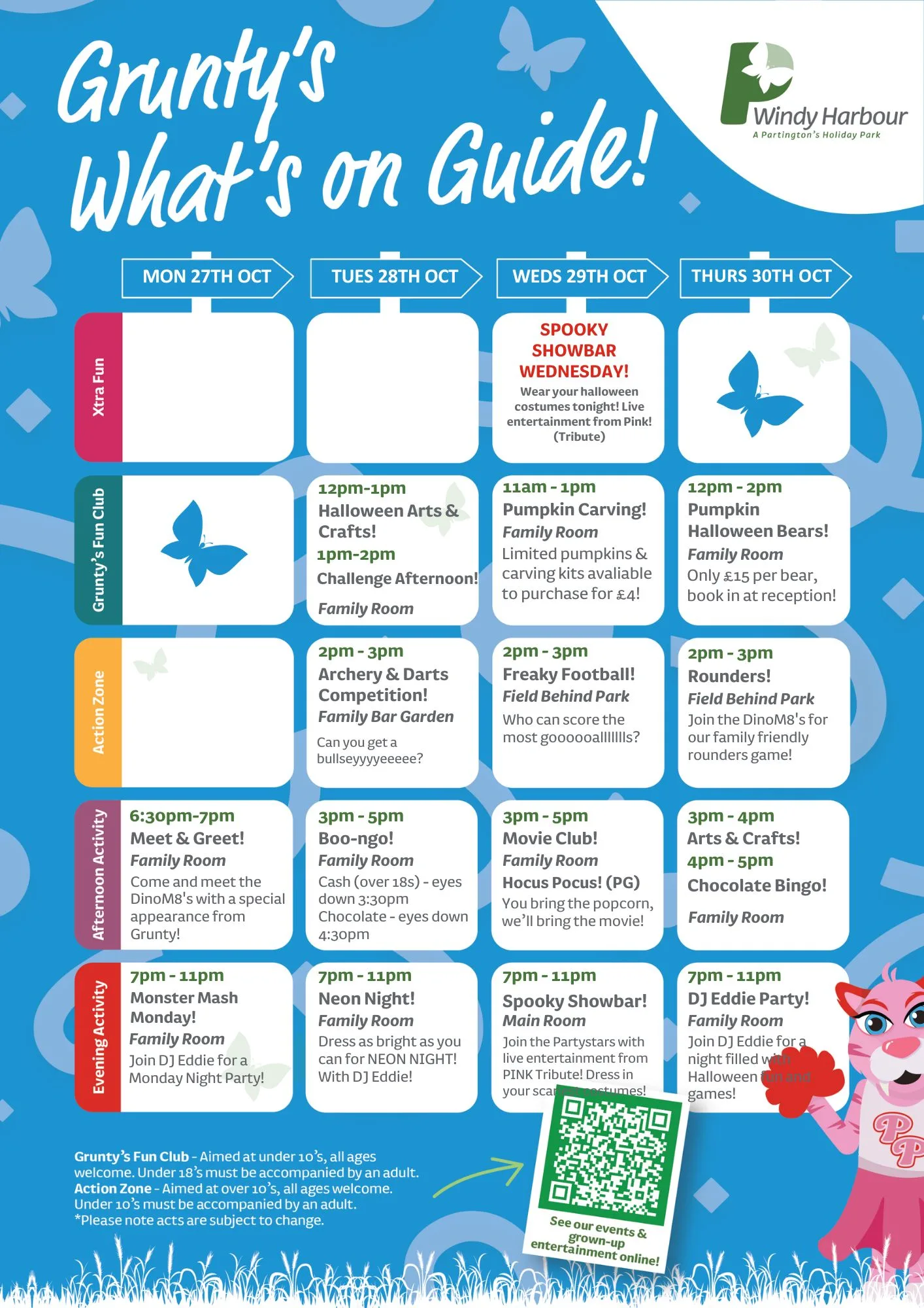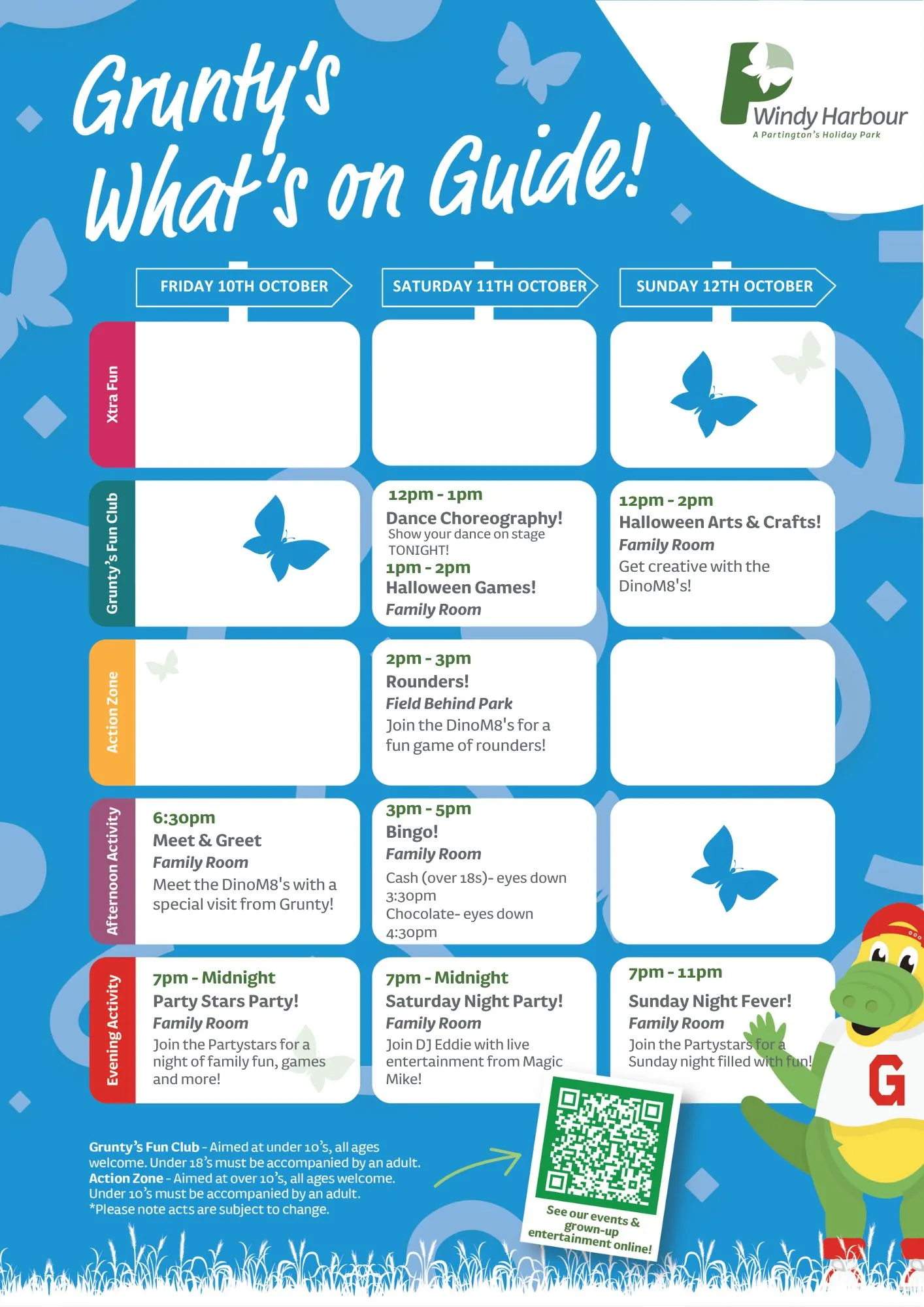 Join us at Windy Harbour Holiday Park this October for a packed programme of entertainment and activities, with a Halloween twist! From family fun to evening shows, there’s something for everyone to enjoy during your Partington’s stay.