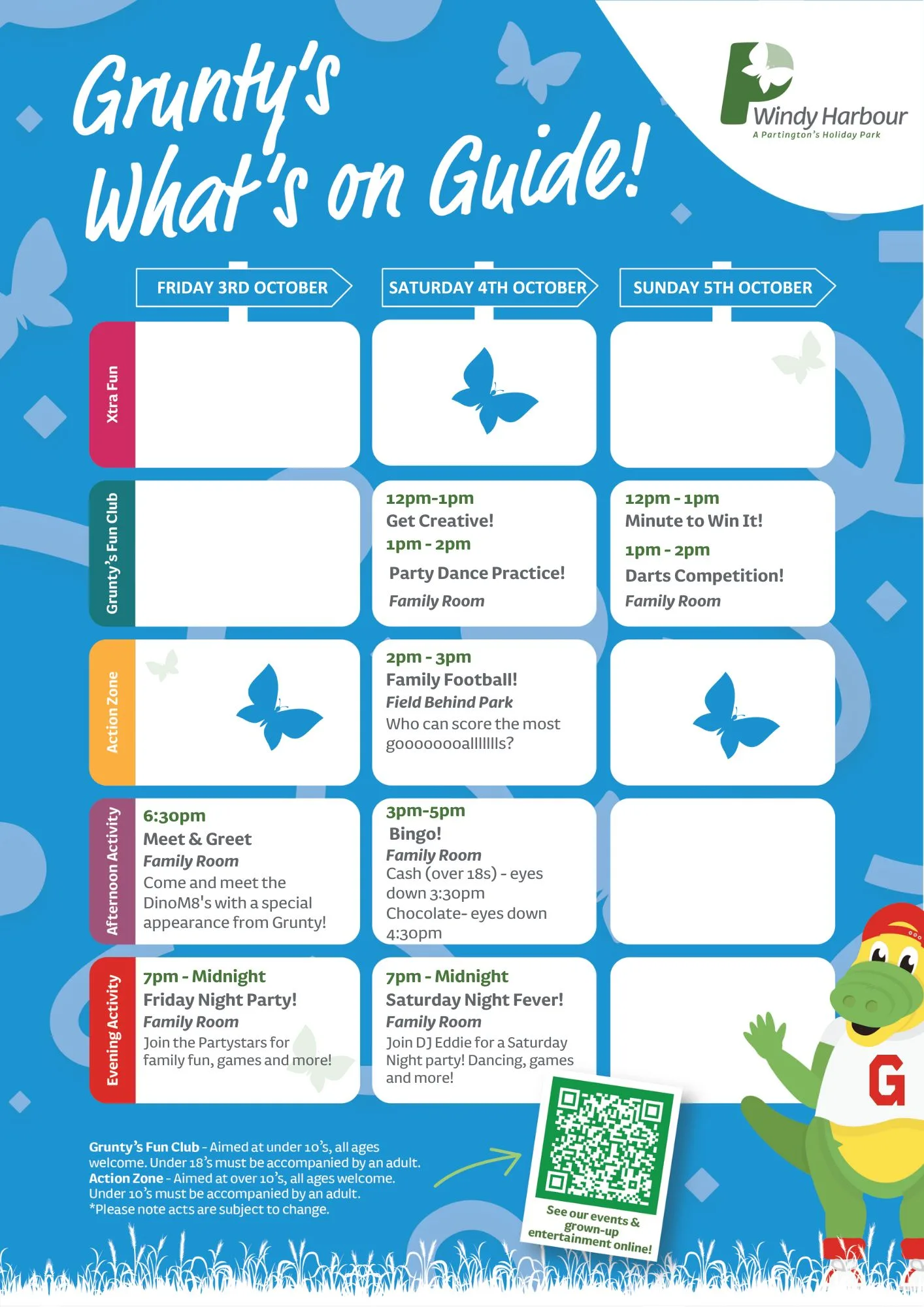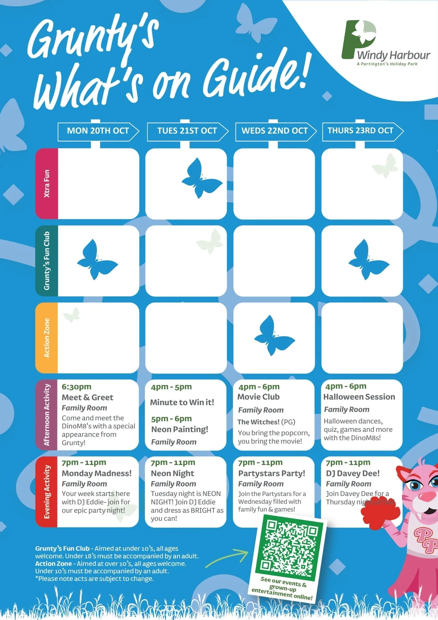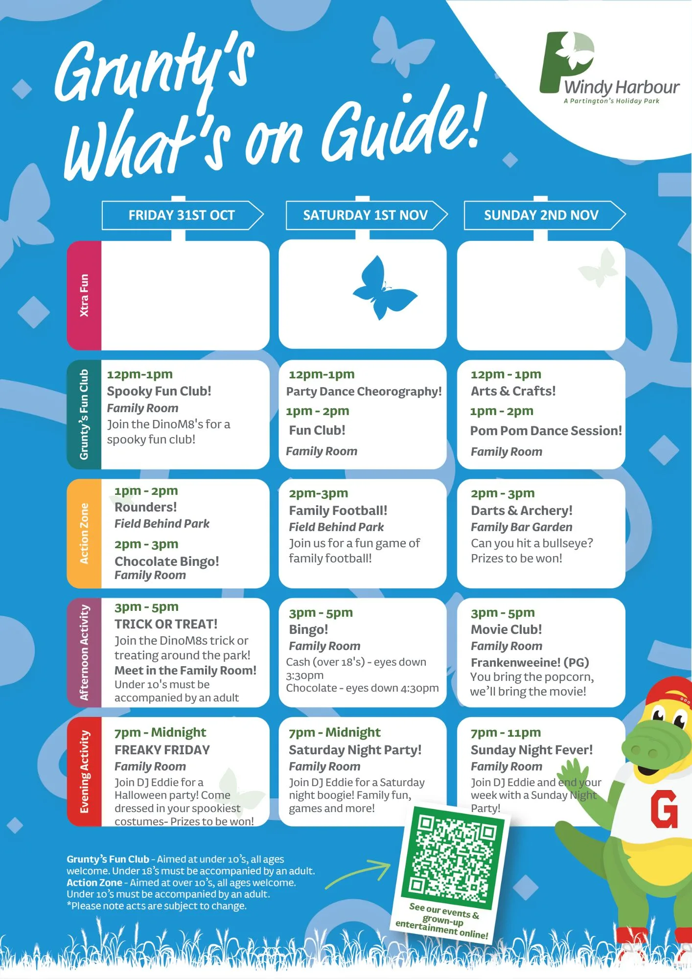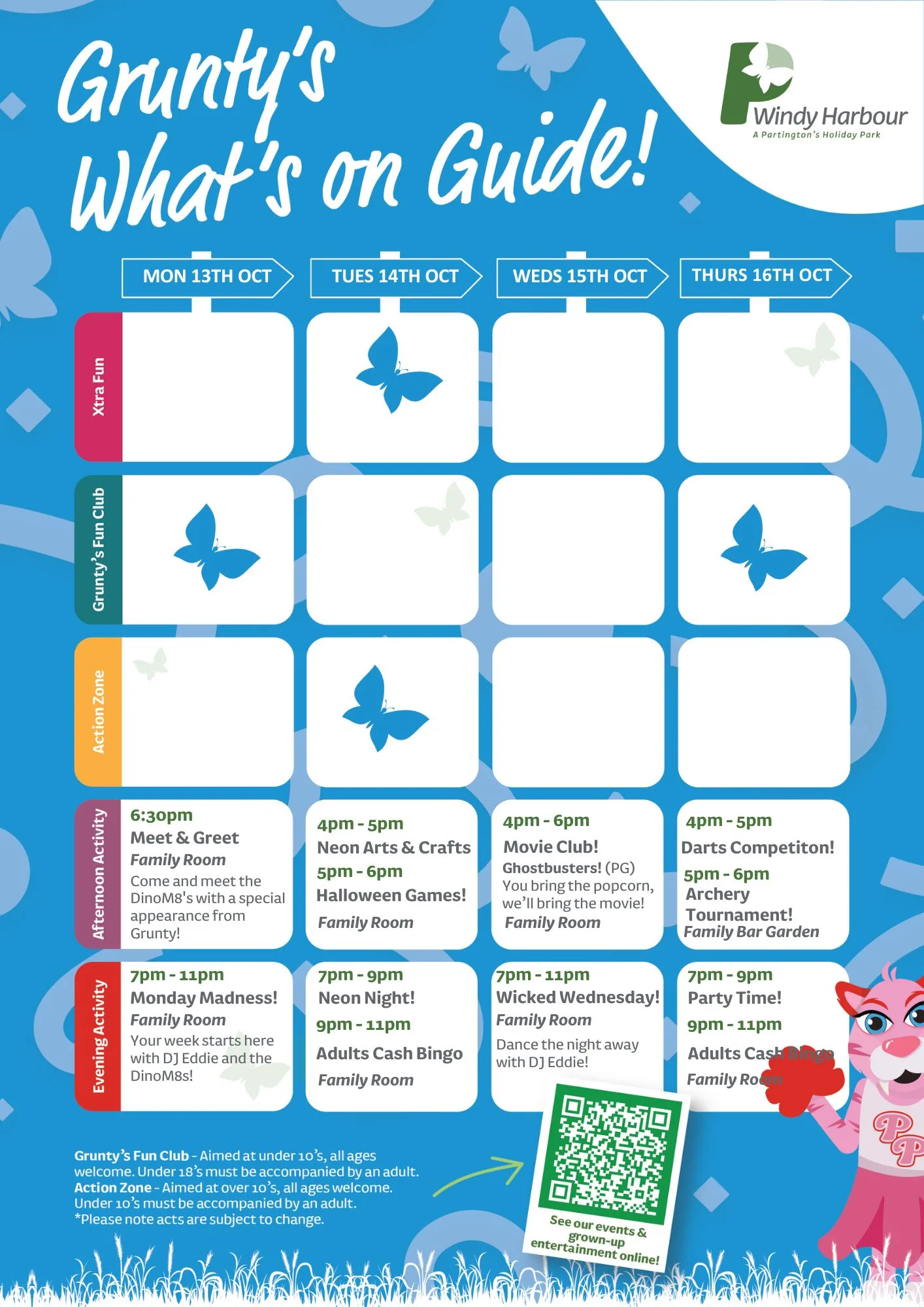 Join us at Windy Harbour Holiday Park this October for a packed programme of entertainment and activities, with a Halloween twist! From family fun to evening shows, there’s something for everyone to enjoy during your Partington’s stay.
