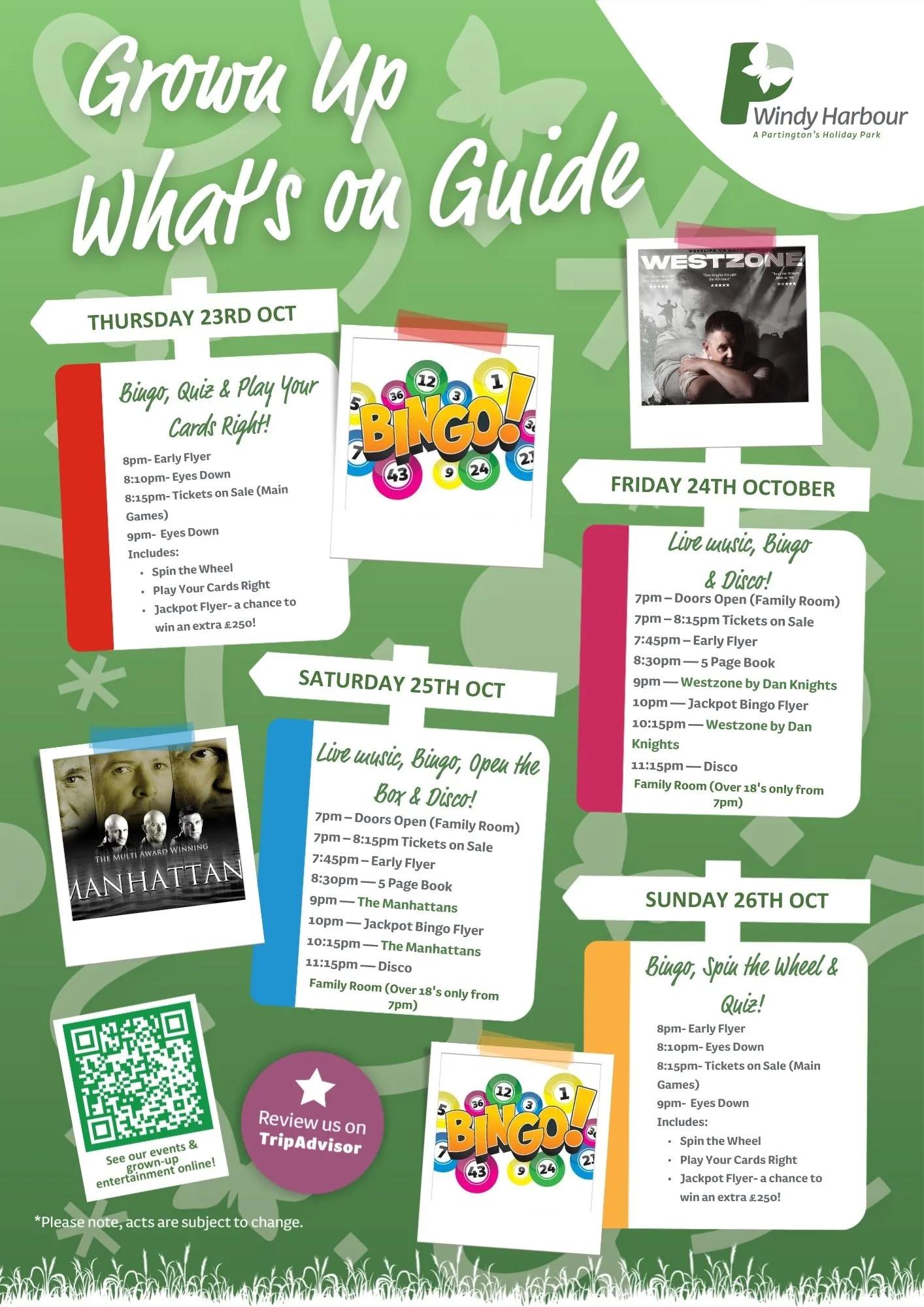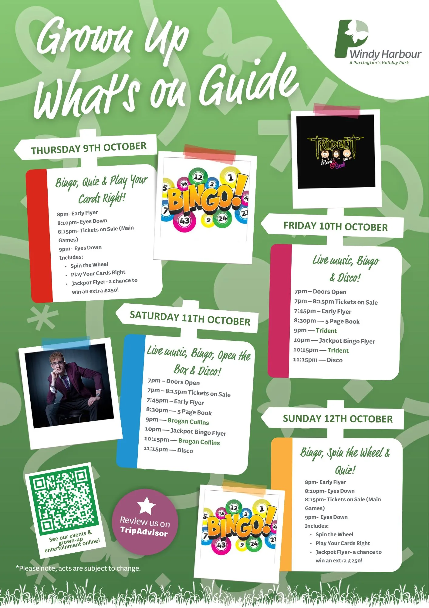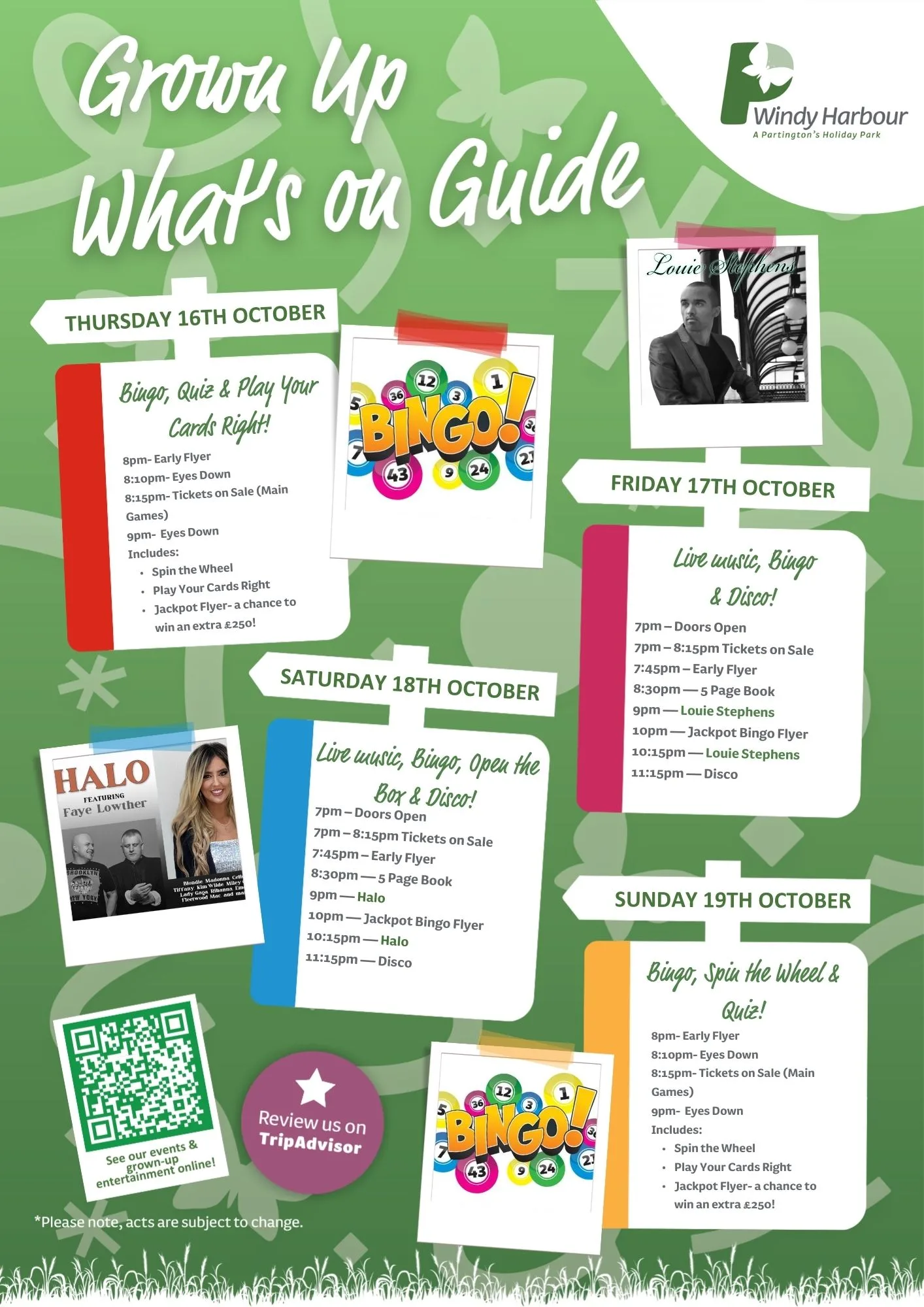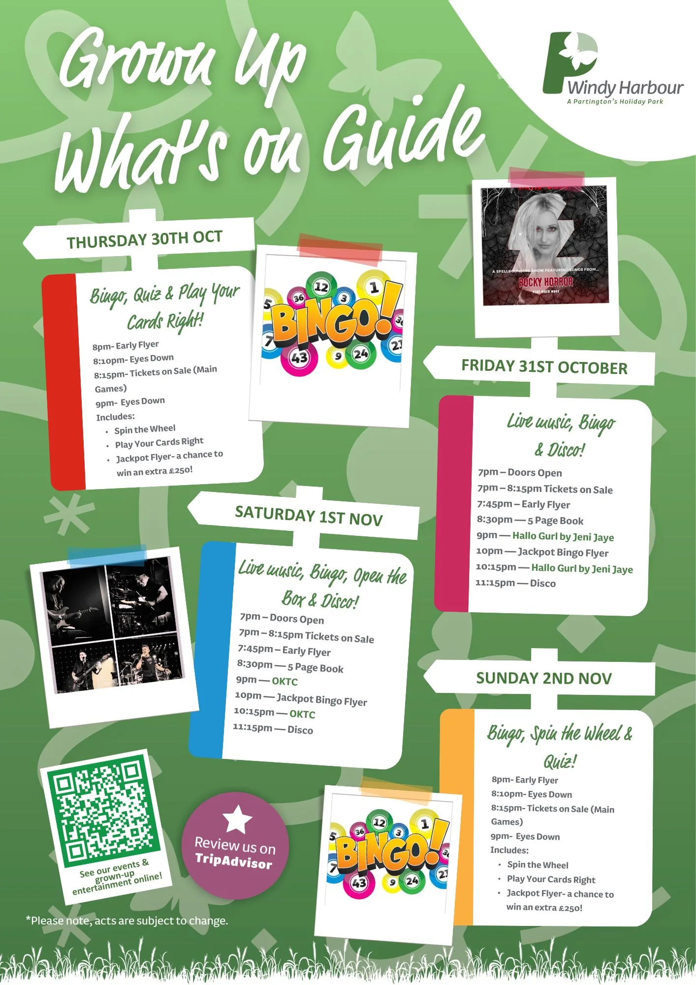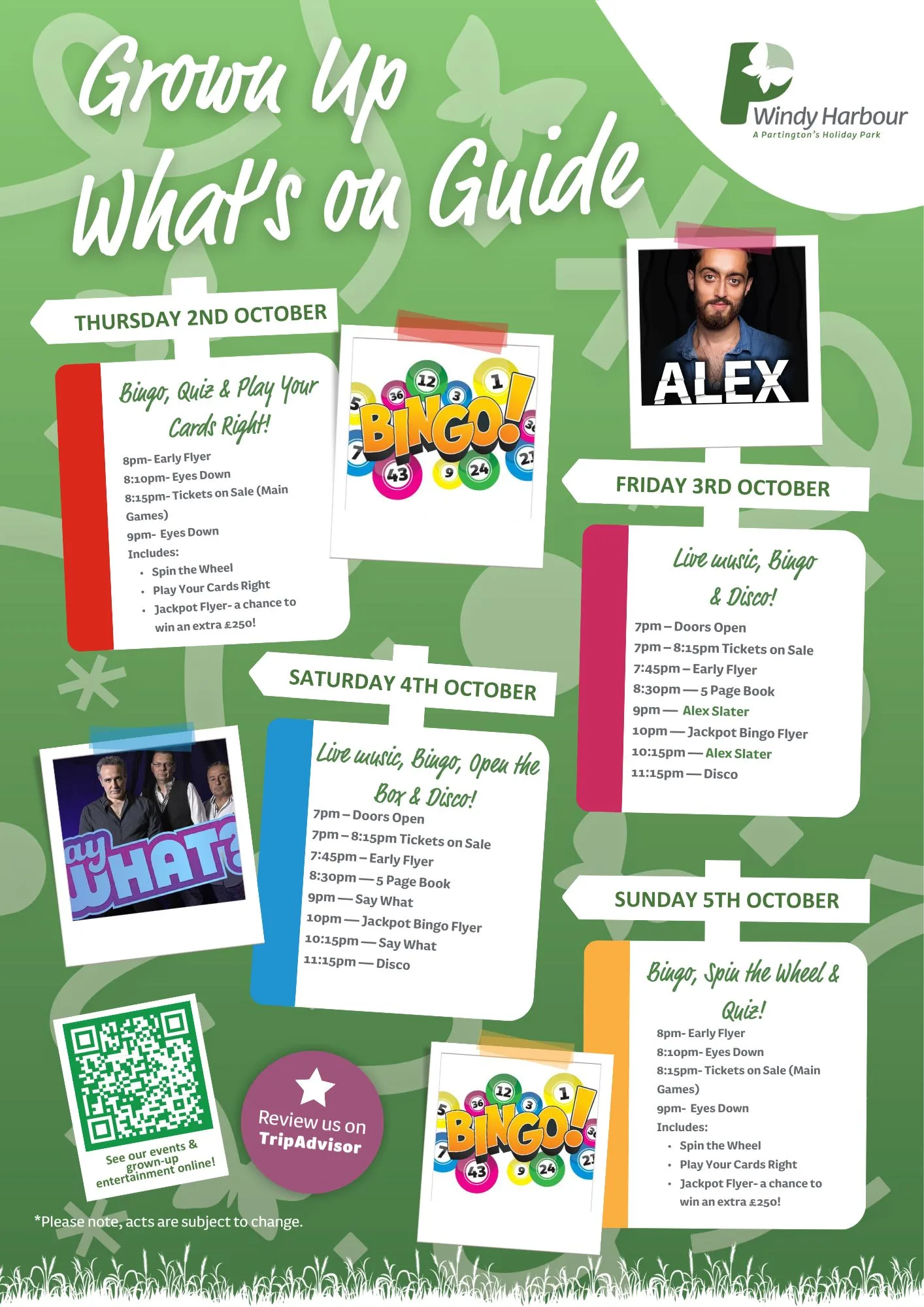 Here is your October 2025 entertainment at Windy Harbour Holiday Park.